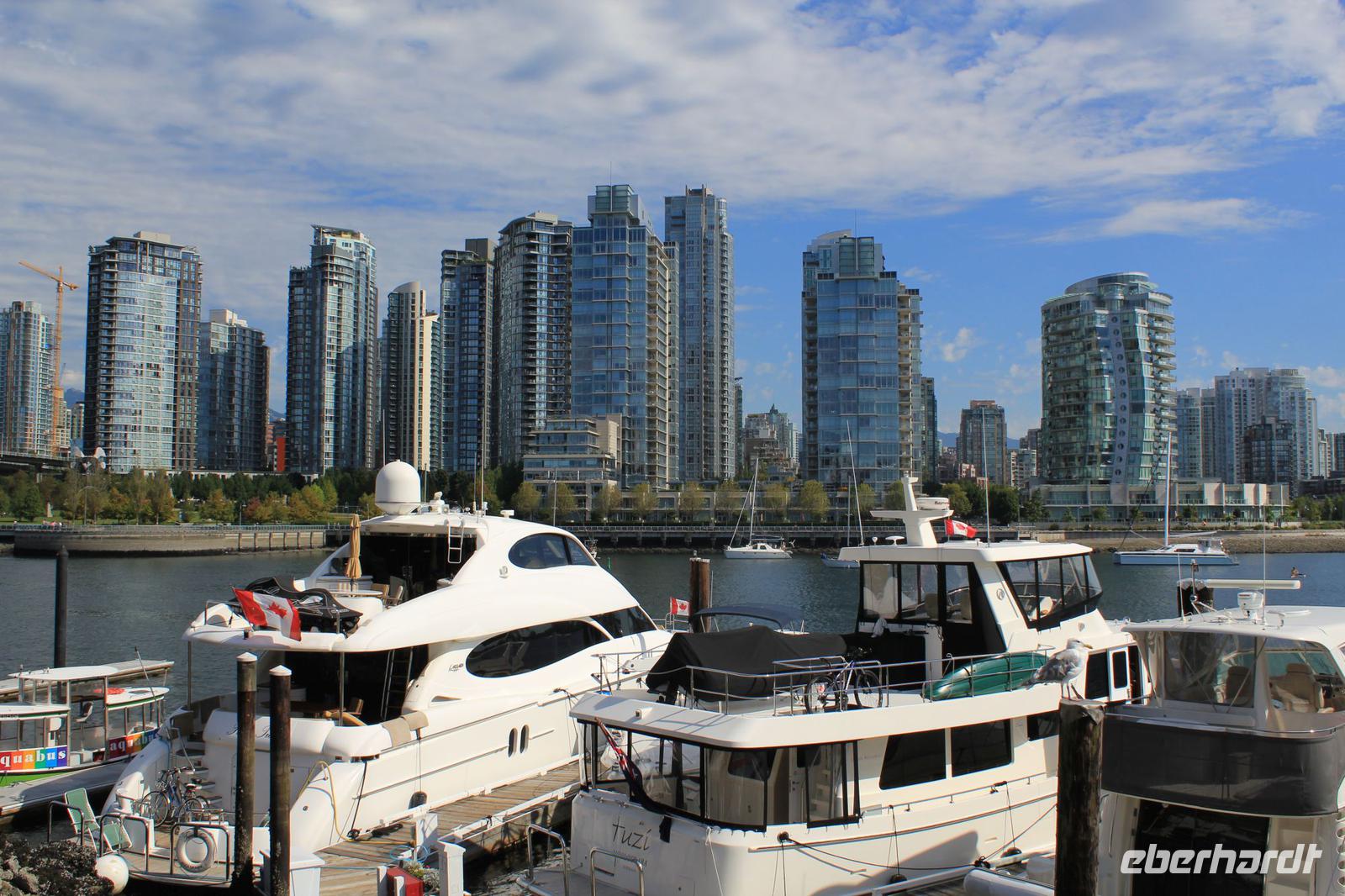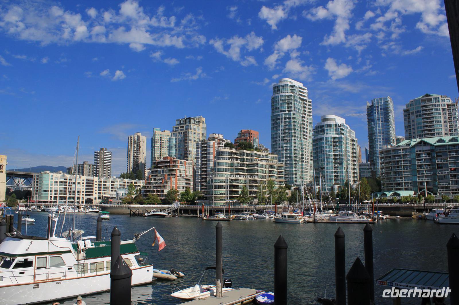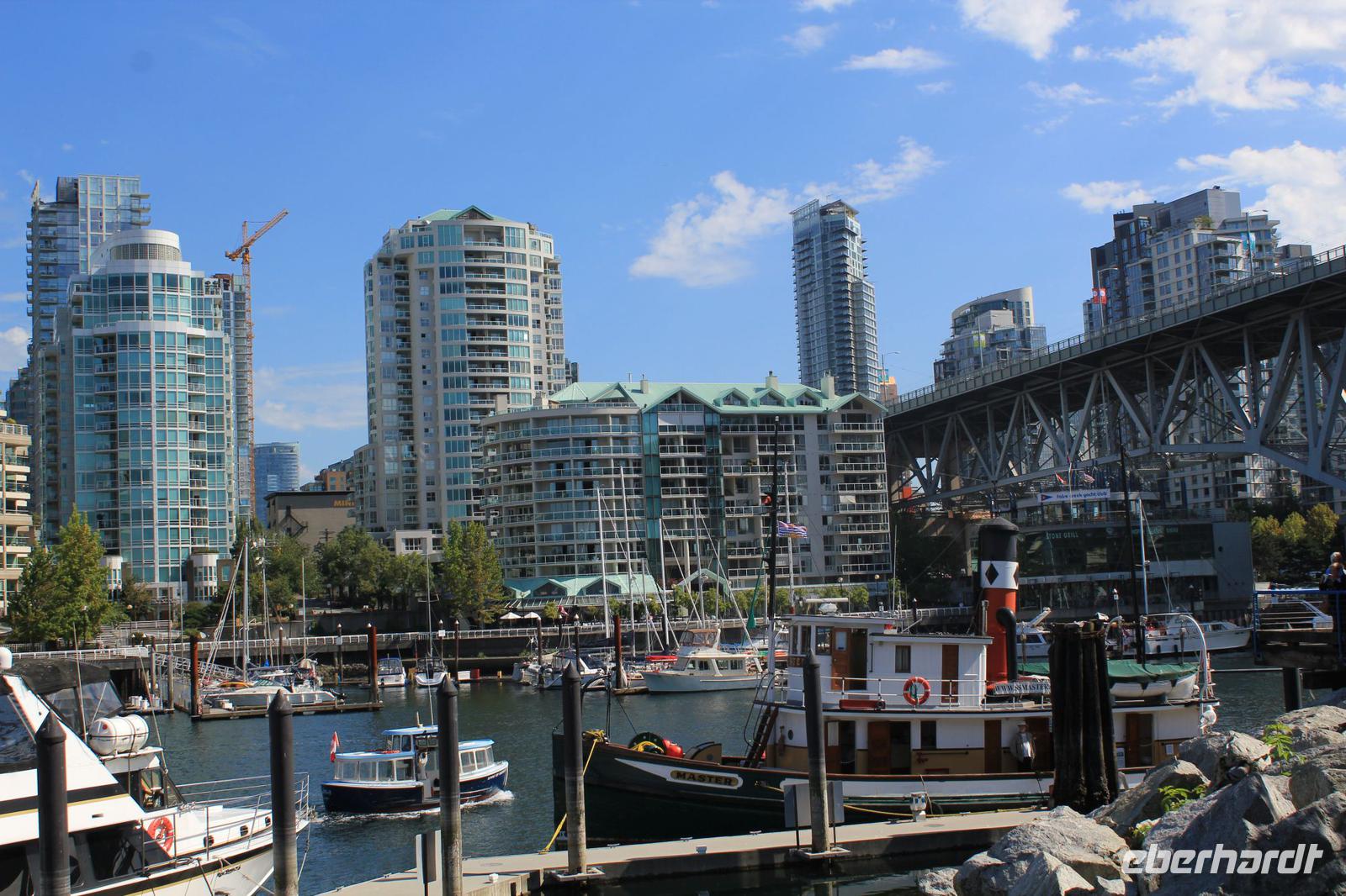 Straßenkünstler bevölkern im Sommer die engen Straßen und zaubern den zahlreichen Besuchern, die gut gelaunt ihr Wochenende genießen, ein Lächeln ins Gesicht. Auch schauen wir uns die hübschen schwimmenden Häuser an, die kurz zum Träumen einladen, wie es wohl wäre sich genau hier, mit dieser fantastischen Aussicht auf die Skyline Vancouvers, niederzulassen.