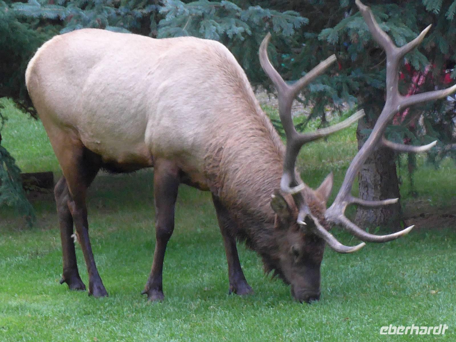 Noch auf dem Weg zum Einstieg in die Magline-Schlucht schon unser erstes High-light - Hirsche am Wegesrand. Die Fotoverschlüsse klicken im Sekundentakt. Dies machte Lust auf mehr - sind wir doch im Gebiet, wo am ehesten Tiere vor die Linse zu bekommen sind. Am Ausstiegspunkt angekommen ahnten wir noch nicht welche Bergwanderung auf uns wartete. Wir wurden aber mit tollen Aussichten entlang der Schlucht entschädigt. Mehrere Brücken überspannen die sich stellenweise zu einer schmalen Klamm verengende Schlucht. Bei einem Spaziergang begleitet uns das tosende Gewässer. Dessen gewaltige Kraft wird beim Blick in die Tiefe allen sehr deutlich vor Augen geführt. Am Ziel angekommen eine kleine Rast - dann aber weiter im Programm. Vorbei am Medicine Lake, der mit riesigen Schlucklöchern aufwarten kann ging es zum zweitgrößten Gletschersee der Welt. Mit seinen 22 Km Länge und nur 1 Km Breite liegt er fast versteckt wirkend zwischen den schroffen Bergen auf 1600 Meter Meereshöhe. Im Hintergrund ist der Maligne Gletscher eindrucksvoll zu erkennen. Ob Fahrt auf dem See zur Spirit Island oder eine Wanderung entlang des Sees - am Ende hatte jeder etwas zur Mittagspause zu berichten. Nun ging es entlang des Maligne-Flusses wieder zurück. Nochmal die Bergwelt mit seinen Facetten aufnehmen bevor man sich in Jasper wieder in die Zivilisation stürzte. Geschäfte entlang der Hauptstraße - für den einen Freud für den anderen Leid oder notwendiges Übel. Gerade am Hotel angekommen sahen wir Rafting-Boote. Schnell zum Fluss und beim Winken noch ein schönes Foto von den im reißenden Fluss vorbeiziehenden Booten. Der Abend klang mit einem guten Abendessen aus.