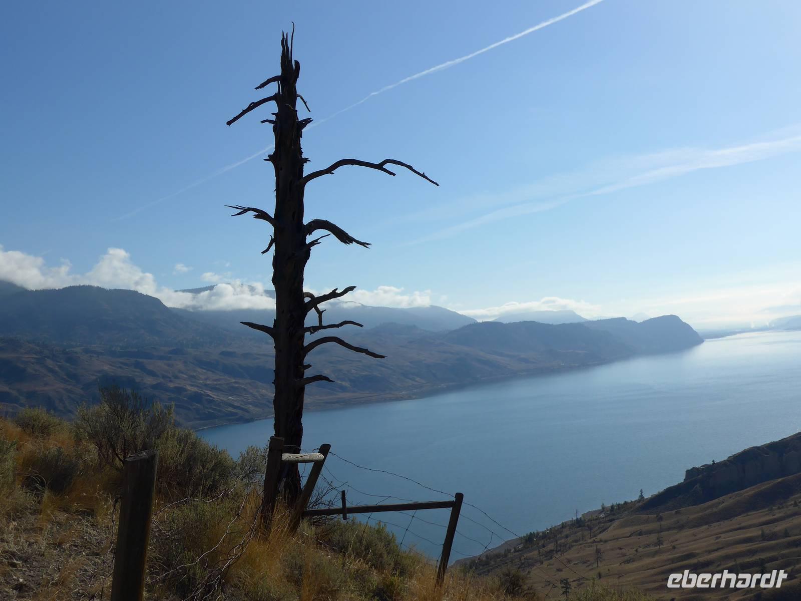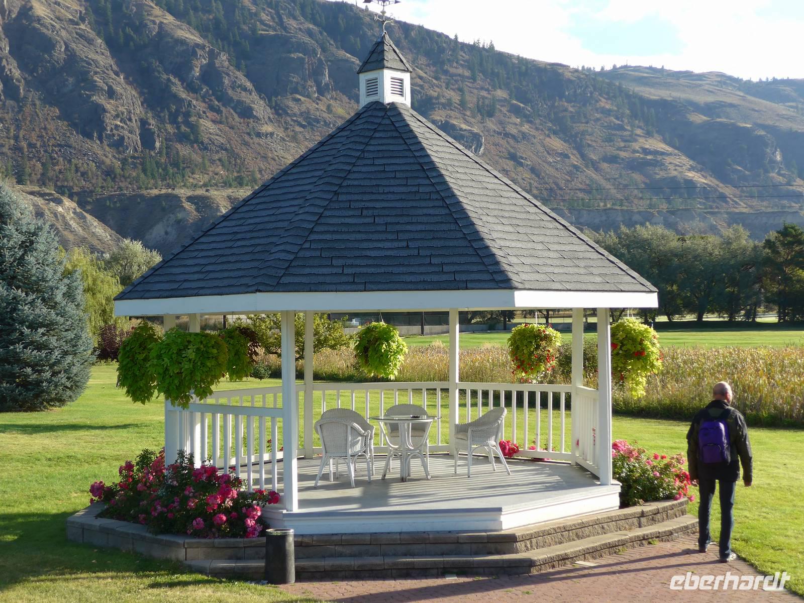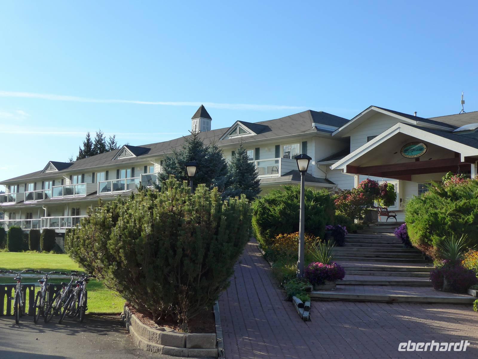 Ein neuer Tag mit so manchen Naturschönheiten sollte wieder auf uns warten. Nach dem Frühstück sagten wir der Gegend um Jasper lebe wohl und in Richtung Süd-West war heute unser Endziel Kamloops. Wir verließen die Provinz Alberta und der Weg führte nun in die Provinz Britisch Columbia. Am Yellowhead Pass, der gleichzeitig auch der Eingang zum Mount Robson Provincial Park war, mussten wir aufgrund einer Zeitzone die Uhr um 1 Stunde zurückstellen. Diese Stelle ist nicht nur der Grenzübertritt nach Britisch Columbia, sondern ist auch der Ort einer Wasserscheide. Genau hier war nämlich die Atlantik-Pazifik-Wasserscheide! Also schnell ein Erinnerungsfoto von diesem bedeutenden Stück kanadischen Bodens und dann ging es auch schon weiter. Nun also Willkommen in British Columbia , im Land des Holzes und der Lachse. Über die Hälfte des Weichholzes der Welt kommt aus Kanada und davon allein 34 % aus dieser Gegend. Kein Wunder - entlang unserer Fahrtstrecke nur sattgrüne Wälder. Eine großartige Hochgebirgslandschaft, um die sich die höchsten Berge der kanadischen Rocky Mountains tummeln. Vorbei am Moose Lake und dem Fraser-Fluss, der nach dem bedeutenden Pelzhändler Fraser benannt wurde, erreichen wir schließlich den 3.954 Meter hohen Mount Robson. Ein Glücksumstand in zu sehen. Trifft dieser ein, so zeigt er sich als ein prächtiger Kerl mit einer eindrucksvollen Spitze. Uns blieb dieses Schauspiel leider verwehrt. Nur der untere Bereich ließ die Größe erahnen. Ein Foto im Besucherzentrum musste als Realitätsersatz herhalten. Er ragt steil in den Himmel und stellt die umliegenden Gipfel in den Schatten. Voller Ehrfurcht genossen wir die Zeit am Fuße dieses Giganten. Entschädigt wurden wir durch einen Schwarzbär, der gemütlich sein Mittagsmal in Form von Beeren im Schatten des Berges einnahm. Weiter ging die Fahrt und schon bald hieß es Abschied nehmen von den Rocky´s. Noch einmal das Treiben der Lachse beobachten und wie vom Blitz getroffen, war alles vorbei. In der folgenden Zeit bis nach Kamloops wurde es immer flacher und die Prärielandschaft war unser ständiger Begleiter. Am Wells Grey Provinicial Park in der Nähe von Clearwater war unser nächster Stopp. Der 120 Meter hohe in eine tiefe Schlucht stürzende Spahat Wasserfall führte uns wieder einmal eindrucksvoll vor Augen was hier für Kräfte im Spiel sind. Geformt aus Lava und bearbeitet durch die Kraft des Wassers. Wie schon gesagt, die Landschaft hatte sich verändert. Statt der kräftigen Nadelwälder und saftigen Grün herrschte nun eine trockenere und gelbliche Hügellandschaft vor. Diese Steppenlandschaft vermittelte uns das Gefühl des Wilden Westens. Die Flora war getragen von Gelbkiefern und Sagebrush, einer Salbeiart. Durch diese Landschaft, zog sich der North Thompson Fluss, der uns auf weiten Strecken bis nach Kamloops begleitete. Nun erreichten wir unser Übernachtungsziel für den heutigen Tag. Im Ort Kamloops, der auf Deutsch „Treffer der Gewässer" heißt, lag die herrlichen Anlage der Thompson Guest Ranch. Nach dem Abendessen genoss so mancher die herrliche Gegend mit einem Glas Wein auf der Terrasse.