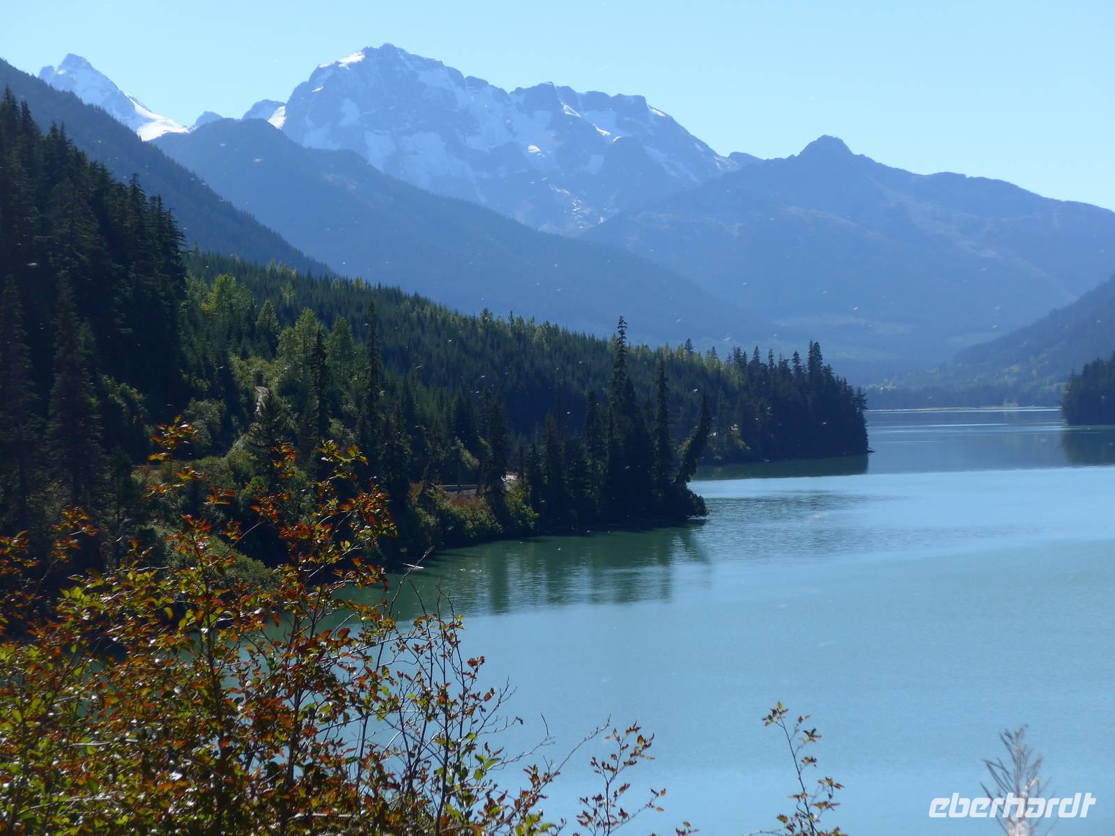 Das frühe Aufstehen sollte sich noch lohnen. Nach einem guten Rancher-Frühstück ging es los. Nach der Überquerung des Süd -Thompson Fluss schauten wir ein letztes Mal zurück auf Kamloops und so machten wir uns auf den Weg in Richtung Whistler. Am Kamloops Lake machten wir den ersten Stopp am heutigen Tag und wir durften den 30 Km langen See im Sonnenaufgang erleben. Ein Farbenspiel, das man jeden Tag erleben möchte, wäre da nicht das zeitige Aufstehen. Noch herrschte die karge Landschaft, die fast an Arizona erinnert, vor. Doch dies sollte sich schon bald ändern. Aber bis zum Städtchen Cache Creek wird die Fahrt begleitet von zahlreichen Salbeibüschen, sowie einer Grasebene in hügliger terrassenförmiger Landschaft. Nun waren wir auf der legendären Goldgräberroute und wir begaben uns auf die Spuren der Goldrauschzeit des 19. Jahrhunderts. Wir steuerten die historische Hat Creek Ranch an, die einst Raststätte für Postkutschenpassagiere und vorbeiziehende Goldgräber aber auch Frachtwagenfahrer war. Man hatte hier das Gefühl die Zeit ist stehen geblieben und wir, die heutigen Besucher können das „Goldgräberleben" hautnah miterleben. Das „Hat Creek House" von 1861 mit Saloon, Kaminzimmer und Gästezimmer sind noch original eingerichtet. Es sind noch die Tapeten, Möbelstücke aus damaliger Zeit vorhanden und so könnte man meinen noch heute biete die Familie McLean ihre Zimmer für 1 Dollar die Nacht an. Nach diesem interessanten Einblick aus den Tagen der Pionierzeit des kanadischen Westen machten wir mit der Postkutsche einen Abstecher zu den Nomadenvölker der Shuswap-Indianer, die hier schon lebten, lange bevor diese Gegend von Pelzhändlern und Goldgräbern heimgesucht wurden. Das Besucherzentrum bot Nachbauten von einem „Kekuli" (Erdhaus) aber auch von verschieden Zweckbauten u. a. das „Schwitzhaus" (Sauna der Indianer) oder andere Tipi-Bauten. Einst, als der Goldrausch am Ort vorbei war, zogen die Caravane weiter. Nun - auch wir zogen nach einer Mittagspause weiter. Bald durften wir aber wieder einen Fotostopp am „Grand Canyon" Westkanadas einlegen. In der Fraser-Schlucht zwängen sich die Wassermassen eindrucksvoll durch das enge Tal mit seinen fast senkrechten Felswänden. In Lilooet hatte sich auch die Landschaft wieder verändert. Da wir nun auf dem Weg nach Whistler auf dem einzigen Weg die Küstenberge durchquerten, hat sich auch das Landschaftsbild wieder verändert. Die Bergkette vulkanischen Ursprungs hält wieder dichte Wälder und Schneegipfel parat. Wie haben wir diese Landschaft nach einigen Tagen der Kargheit vermisst. Ist sie doch das, was viele mit Kanada verbinden. Die Duffy Lake Road windet sich durch die steile Hochgebirgslandschaft und ganz oben am Duffy Lake machten wir dann abermals einen Stopp. Hier ließen wir den „Märchenwald" und die zauberhafte Landschaft mit den schneebedeckten Gipfeln regelrecht auf uns wirken. In der Ruhe war nur das Klicken der Fotoapparate zu hören. Schon bald standen wir vor den Toren von Whistler. Whistler, das „St. Moritz von Kanada" heißt übersetzt „Pfeifer" und soll sich vom Pfeiffen der Murmeltiere und Erdhörnchen, die hier zahlreich zu finden sind, ableiten. Mit seinen 20.000 Einwohnern ist es nicht nur der bekannteste Wintersportort Nordamerikas, sondern war auch Austragungsort der Olympischen Winterspiele von 2010. Kein Wunder, dass heute der Ort von der Infrastruktur her ein Eldorado für Outdoor- Sportler ist. Weithin sichtbar war die Seilbahn „Peak2Peak", die die Berge von Whistler miteinander verbindet. Die 400 Meter hohe Seilbahn gilt als einer der höchsten Bergbahnen der Welt. Doch die Stadt Whistler präsentierte sich uns auch als junge und moderne Stadt. So war ein Bummel auf der lebhaften Fußgängerzone der perfekte Abschluss für den heutigen Tag.
