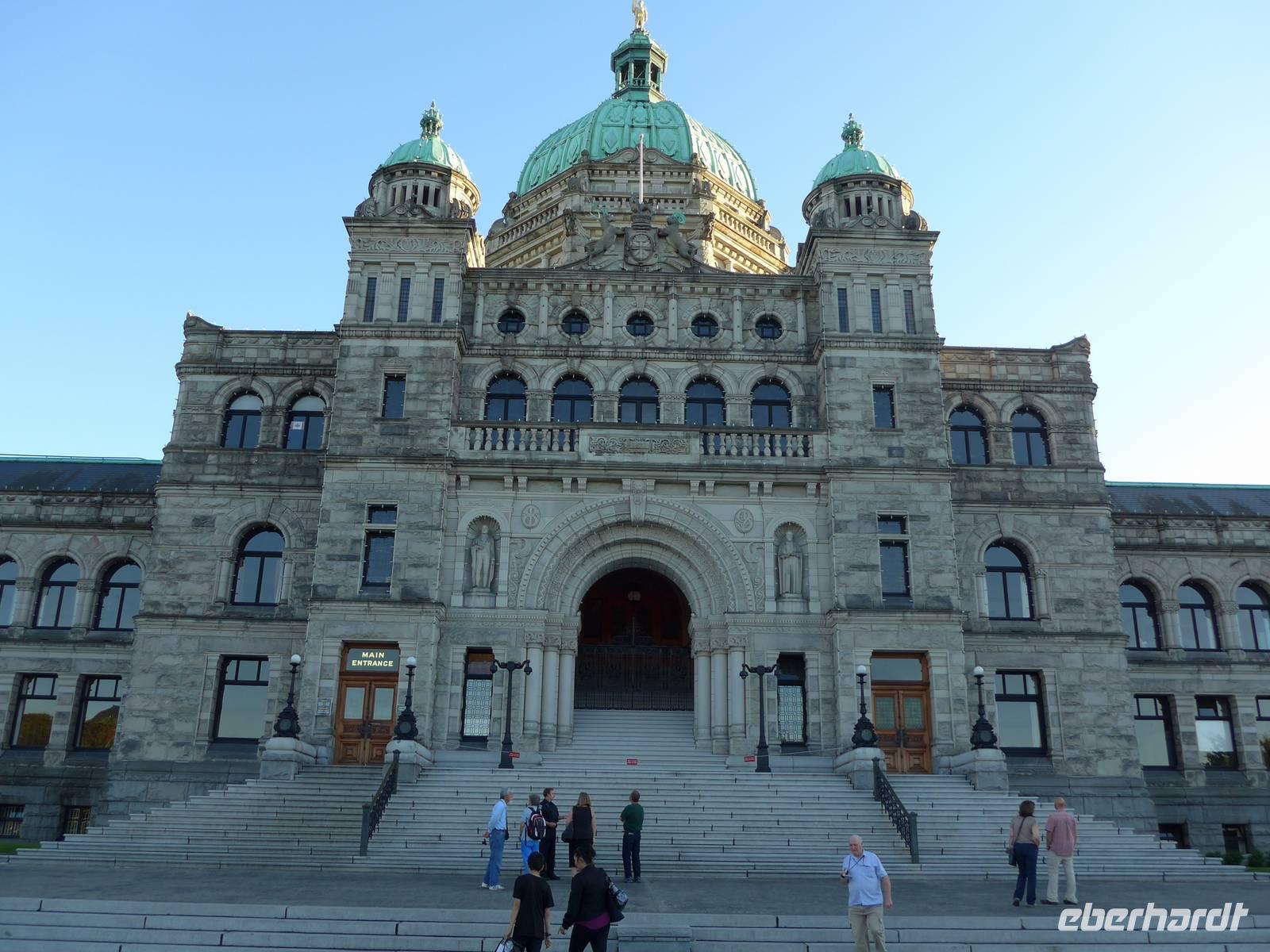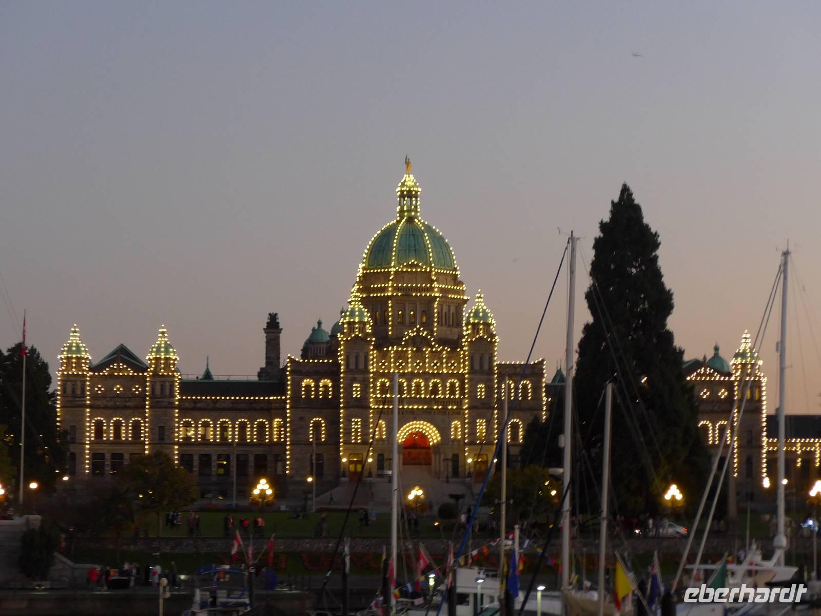 Früh klingelt der Wecker, denn schon zeitig nach dem Frühstück ging es heute auf Tour um die Fähre nach Vancouver Island rechtzeitig zu erreichen. Heute sahen wir zum ersten Mal bei dieser Reise den Pazifik. Entlang des „ Sea to Sky Highway" ging es sprichwörtlich „vom Himmel zum Meer". Eine traumhafte Landschaft auch heute wieder Diese begleitete uns zunächst von der Tantalus Bergkette und dann erreichten wir definitiv in der kleinen Gemeinde Horseshoe Bay den Fährhafen. Von hier aus ging die Fährfahrt ca. 1 ½ Stunden nach Vancouver Island. Der herrliche Blick entlang der Scherenlandschaft war ein Vorgschmack auf die kommende Kreuzfahrt. Vancouver Island mit seinen 750.000 Einwohnern ist nicht nur Urlaubsparadies und Seniorenresidenz, sondern lockt auch mit ihren dichtem Regenwald und sandigen Stränden. Hauptstadt ist Victoria, das unser heutiges Endziel war. In der Hafenstadt Nanaimo legten wir an. Schnell durchquerten wir diese und gegen Mittag kamen wir im niedlichen Ort Chemainus an. Mit seinen überlebensgroßen Wandgemälden an zahlreichen Gebäuden, die die Stadtgeschichte erzählen, bot dieser Ort viele Fotomotive und mit den kleinen Cafes, bunten Häusern u. liebevoll geschmückten Straßen war es ein kurzweiliges Mittagspäuschen für uns. Bei unserer Weiterfahrt konnten wir auch die Berge auf US-amerikanischen Territorium erblicken, denn der 49. Breitengrad, der auf dem Festland die Landesgrenze zwischen USA und Kanada bildet war zum Greifen nah. So erreichten wir endlich die „englischte Stadt" außerhalb Englands nämlich Victoria. Auf einer kleinen Stadtrundfahrt erlebten wir wunderschöne gepflegte Villen am Meer oder Häuser im Tudorstil. Natürlich durfte das Parlamentsgebäude der ältesten Stadt Columbias nicht fehlen. In Mitten von einer großzügigen und gepflegten Parkanlage wird die Aufmerksamkeit sofort auf dieses Gebäude gelenkt. Vom Stadtarchitekten Francis M. Rattenbury 1897 hat es eine markante goldene Kuppel auf dessen Spitze Kapitän George Vancouver thront, der Namensgeber der Stadt ist. Weiter Höhepunkte der Stadtbesichtigung waren die Hauptgeschäftsstraße Govermentstreet, Chinatown und das großzügige Hafengelände. Bis zum Abendessen hatte man genügend Zeit die Stadt auf eigene Faust zu entdecken. So mancher schlenderte durch die mit Gaslaternen u. Blumenampeln gesäumten Straßen. Hier bot sich auch eine günstige Gelegenheit für nette Souvenirs. Bei einem Abendessen am Hafen mit Blick auf das zauberhafte mit 3.333 Glühlampen Oilluminiert Regierungsgebäude klang dieser erlebnisreiche Tag aus.