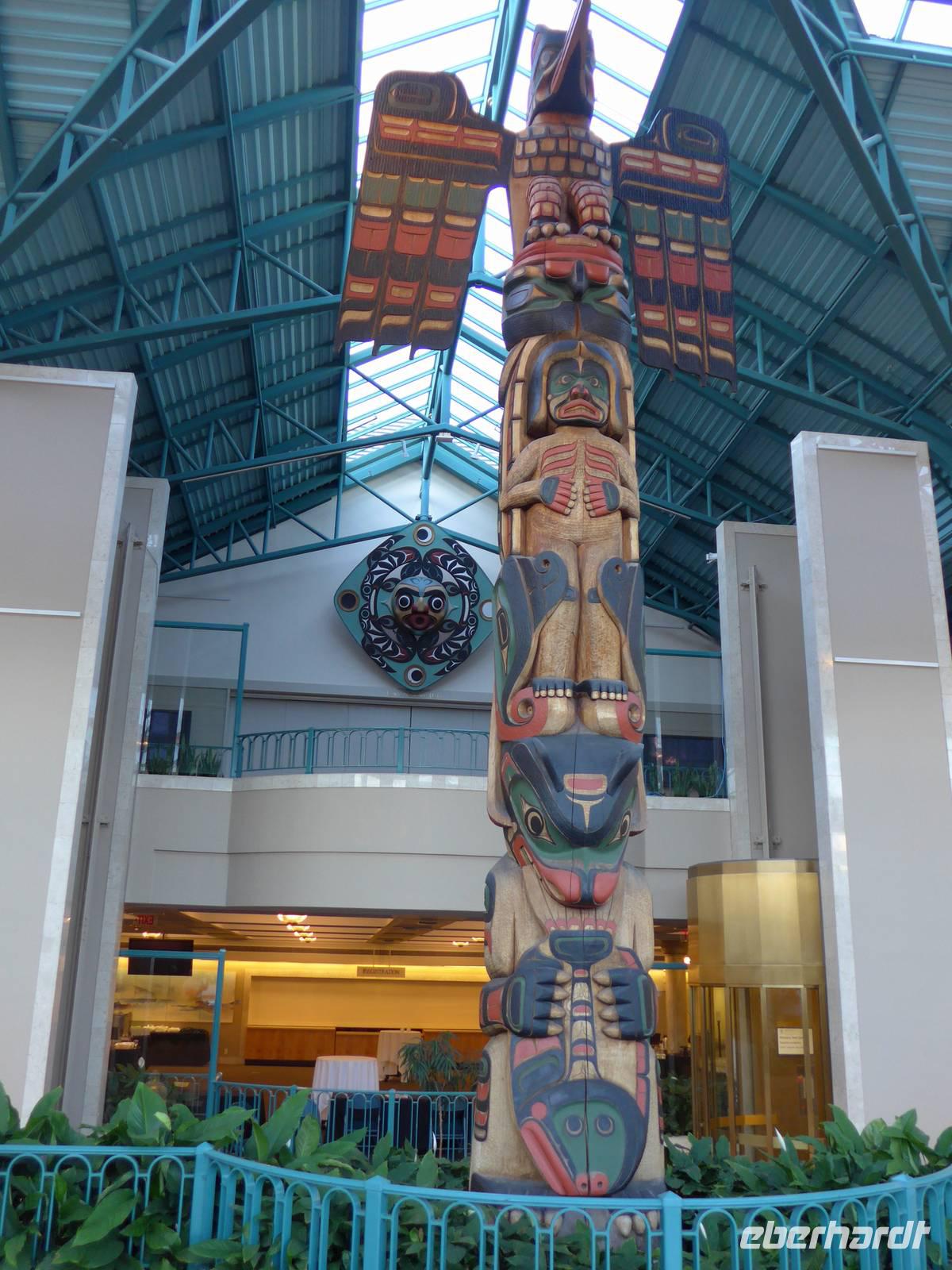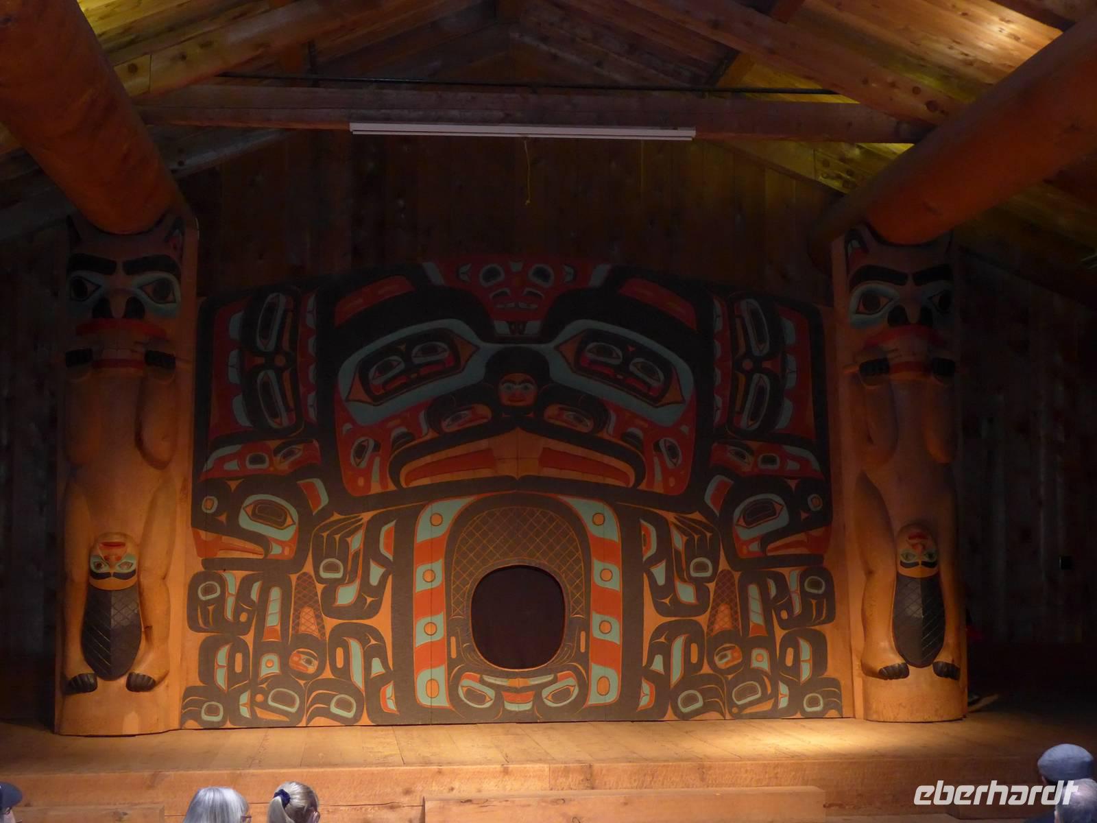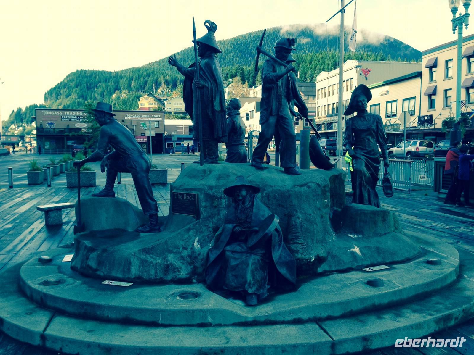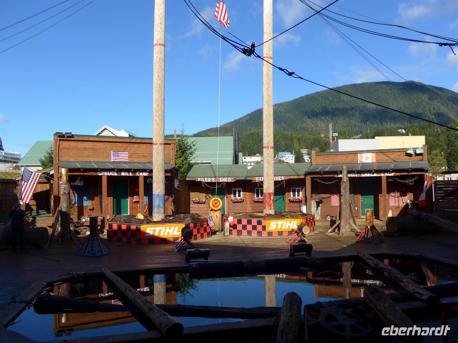 Wir wurden vom kleinen Städtchen Ketchikan, das sich als „Hauptstadt der Lachse" bezeichnet, begrüßt. Da sich dieser Ort auch als der Ort mit der größten Totempfahlsammlung brüstet, sind waren wir auf den Landgang sehr gespannt. Schon vom Schiff aus haben wir eine bunte Stadt wahrgenommen. Schnell von Bord!
