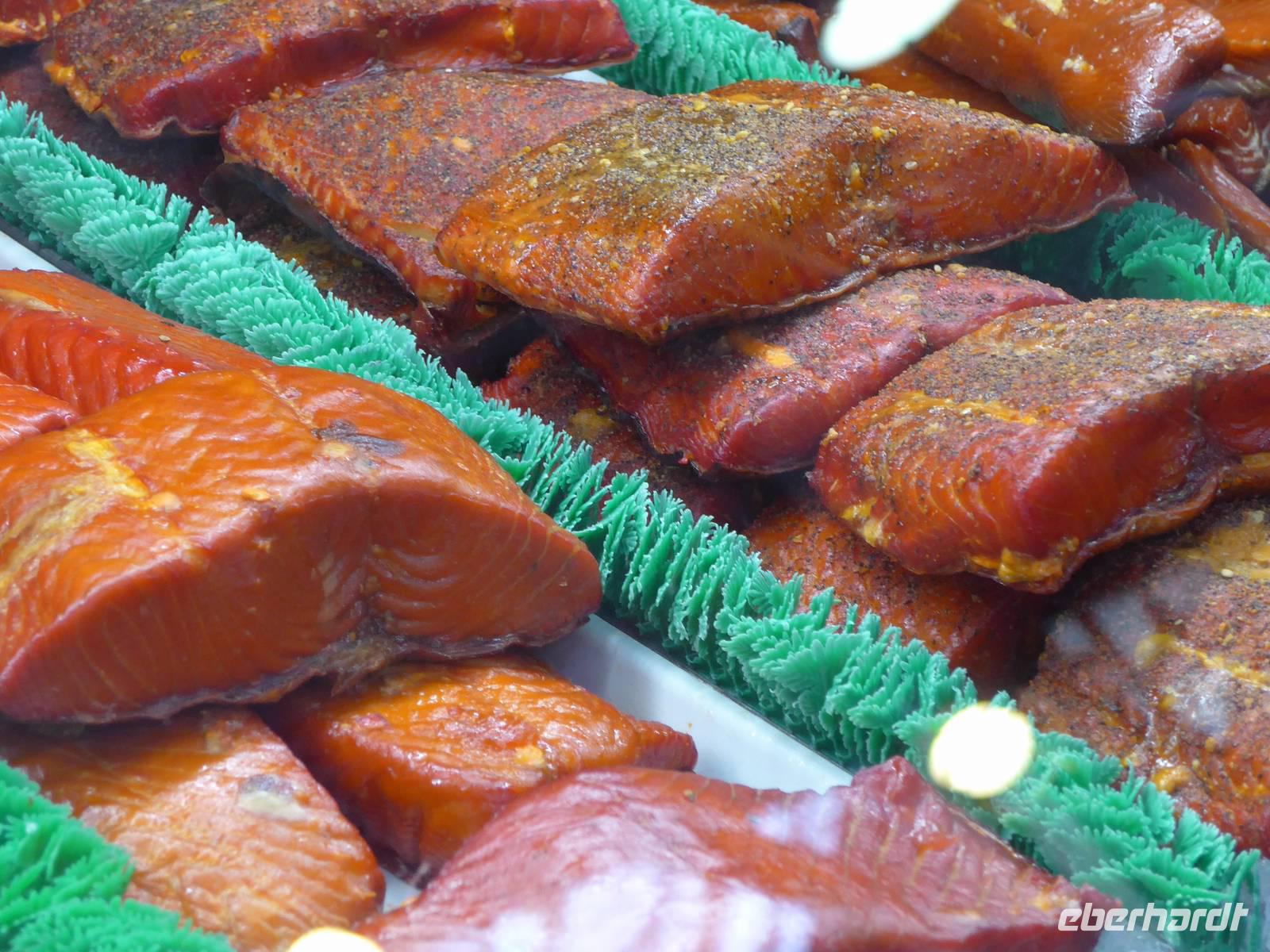 In den Gesichtern ein Lächeln. War es doch der Ausdruck auf die Vorfreude auf unsere heute beginnende Kreuzfahrt. Auch heute erwartete uns ein aufregender Tag, der vormittags mit der Besichtigung der Stadtinsel „Granville Island" begann. Hier besuchten wir zunächst natürlich die belebte Markthalle. An allen Ecken und Ende quirliges Markttreiben. Danach genossen wir noch ein wenig die zahlreichen Straßenkünstler und das einzigartige Flair dieses Teil von Vancouver bevor es dann gegen Mittag zur Einschiffung auf die „Norgegian Sun" ging. Diese lag am berühmten Canada Palace. Sie wurde unser Domizil für die nächsten Tage. Im ersten Moment wirkte es gigantisch. Wie ein Fels in der Brandung lag es mit seiner Bruttoregisterzahl von 78309 da. Übrigens ist dies neue Bezeichnung als Ersatz für Bruttoregistertonnen. Diese biete ca. 2000 Reisegästen und 940 Personen der Besatzung ausreichend Platz. Nun hieß es aber endgültig Abschied nehmen von Marion, die uns Westkanada in eindrucksvoller Weise näher gebracht hatten. Nach einer Grenzkontrolle - wir betreten ja US-Staatsgebiet und den üblichen Sicherheitskontrollen gelangten wir nach Warteschlangen und unzähligen Kurven um Trassierbändern endlich an Bord. Nun hieß es für jeden seine Kabine zu finden. Keine leichte Aufgabe bei der Größe dieses Schiffes - glücklicherweise stand an jeder Ecke Personal, die uns schließlich sicher zu den Kabinen leiteten. Das Schiff bietet alles was das Herz begehrt. Die angesagte Sicherheitsübung an Bord und eine Einführung des deutschsprechenden Personals verkürzte die Zeit bis zum Auslaufen, dass wir natürlich an Deck erleben mussten. Wir ließen uns eine leichte Brise um die Nase wehen und durch die Lionsbridge ging es dann hinaus auf offene See in Richtung Alaska. Nochmal einen letzten Blick auf die Skyline von Vancouver und schon waren wir auf offener See. Am Abend ließen wir uns ein erstes Mal das gute Essen an Bord schmecken. Die Seeluft und die Eindrücke am heutigen Tag machen Müde und so ging es dann nach einem letzten Drink an der Bar zu Bett.