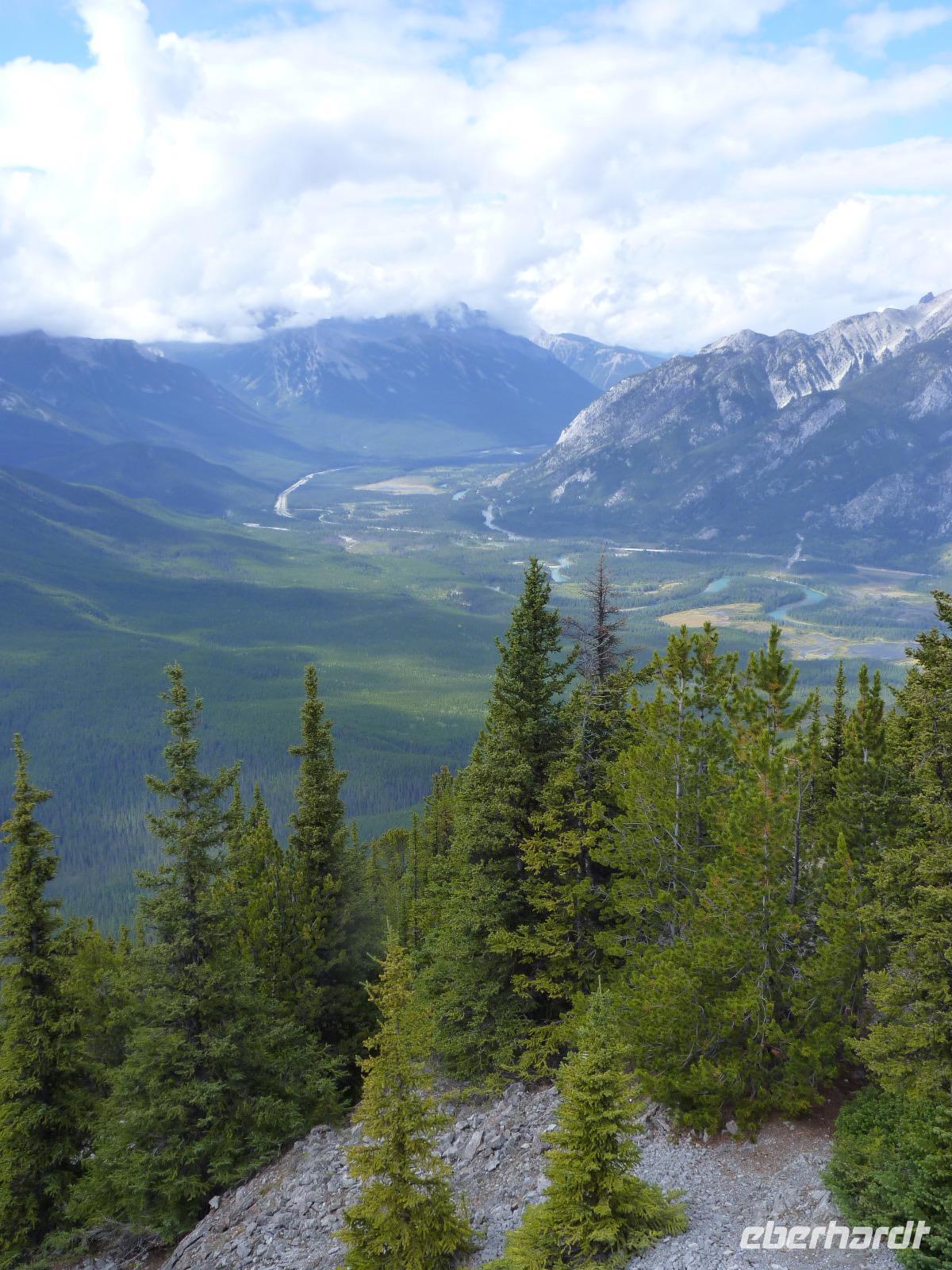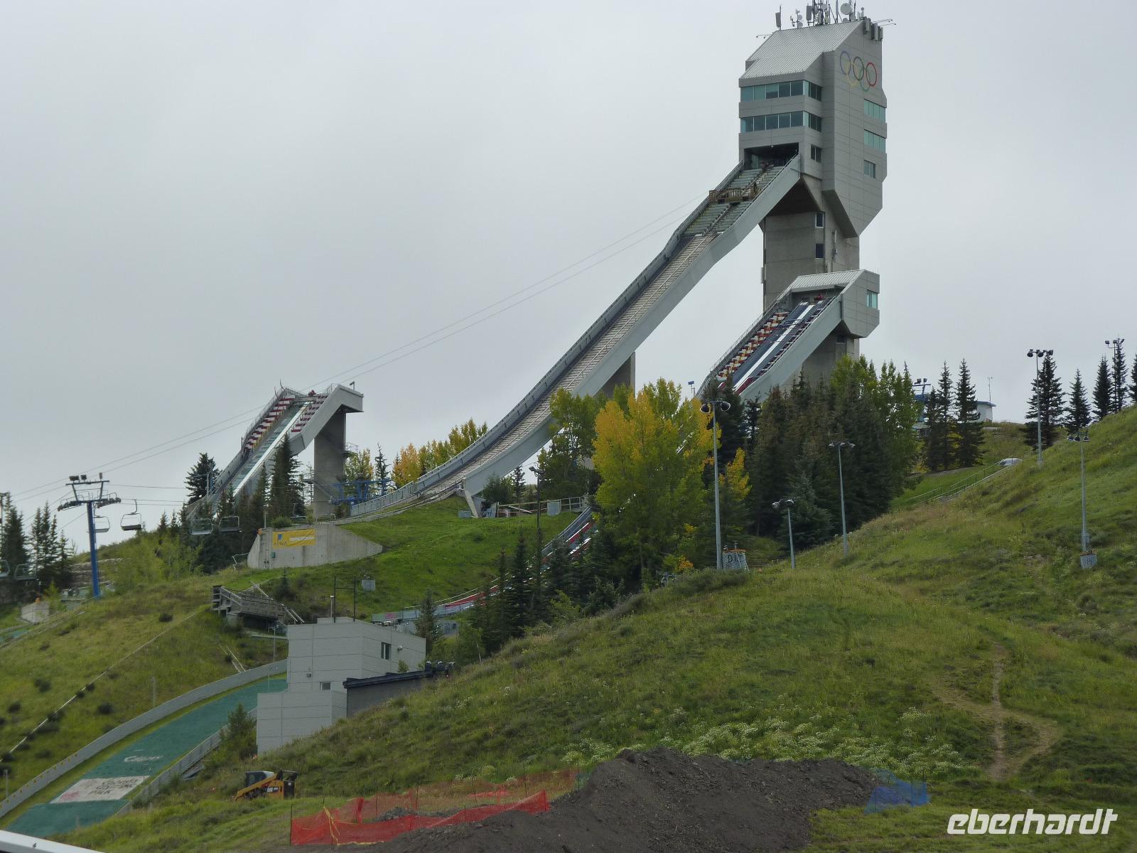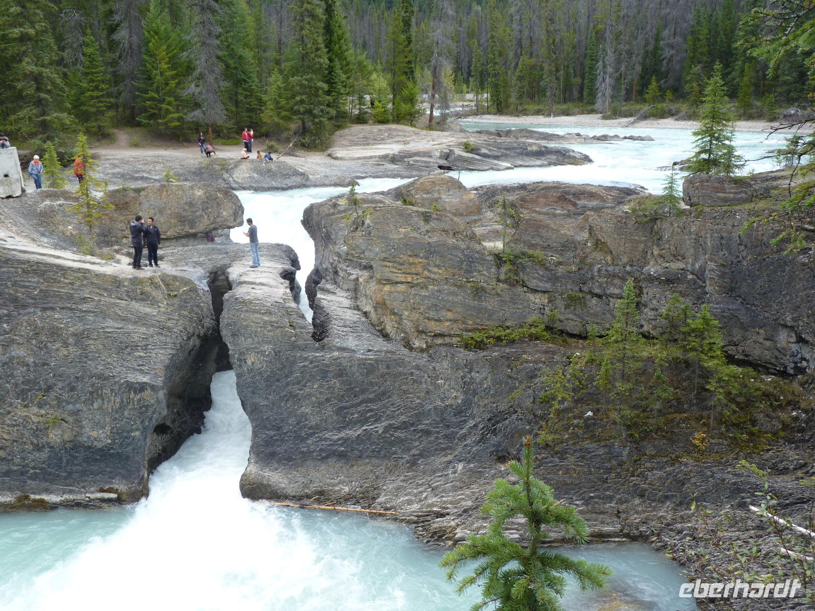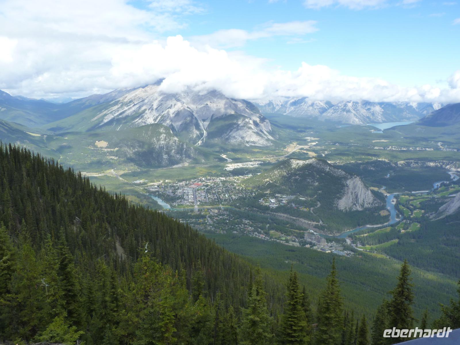 Heute sollte es losgehen - Kanada entdecken. Andere Länder, andere Sitten - das fing dann schon mal beim Frühstück an. Ganz schnell stellten wir aber fest, das uns das nordamerikanische Frühstück vor keine Probleme stellt und frisch gestärkt verließen wir das Hotel, um nach einer kurzen Stadtrundfahrt mit Stopps am Fort Calgary und am Olympiapark und einem Blick auf die Sprungschanzen der Olympischen Winterspiele von 1988 nach Banff weiterzufahren. Natürlich wurden wir während der Busfahrt (Kanada kann nicht klein und so hatten wir für insgesamt 19 Reisende einen Bus mit 56 Sitzen - also genügend Platz für Alle) von Al mit allerlei Informationen zur Region, zu den Ureinwohnern (Indianer), der Natur und vielen anderen Wissenswerten versorgt. In Banff, ein beliebter Urlaubsort für viele Kanadier, angekommen, hatten wir dann Zeit, uns umzuschauen und erste Einkäufe zu tätigen. Weiter ging es zum Sulphur Mountain (Schwefelberg), um mit der Schwebebahn auf den Berg zu fahren und die schöne Aussicht auf Banff und die umliegende Landschaft zu genießen. Wir hatten Glück mit den Wetter, da es kurz vorher aufklarte und wir so eine sehr gute Sicht u.a. auf das bekannte Banff Springs Hotel hatten. Anschließend ging es weiter zum Yoho-Nationalpark mit einem Stopp beim Spiral Tunnel (leider kein Zug) und beim Emerald Lake, an dem wir neben Fotos von der herrlichen Natur auch welche von einer gerade beginnenden Jüdischen Hochzeit machen konnten. Auf unserer Weiterfahrt zu unserer nächsten Übernachtung in Canmore hielten wir dann noch am Kicking Horse River, um dort die am Fluss entstandene natürliche Brücke zu betrachten. In Canmore bezogen wir dann unsere Zimmer im Rocky Mountain Ski Lodge. Unser sehr gut schmeckendes Abendessen nahmen wir im über der Straße liegenden Sage Bistro ein.