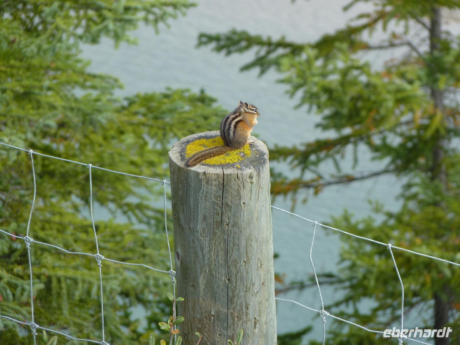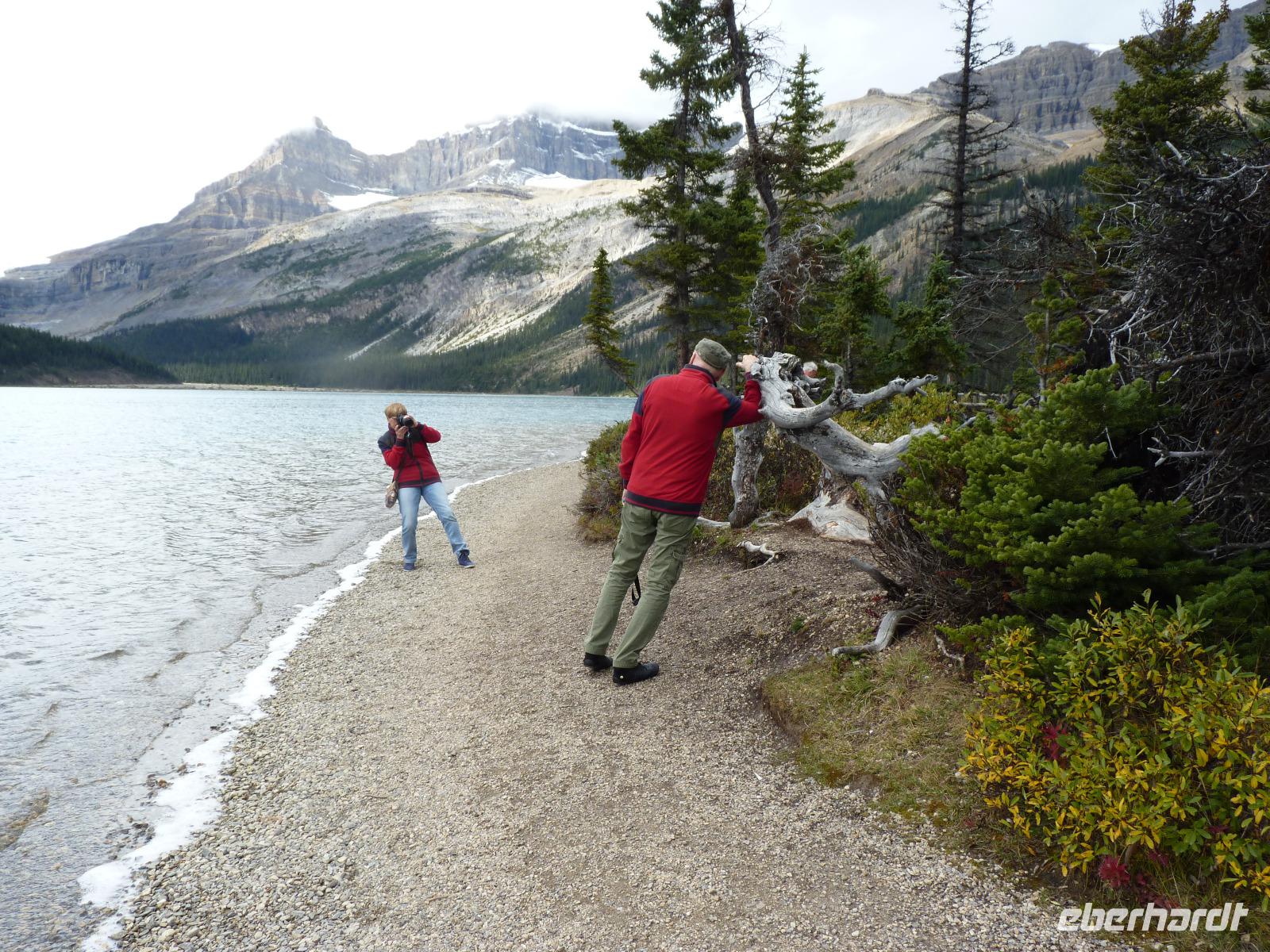 Heute ging es von Canmore in Richtung Jasper. Nicht lange nach unserer Abfahrt machten wir einen ersten Fotostopp am Castle Mountain mit seiner Eisenhower Spitze. Auch das erste Foto von wilden Tieres konnte geschossen werden - ein Streifenhörnchen. Unser erstes Ziel des Tages war Lake Louise. Zu diesem Zeitpunkt hingen die Wolken sehr tief, so dass der in der Nähe des Sees befindliche Victoria Gletscher nicht in voller Schönheit zu sehen war. Trotzdem konnten viele Fotos von der Umgebung und dem direkt am See liegenden Hotel Chateau Lake Louise gemacht werden. Weiter ging es zum Krähenfuß-Gletscher und anschließend dem Bow Lake mit Blick auf den Bow Gletscher. Hier haben wir dann auch unser Gruppenfoto gemacht. Weiter ging es zum Peyto Lake, der eine so herrliche Farbe hat, wie sie ein Maler nicht schöner darstellen könnte. Weiter ging es in Richtung Jasper Nationalpark und dem Athabaska Gletscher. Zuvor passierten wir noch die „Weinende Wand", die wegen der vielen sehr kleinen Wasserfällen von den Einheimischen so genannt wird. Leider spielte der Wettergott beim Athabaska Gletscher nicht mit, denn er überraschte uns mit Schneeregen, allerdings auch dem Einzigen auf unserer Reise. Vorbei am Tangle Creek Wasserfall, dem Sunwapta und Athabaska Wasserfällen erreichten wir dann am späten Nachmittag unser herrlich im Wald gelegenes Hotel für die nächsten 2 Nächte, dem Becker´s Chalet. Nach einem sehr guten Abendessen im Restaurant des Hotels konnten sich dann alle Gäste in den gemütlichen Unterkünften erholen.