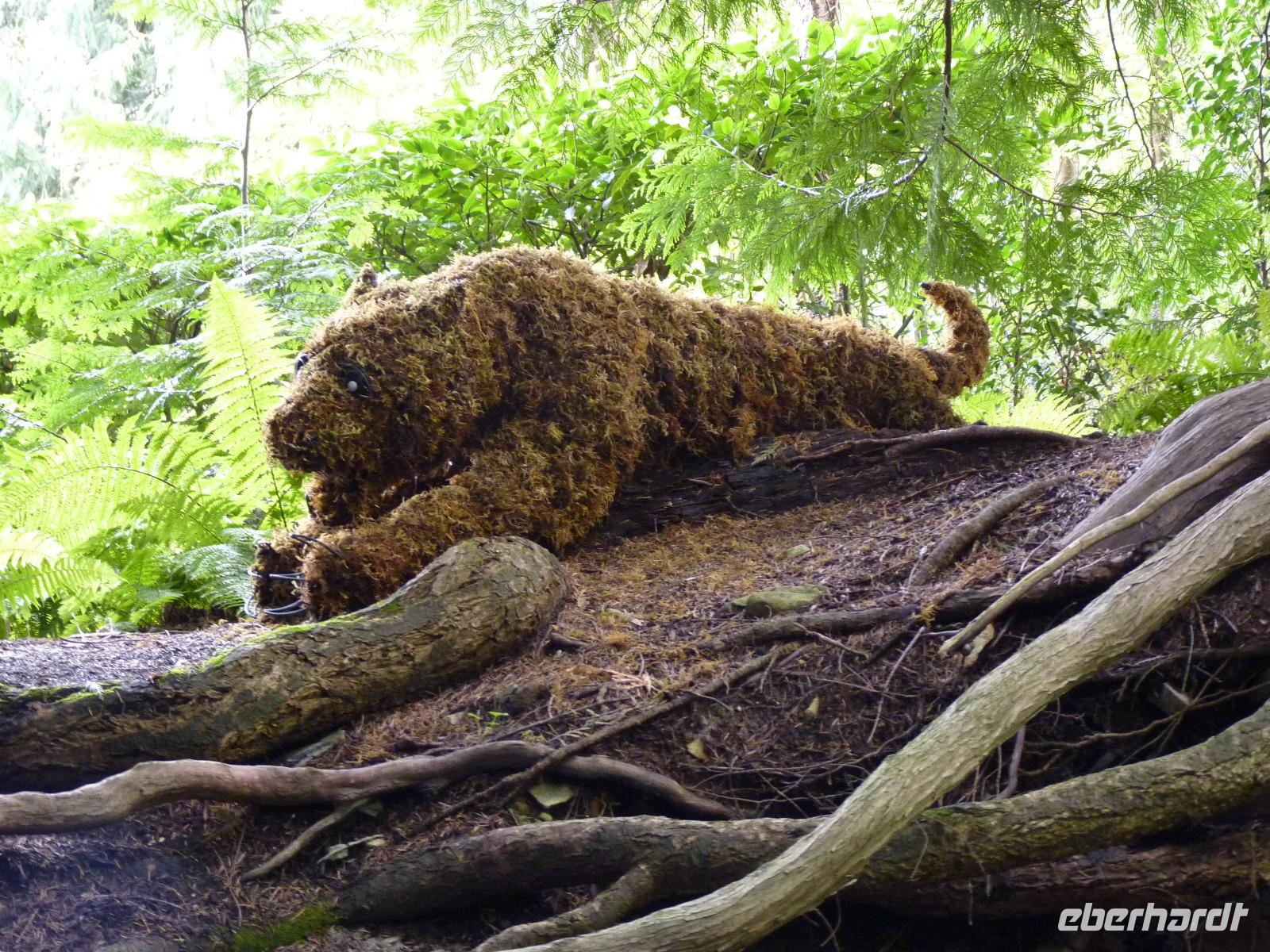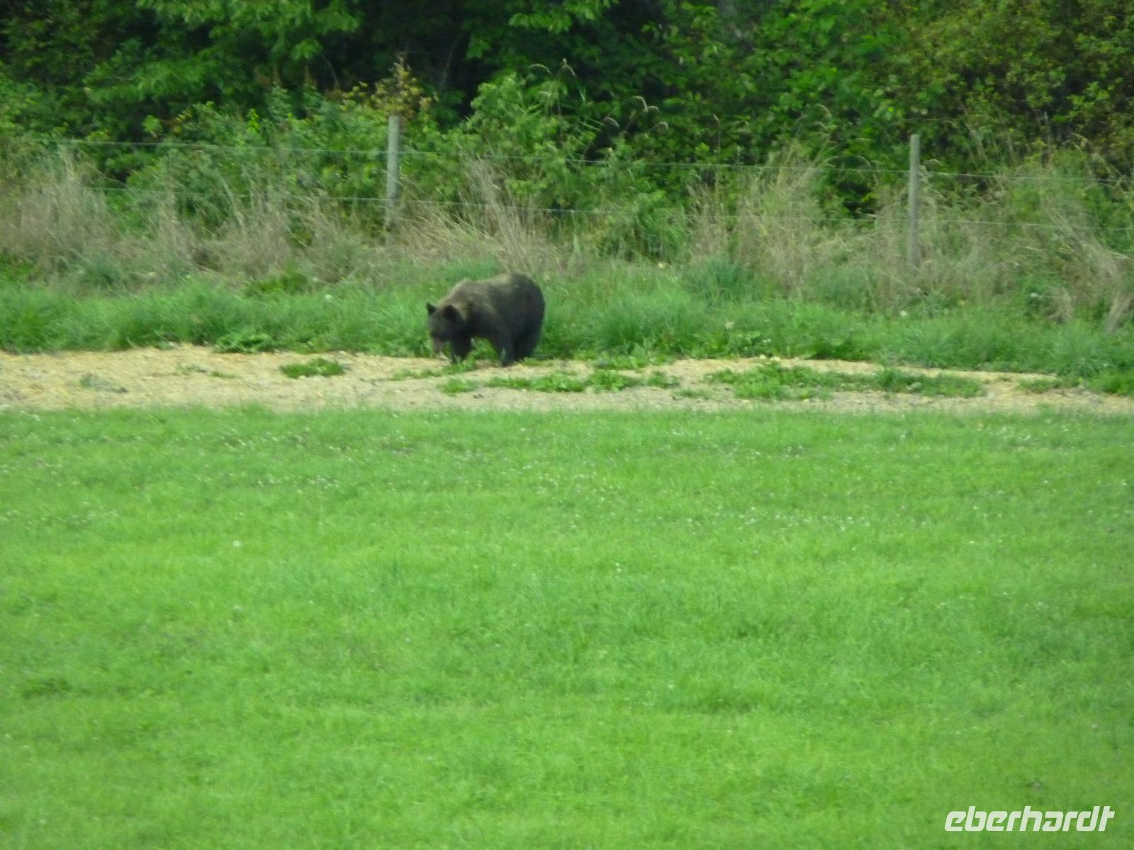 Der Schwerpunkt unserer heutigen Tour sollte der Besuch der Hat Creek Ranch sein. Dazu ging es nach der persönlichen Verabschiedung durch eine Hotel-Mitarbeiterin in Richtung Whistler, vorbei am Kameloops Lake (mit Fotostopp) zum Highway 97 auf die Gold Rush Route. Die Gegend selbst war anders als die Rocky Mountains nicht so sehr durch Wälder und schroffe Felsen als vielmehr durch sanfte, runde Hügel mit Salbeisträuchern gekennzeichnet. Auf unserer Fahrt entlang des Thompson Rivers erreichten wir dann die Hat Creek Ranch und konnten uns dort mit dem Leben der Goldsucher aus dem 19. Jhd. und der Bonaparte-Indianer vertraut machen. Natürlich gehörte eine kleine Kutschfahrt dazu, so dass jeder Gast nachvollziehen konnte, wie vor über 100 Jahren gereist wurde (mir tat schon nach 100m der Rücken weh). Nach dem Mittagessen auf der Ranch ging es weiter entlang des Fraser Tales in Richtung Whistler mit Fotostopps in Lillooet, dem Jade-Zentrum in British Columbia, und am Duffi Lake. Bei Pemberton haben wir dann endlich unseren ersten Bären gesehen und gleich einen Grizzly, eine Mama mit 2 Jungen, welche am Waldesrand unweit der Straße nach Futter suchten. In Whistler im Village Inn & Suites angekommen, nutzten wir die Zeit zu einem Spaziergang durch das lebhafte Zentrum des Wintersportortes der Olympischen Spiele von Vancouver 2010. Ich weiß nicht, ob wir so hungrig aussahen, aber bei unserem italienischen Abendessen außerhalb des Hotels haben wir so viel zu essen bekommen, dass dann der Fußweg zum Hotel der Verdauung sehr förderlich war.