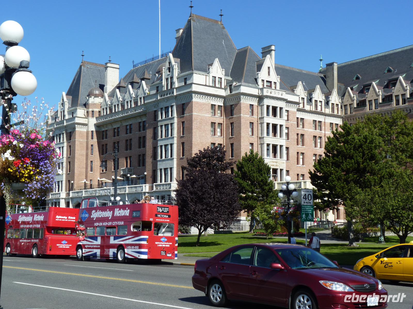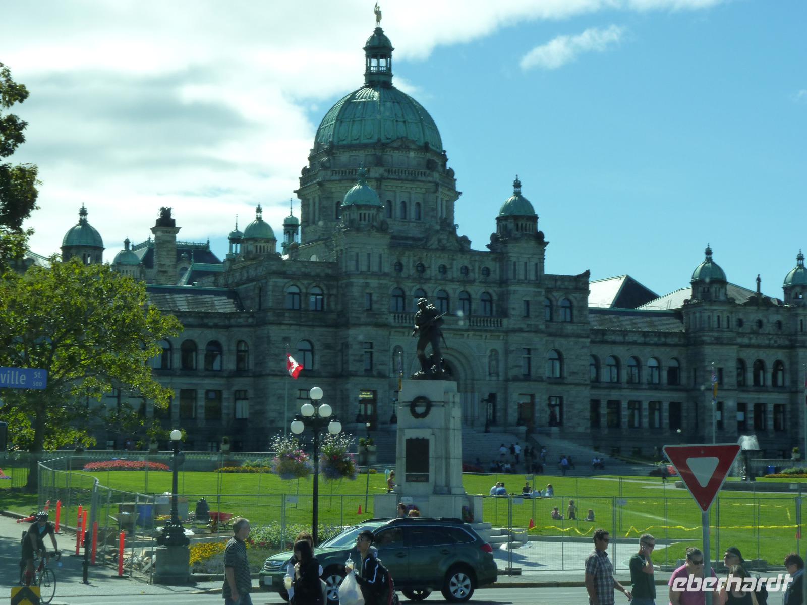 Heute stand für die meisten Gäste der Ausflug nach Vancouver Island auf dem Programm. Zeitiges Aufstehen war angesagt, denn um unseren Fährtermin um 08:00 Uhr zu erreichen, mussten wir schon um 06:30 Uhr vom Hotel losfahren. Kurz vor der Fähre dann die „Überraschung" - unsere Fähre war ersatzlos gestrichen. Nun hieß es 1 Stunde warten bis zur Nächsten. Die Zeit vertrieben wir uns mit einem Frühstück im Fahrhafen. Um 9:00 Uhr legte dann unsere Fähre pünktlich ab und nach etwa 1,5 Stunden erreichten wir Vancouver Island, um dort zu unserem ersten Ziel, dem Butchart Garden mit seinen sehr schönen Blumenanlagen, aufzubrechen. Im Anschluss daran fuhren wir nach Victoria, dem Hauptort von Vancouver Island. Da wir aufgrund des hohen Verkehrs für die Strecke fast eine Stunde benötigten, stand uns leider nicht mehr allzu viel Zeit zur Erkundung der Stadt zur Verfügung. Nach kurzer Stadtrundfahrt und Spaziergang mussten wir dann schon wieder aufbrechen, zumal wir für unsere Rückkehr nach Vancouver die Fähre im ca. 100 km entfernten Nanaimo erreichten mussten. Die Fähre erreichten wir mit einem kleinen Stopp in Duncan pünktlich und so kehrten wir auch entsprechend pünktlich wieder in unser Hotel zurück. Kurz darauf gingen wir dann wieder außerhalb des Hotels zum Abendessen.