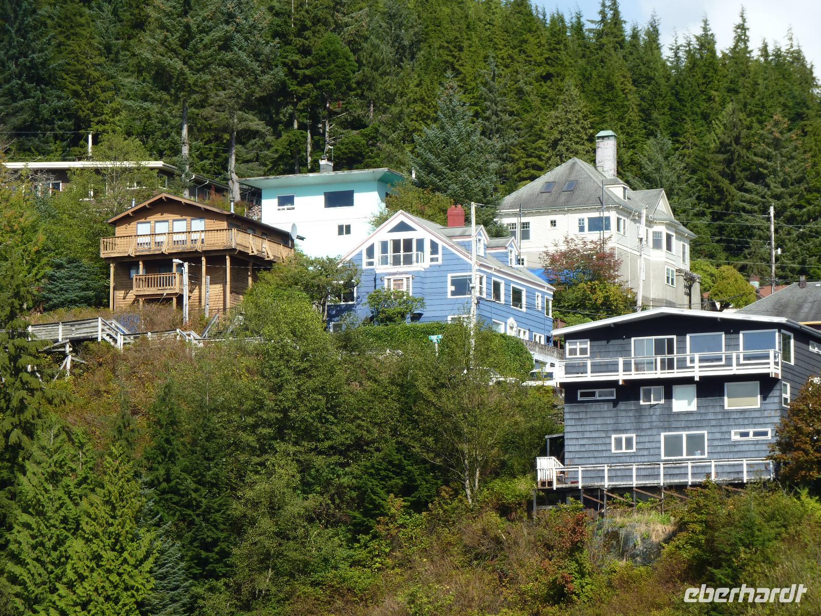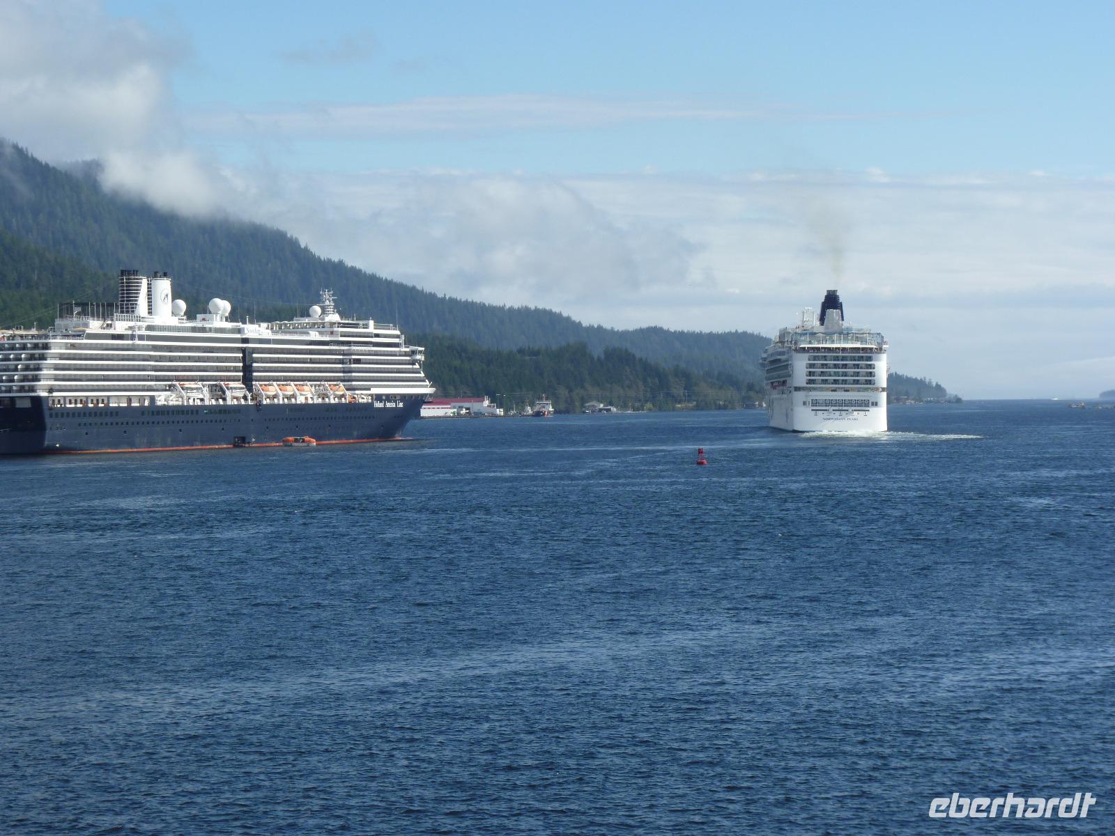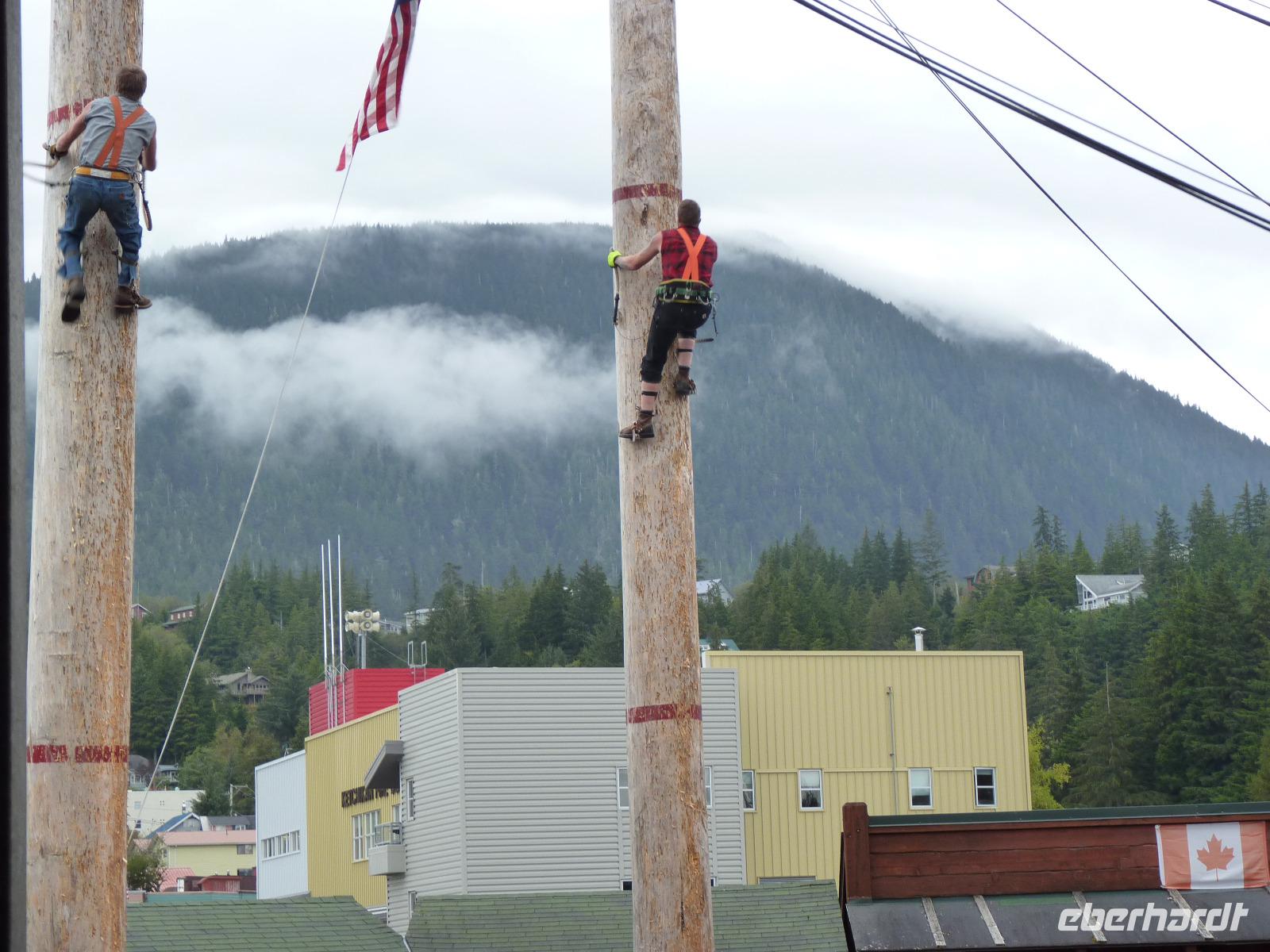 Noch einmal hatten wir die Chance, an Land zu gehen, die Stadt Ketchikan zu besichtigen oder an einem der angebotenen Ausflüge teilzunehmen. Nachdem unser Schiff gegen 14:00 Uhr pünktlich im Hafen anlegt, beginnen die gebuchten Ausflüge. Ich mache mit einigen Gästen eine kleine Bustour zu einem Park mit Totempfählen und anschließend zur Lumberjack-Show, bei der 2 Teams sich in diversen Wettkämpfen beim Holzpfählen, Sägen oder Axt-Zielwurf um den Besten streiten. Eine kraftzehrende, aber aktiongeladene Show, die auch unseren Gästen gut gefallen hat. Auch heute legen wir wieder gegen 19:30 Uhr ab und fahren Richtung Inside Passage.