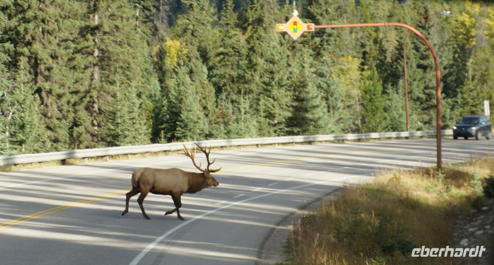 Heute ging es zum Medicine Lake und dem nicht weit davon entfernten Maligne Lake, um dort eines der Fotomotive Kanadas selbst fotografieren zu können. Am Medicine Lake haben wir dann unseren ersten Weißkopfseeadler (Bald Eagle = soviel wie Glatzkopfadler) gesehen. Am Maligne See unternahmen die meisten Gäste eine Bootstour zur Spirit Island, dem Motiv auf vielen Postkarten in Kanada. Die Insel selbst ist ein Heiligtum der Indianer und darf nicht betreten werden. Schöne Bilder bei gutem Wetter waren trotzdem garantiert. Der See selbst ist malerisch umrahmt von vielen schneebedeckten Gipfeln. Zudem konnten die meisten Gäste Fotos von einem am See grasenden Elche machen. Anschließend besuchten wir den Maligne Canyon, wo wir bei einem kleinen Spaziergang die durch das Wasser tief eingegrabene Schlucht besichtigen konnten. Weiter ging es nach Jasper. In der Stadt nutzten dann Alle die zur Verfügung stehende Zeit für einen Stadtbummel. Da wir heute etwas zeitiger im Hotel waren, unternahmen viele unserer Gäste noch einen Spaziergang am reißenden Athabaska River und im großzügigen Hotelgelände, um anschließend wieder ein sehr gutes Abendessen zu genießen.