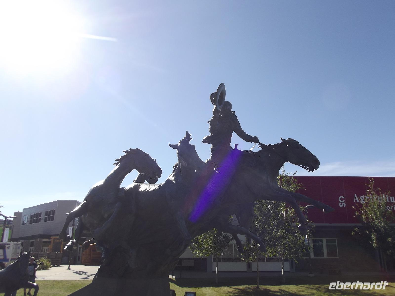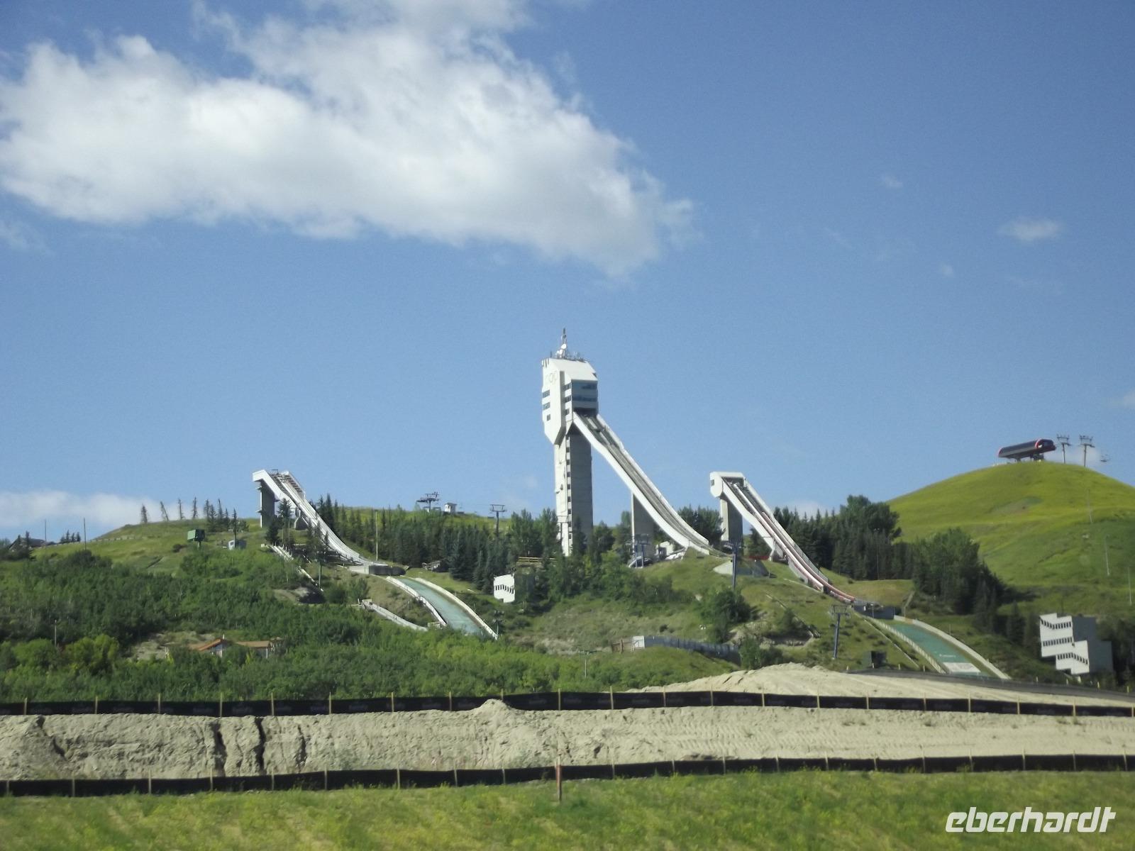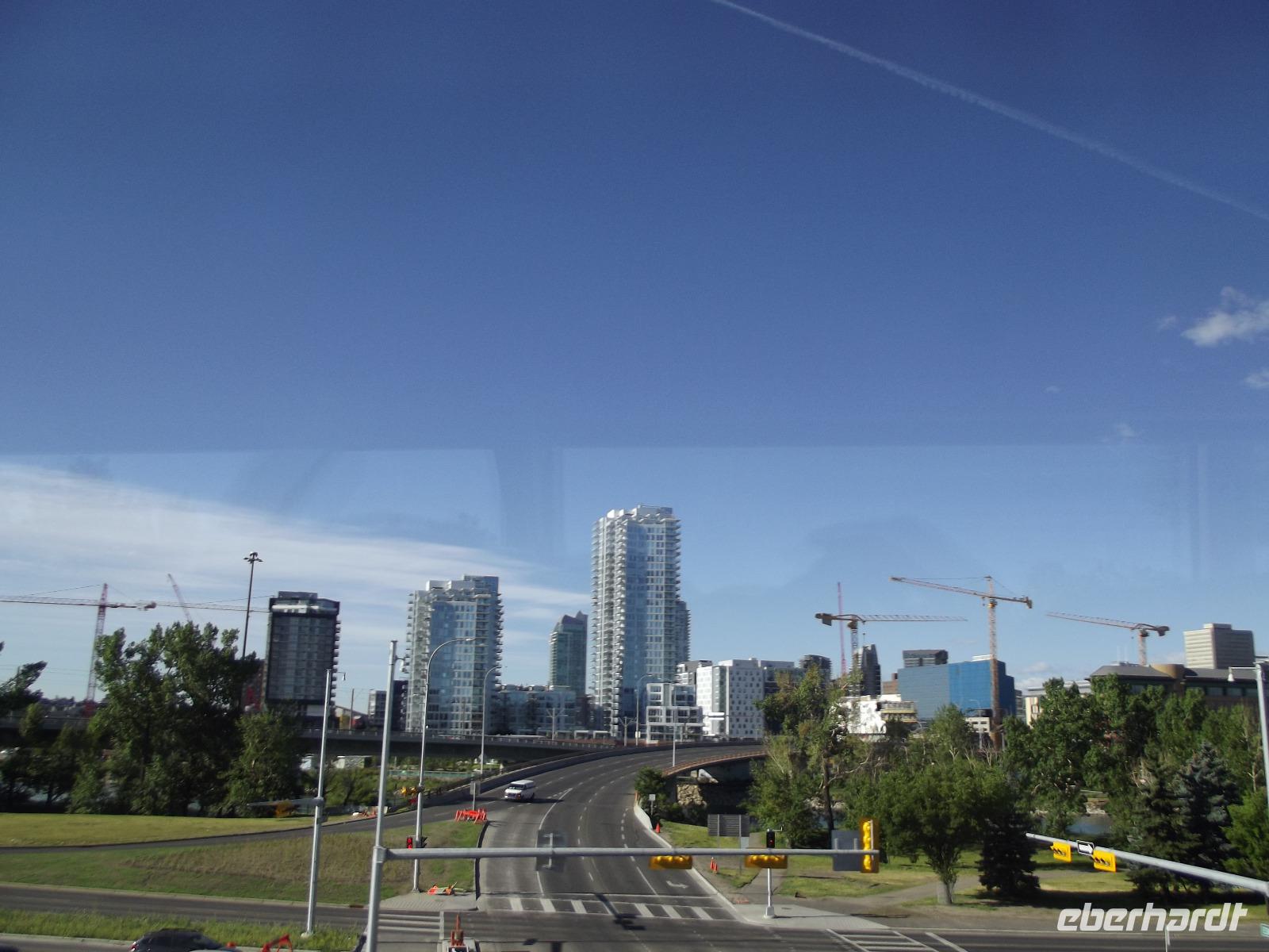 Unser erster Tag in Kanada beginnt mit einem reichhaltigen Frühstück im modernen Ambiente unseres Hotels. Schon jetzt bekommen wir einen Eindruck von den Essgewohnheiten der Kanadier: bereits zum Frühstück wird gerne Herzhaftes gegessen. Um 8 Uhr lernen wir unseren sympathischen Busfahrer Marvin kennen, der uns die nächsten Tage begleiten wird. Auf dem Weg zu unserer Stadtrundfahrt in Calgary erzählt uns Marion von der Geschichte der Kanadier: viele Einwohner legen Wert auf ihre britischen Wurzeln, was den ein oder anderen Kilt-Träger erklärt. Auch über die Gründung Calgarys lernen wir eine Menge: die ersten Siedler und Fellhändler kamen in den 1860er Jahren und eine Siedlung namens Fort Calgary wurde 1875 gegründet. Kurz darauf kamen immer mehr Menschen mit der Eisenbahn und die Einwohnerzahlen boomten. Damals gab es auch eine Menge an Ranches, die Rinder züchteten und Reichtum durch den Fleischverkauf erlangten. So wurde Calgary ein Zentrum des Handels und der Rinderzucht.
