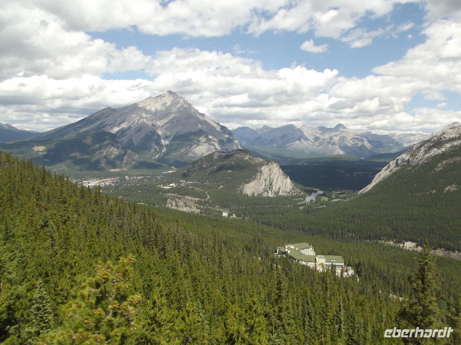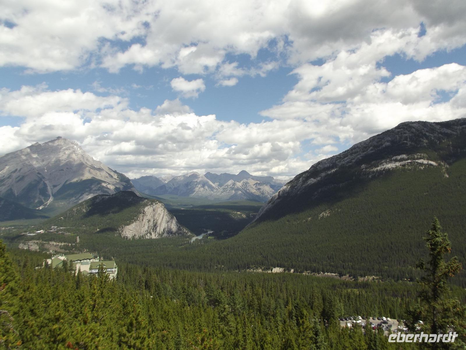 Schon bald erreicht unsere Reisegruppe Calgarys „Downtown" - das Geschäftsviertel mit seinen imposanten, gläsernen Wolkenkratzern. Unsere Fahrt führt uns weiter durch Chinatown, bis hin zum Stampede Stadion, wo wir einen kleinen Fotostopp einlegen. Weiter geht es durch saftig-grüne Landschaften und das wunderbare, sonnige Wetter zaubert uns ein Lächeln ins Gesicht. Wir fahren entlang der „Canada Highway No. 1", die längste asphaltierte Straße Kanadas: von Vancouver bis Neufundland. Unser nächster Halt ist am Olympiapark, wo 1988 die Bob- und Skisprungwettkämpfe der Olympischen Winterspiele durchgeführt wurden. Wir erreichen unser Tagesziel: den Banff Nationalpark, welcher als der älteste Nationalpark Kanadas bezeichnet wird. In der Ortschaft Banff kann man lediglich wohnen, wenn man dort seinen Lebensmittelpunkt hat. Zum frühen Nachmittag halten wir an der Sulphur Mountain Gondola und kommen in den Genuss, die weitläufigen Wälder und reißenden, hellblauen Flüsse aus der Gondel zu bestaunen. Wir können uns kaum sattsehen und wandern noch einen kleinen Trail bis zum Berggipfel. Nicht nur die Natur besticht durch seine Einzigartigkeit: auch das ortsansässige Fairmont Banff Springs Hotel begeistert mit einer wahrhaft königlichen Architektur, die wir von einer extra angelegten Aussichtsplattform betrachten können. Von den Eindrücken überwältigt, finden wir uns zum späten Nachmittag in unserem zentralgelegenen, charmant-rustikalen Hotel, nicht weit von der bekannten Promenade, ein. Der Abend endet in dem italienischen Tucini-Restaurant unweit vom Hotel oder in einem der anderen Lokale auf der Bummelmeile von Banff.