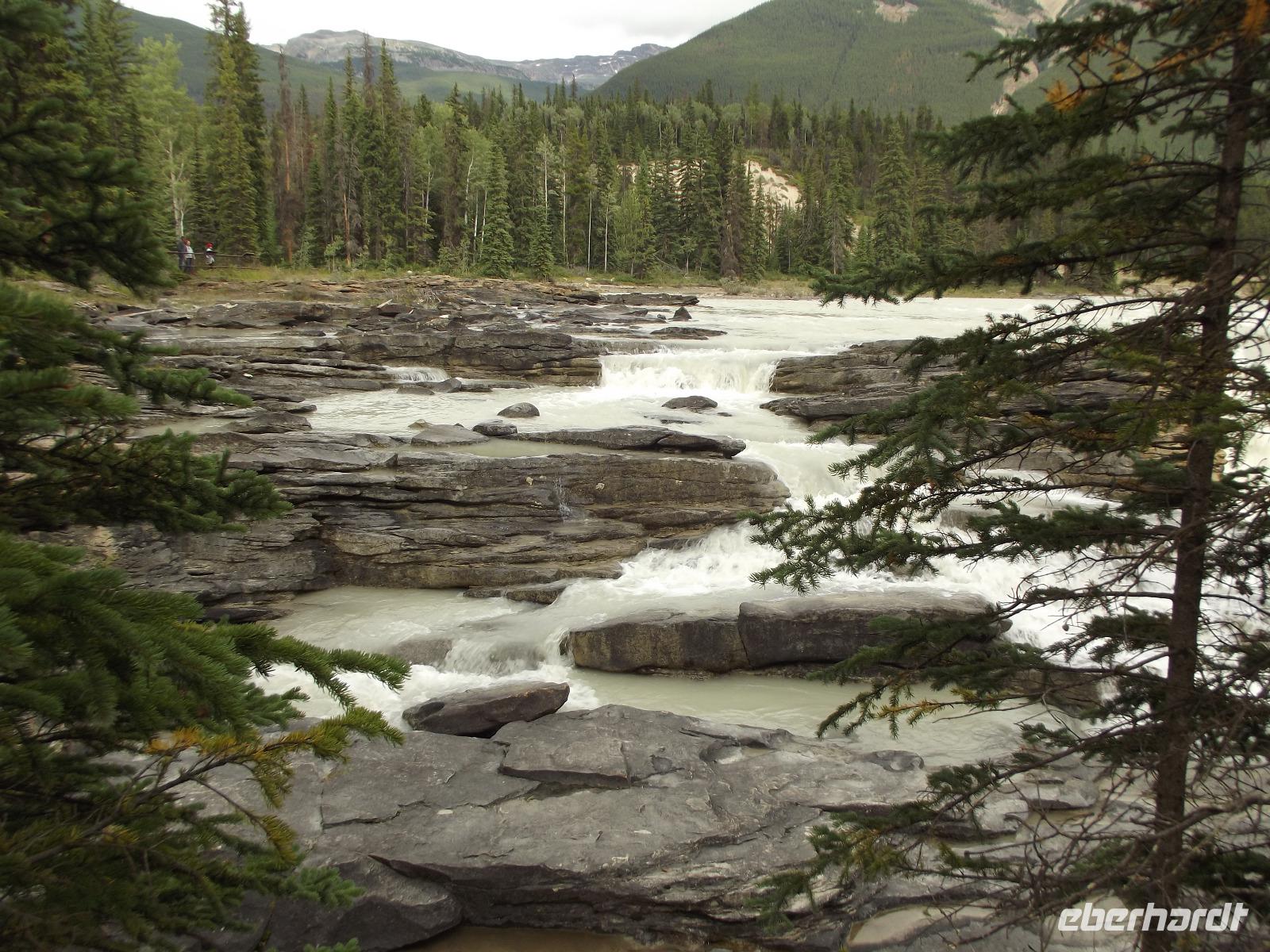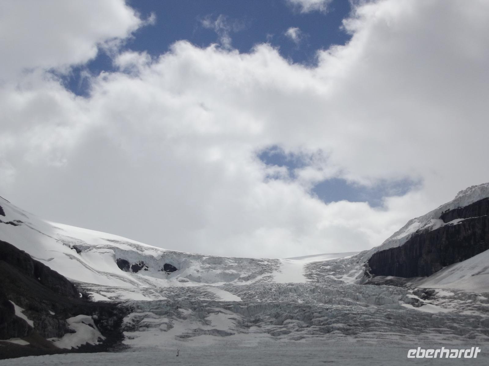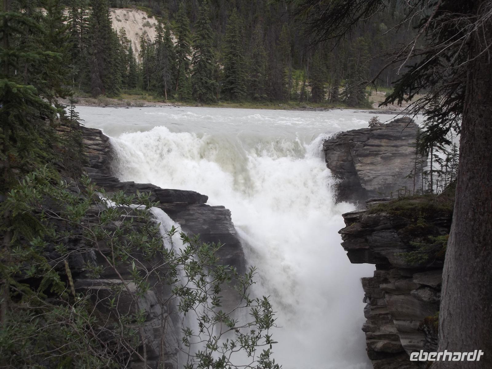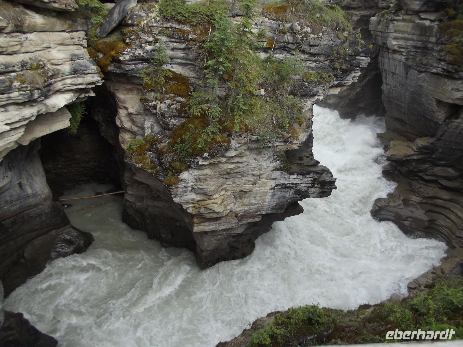 Unser nächster Tagesprogrammpunkt ist der Lake Louise: ein See, der durch das türkisblaue Wasser und die umrahmende Bergwelt weltweit bekannt ist. Uns bietet sich ein perfektes Bild, wie von einer Postkarte. Das luxuriöse Hotel Fairmont Chateau Lake Louise ist ein kleiner Wink der Zivilisation inmitten dieses Naturspektakels. Einige Gäste machen einen ausgiebigen Spaziergang, andere begutachten die Filmkulisse von Dr. Schiwago. Gegen Mittag setzen wir unsere Fahrt fort, passieren den Crowfoot Glacier (Krähenfuss-Gletscher) und halten am wunderschönen Bow Lake, um Fotos zu machen. Kurze Zeit später gelangen wir zum Peyto Lake, benannt nach Bill Peyto, einem bekannten Bergführer Ende des 19. Jahrhunderts. Nachdem wir auch dort Fotomaterial gesammelt haben, steht nun das Tageshighlight bevor. Marvin, unser netter Fahrer, fährt uns über den Icefield Parkway, eine wunderbare Fernstraße durch die kanadischen Rockies, aber unser Ziel ist der Athabasca Gletscher. Nach einer kurzen Mittagspause setzen wir uns, eingepackt in Schals und Handschuhe, in die gigantischen Schneemobile. Es geht rauf und runter und nach etwa einer halben Stunde Fahrt sind wir auf dem Gletscher angekommen. Um uns herum präsentieren sich mehrere Gletscher in voller Schönheit und die Sonne lässt das Eis in sanftem Blau leuchten. Mit den Schneemobilen geht es zurück zum Icefield Centre und gegen halb 5 verlassen wir den Banff Nationalpark und erreichen den Jasper Nationalpark. Unsere Reiseleiterin Marion hat uns schon einige Merkmale von Braun- und Schwarzbären erläutert - und nun passierte es: ein Schwarzbär am Straßenrand, unweit von unserem Reisebus. Er wandte uns leider hauptsächlich das Hinterteil zu, aber die Reisegruppe war dennoch glücklich. Und die Glückssträhne setzte sich fort, denn kurz darauf entdeckten wir eine Bergziegenfamilie. Was für ein Tag! Bevor wir unser Hotel für die nächsten zwei Nächte anfuhren, machten wir Halt an den Athabasca Wasserfällen. Der reißende und brausende Wasserfall ergab ein wunderschönes Bild und auch die Felsformationen waren sehr außergewöhnlich.