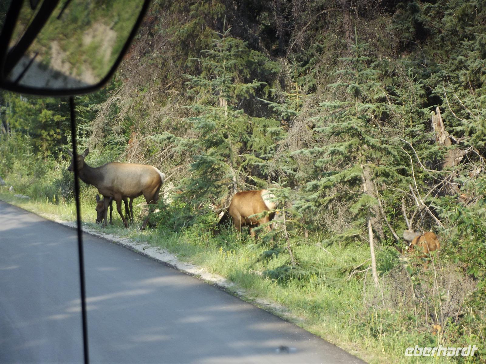 Heute heißt es: Bye Banff! Hello Jasper! Doch bevor es soweit ist, stärken wir uns am reich gedeckten Frühstückstisch des EL TORO Restaurants. Von Pancakes über Rührei bis hin zu frischem Obst - es mangelt uns an nichts. Mit gefüllten Bäuchen machen wir uns auf den Weg, vorbei am alten Hauptbahnhof hinein in das Bow Tal, benannt nach dem Bow-Fluss, der dem gleichnamigen Gletscher entspringt. Die Kiefer- und Fichtenwälder werden von kleinen Bächen und Flüssen durchquert, Kontraste über Kontraste. Besonders die Lodge Pole Pines (Pinien) sorgen für einen wunderbaren Duft. Wir erreichen schließlich den Castle Mountain („Schlossberg"), dem sein Name aufgrund der schlossähnlichen Formation verliehen wurde. Zum ersten Mal kommen wir der kanadischen Tierwelt etwas näher, denn neben unserem Bus entdecken wir eine Erdhörnchenfamilie, die ganz keck in unsere Kameras blickt. Auch die Pflanzenwelt hat viel zu bieten: die „Fire Weed"-Blume leuchtet in sanftem Pink und die Indianer sagen, dass diese Pflanze von unten nach oben blüht. Sobald sich die Blüte oben in voller Pracht entfaltet, wird es Winter.