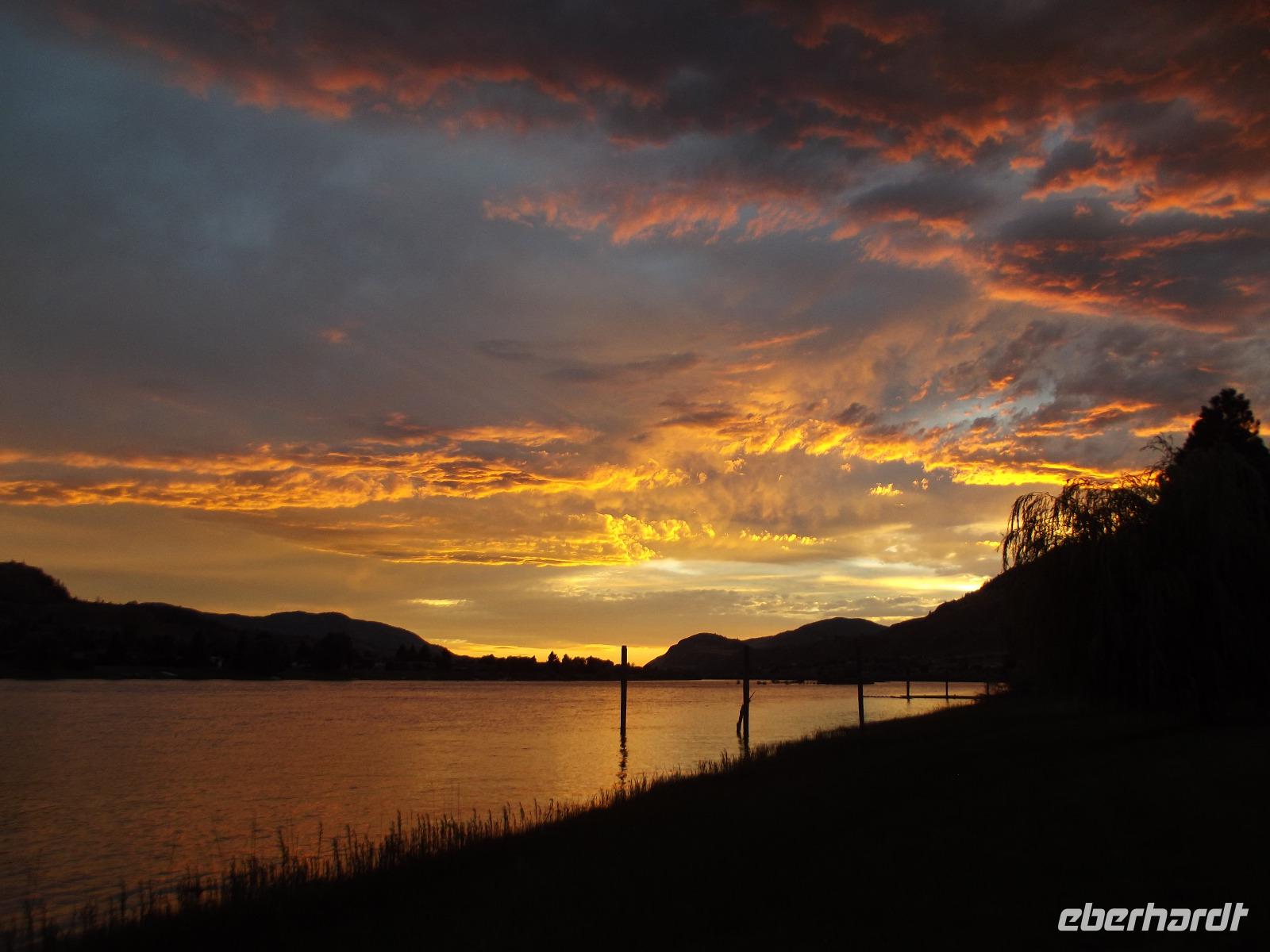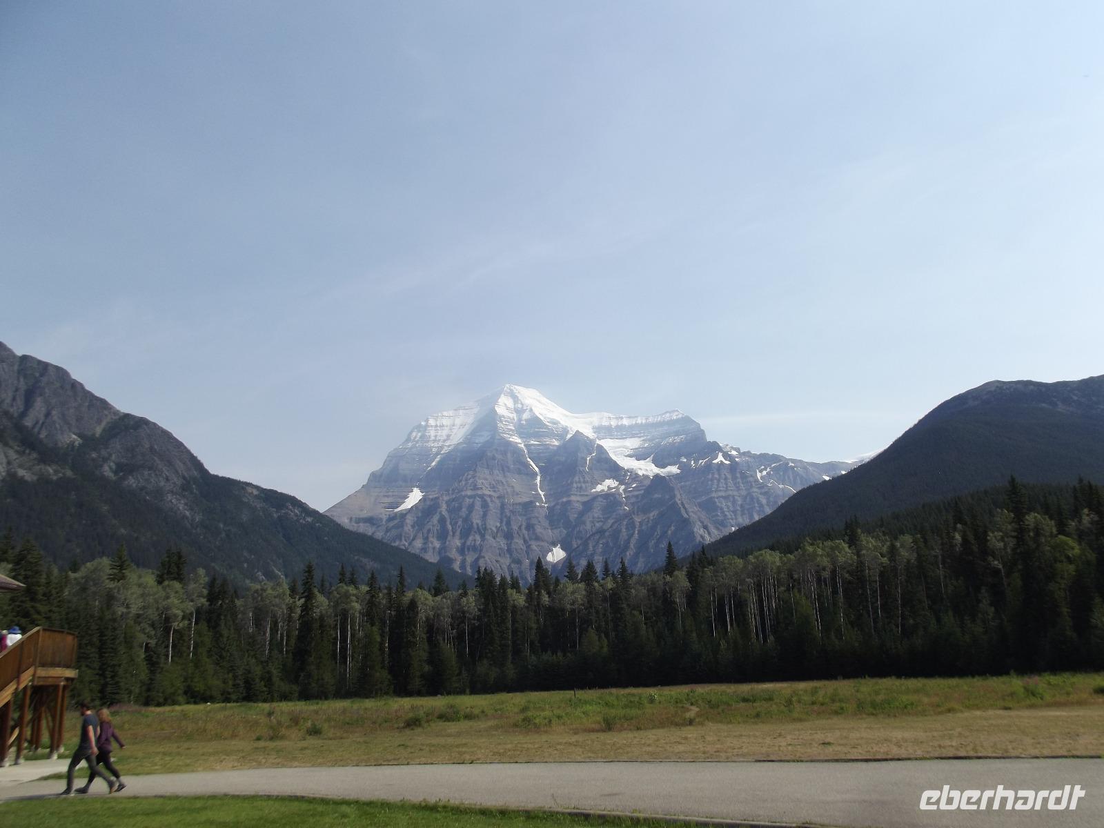 Die Sonne lacht und weckt uns früh am Morgen. Wir haben viel vor, daher fahren wir nach dem Frühstück gleich los zum Pyramiden See, der zu dieser Uhrzeit wundervolle Wasserspiegelungen bietet - ein fantastisches Fotomotiv. Marion möchte uns auch noch den angrenzenden Patrizia-See zeigen, aber wir werden „tierisch" aufgehalten: eine Wapitihirschherde versperrt uns die Straße und die Kleinen und Großen stolzieren unbeeindruckt vor dem Bus umher. Eine Viertelstunde später haben wir wieder freie Fahrt und der Patrizia-See zeigt sich von seiner schönsten Seite. Der Yellowhead Highway, eine wichtige Transportautobahn für Lastwagen leitet uns zum Yellowhead Pass, der die Grenze zwischen Alberta und British Columbia markiert. Für uns heißt das: die Uhr wird eine Stunde zurückgestellt. Der nächste Stopp ist der Mount Robson, der mit 3954m der größte Berg der Kanadischen Rocky Mountains ist. Wir halten beim Visitor Centre und holen uns etwas Infomaterial zu der Region und genießen unser Mittagessen am Fuße des kanadischen Riesen. Auf der Fahrt in Richtung der Columbia Mountains, die im Gegensatz zu den Rockies vulkanischen Ursprungs sind, erklärt uns Marion die Vor- und Nachteile des kanadischen Gesundheitssystems und der üblichen Altersvorsorge. Die Reiseroute geht entlang des North Thompson Flusses und wir halten an einer schönen Wiese am Fluss, um dort ein gemütliches Picknick mit Wein, Käse, Cracker und Salami zu machen. Ein weiteres Highlight erwartet uns: die Spahats Creek Falls (Spahats Wasserfälle), dessen Wasserbett durch Eruption und Lavaströme gewachsen ist. Das schöne Wetter verführt uns dazu, uns ein Eis zu genehmigen. Weiter geht es nach Kamloops, wo es leider in den vergangenen Wochen mehrere Waldbrände gegeben hat. Wir merken schon unterwegs, dass es draußen immer diesiger und rauchiger wird und auch im Bus ist die Luftveränderung zu spüren. Die Landschaften verändern sich: wir sehen spärlich, bewachsene Hügel und trockenes Ranchland. Kamloops ist indianisch und bedeutet „das Zusammenfließen von Flüssen", denn die Ortschaft liegt am Zusammenfluss des North Thompson River und des South Thompson River. Am frühen Abend treffen wir am Hotel ein, einer Art Ranch mit Lamas und Pferden an der Einfahrt. Ein Hotelmitarbeiter empfängt uns mit kleinen Marshmallows, die nach dem Abendessen auf kanadische Art über dem Lagerfeuer gebräunt werden und zwischen zwei Butterkekshälften mit Schokolade gelegt werden - ein sehr süßes Vergnügen.
