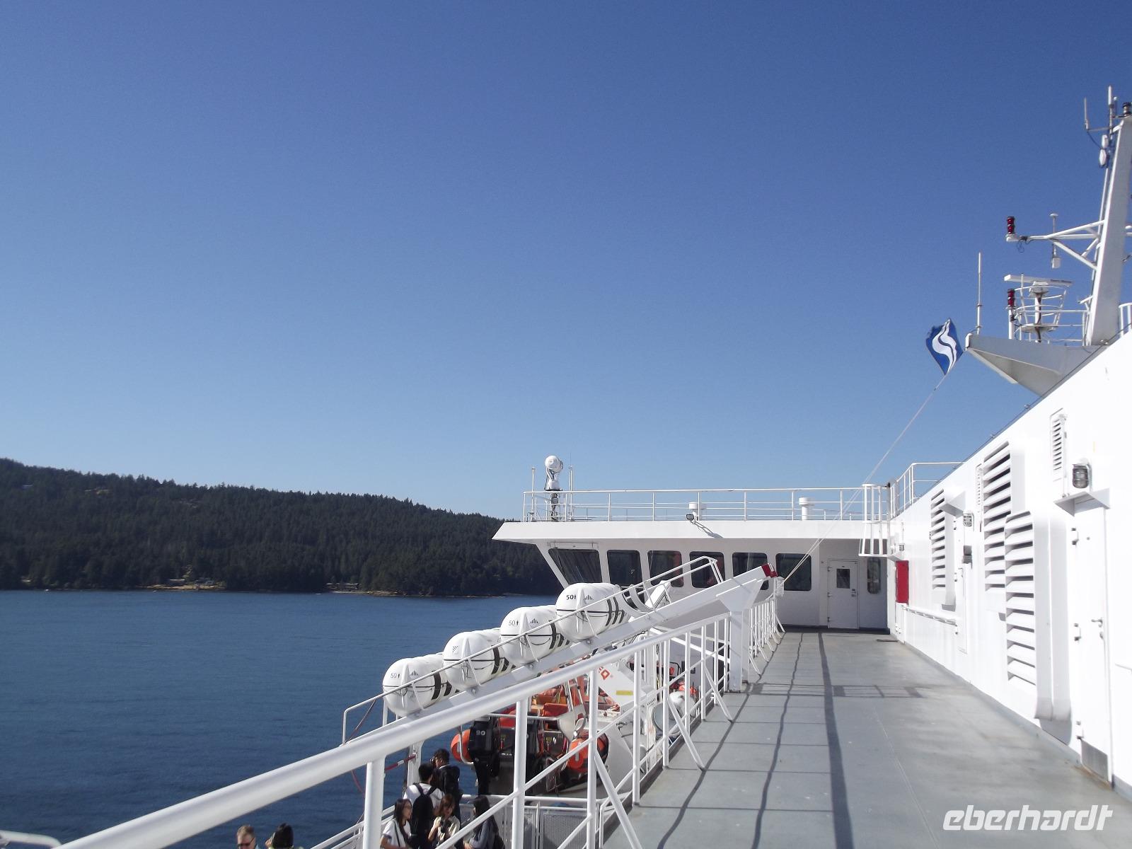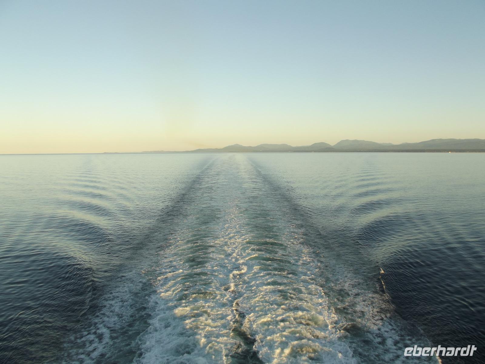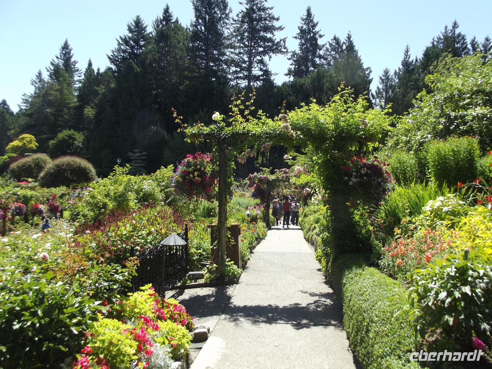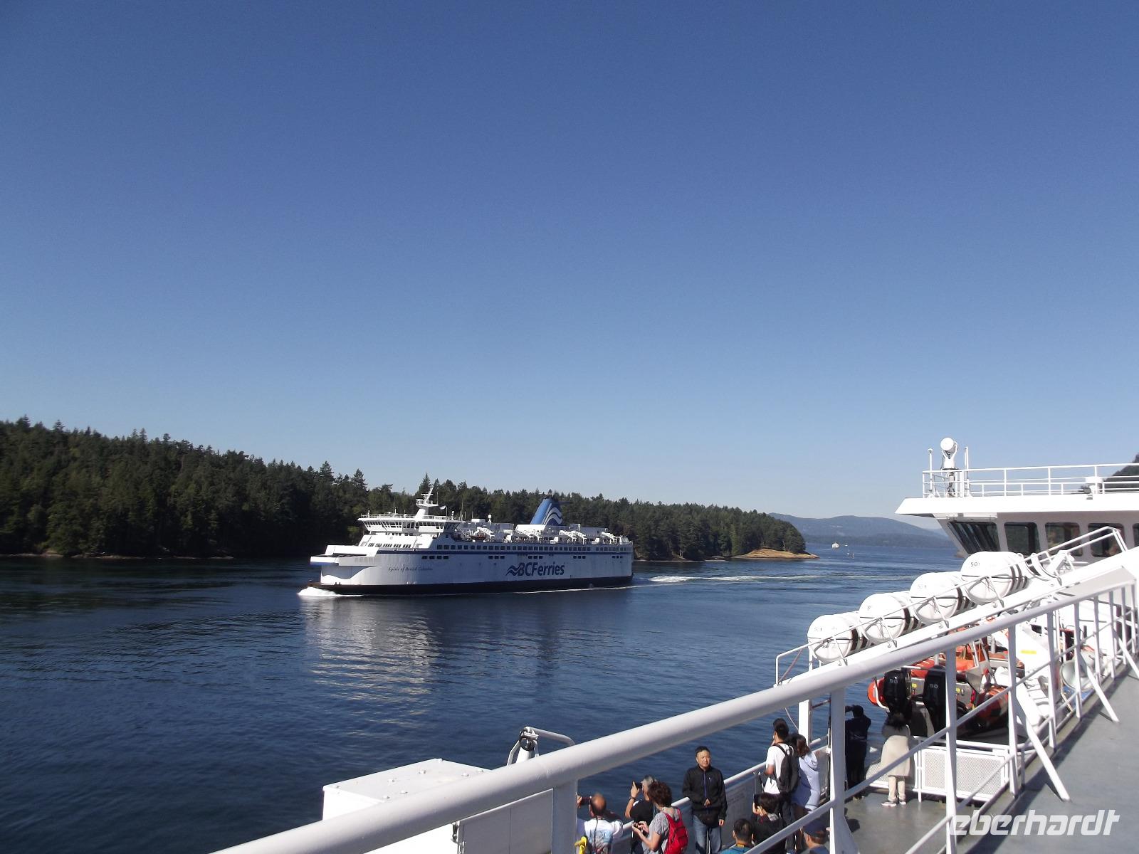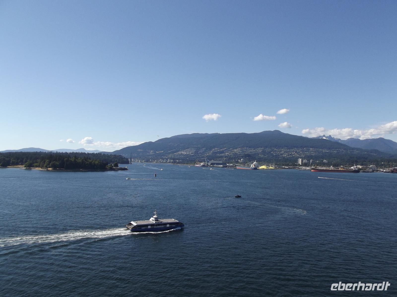An diesem Tag treffen wir uns besonders früh zum Frühstück, denn heute machen wir einen Ausflug nach Vancouver Island und müssen zeitig unsere Fähre erreichen. Schon um 09:00 Uhr legt die Fähre ab und wir lassen uns den Fahrtwind um die Ohren pusten. Vancouver Island, entdeckt und erobert von George Vancouver, einem ehemaligen Offizier von Thomas Cook, ist die größte Pazifikinsel Nordamerikas. Unser erster Programmpunkt sind die Butchart Gardens im Süden von Vancouver Island. Hierbei handelt es sich um einen riesigen privat angelegten Blumengarten, der einst von Jennie Butchart in einem alten Steinbruch gepflanzt wurde. Seit dem Anbau im Jahre 1904 ist der Garten noch immer in Familienbesitz und glänzt in voller Schönheit. Nach eineinhalbstündigem Aufenthalt geht es weiter nach Victoria, die Hauptstadt von British Columbia. Wir halten zunächst am Terry-Fox-Denkmal, zu Ehren eines jungen Mannes mit einem Karzinom, der bis 1981 durch Kanada lief, um Geld für die Krebsforschung zu sammeln. Victoria hat einen idyllischen Hafen, an dem wir halten, um etwas durch die Gegend zu bummeln, Essen zu gehen oder Geschenke für die Lieben daheim zu kaufen. Leider ist die Zeit viel zu kurz und wir müssen schon wieder auf die Fähre zurück nach Vancouver auf das Festland. Die Gäste lassen sich das letzte Abendessen in Kanada schmecken und der ein oder andere erblickt das Feuerwerk vom Celebrations of light (=Lichterfest), das am selbigen Abend stattfindet.