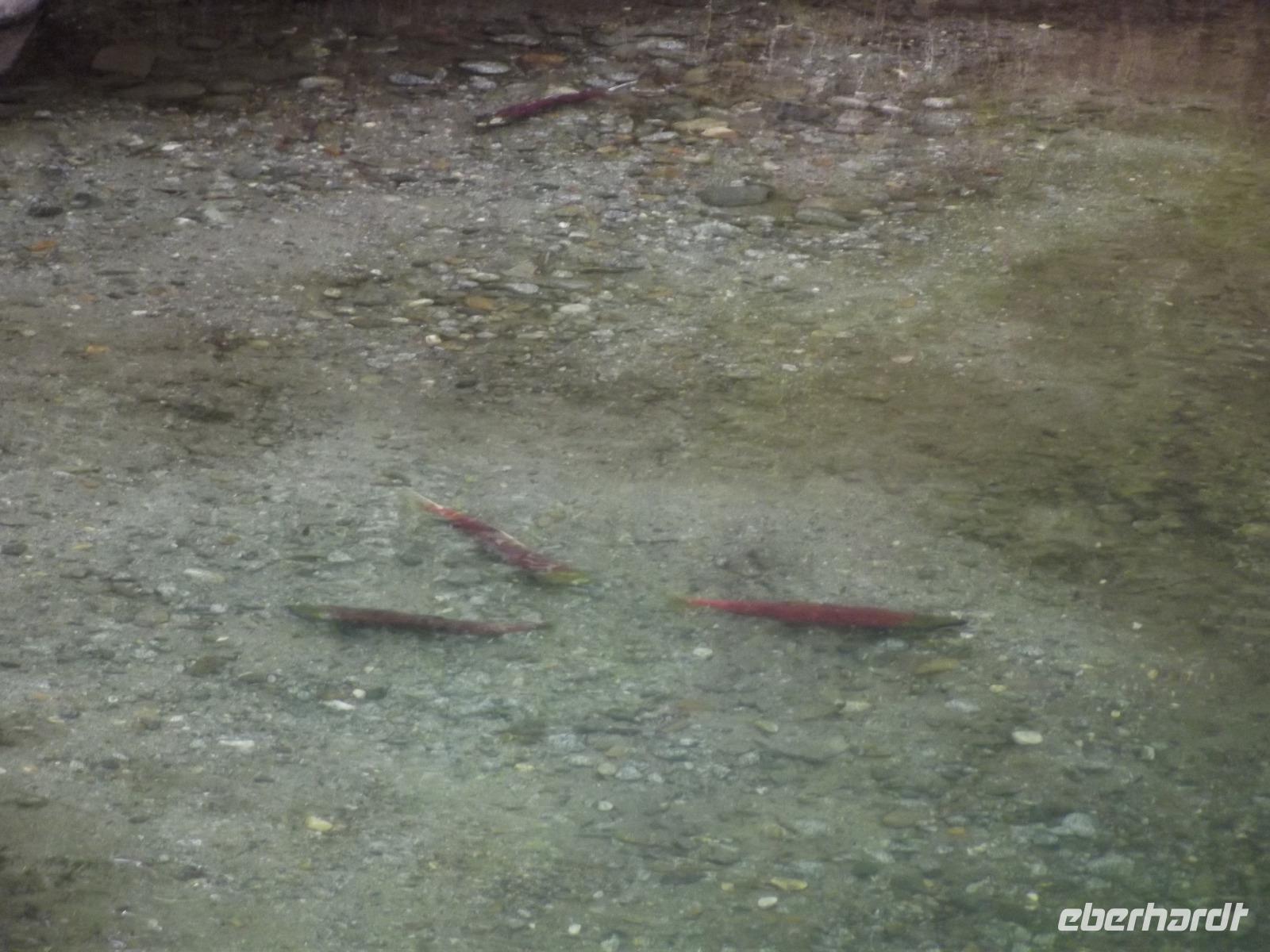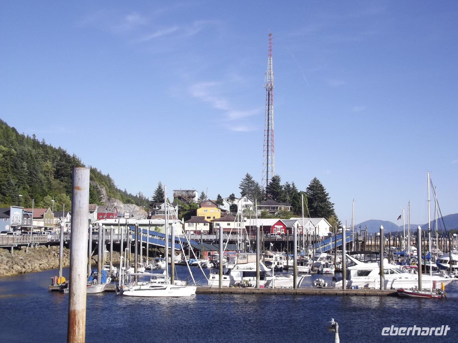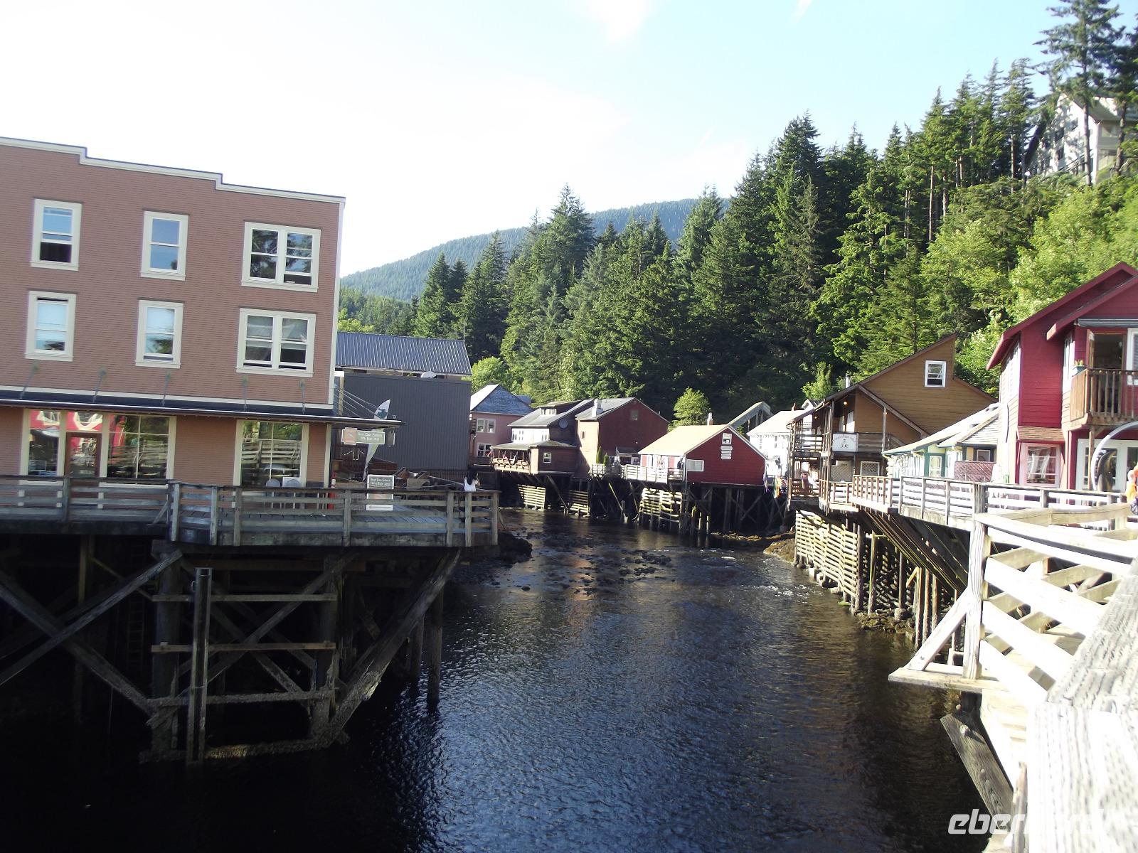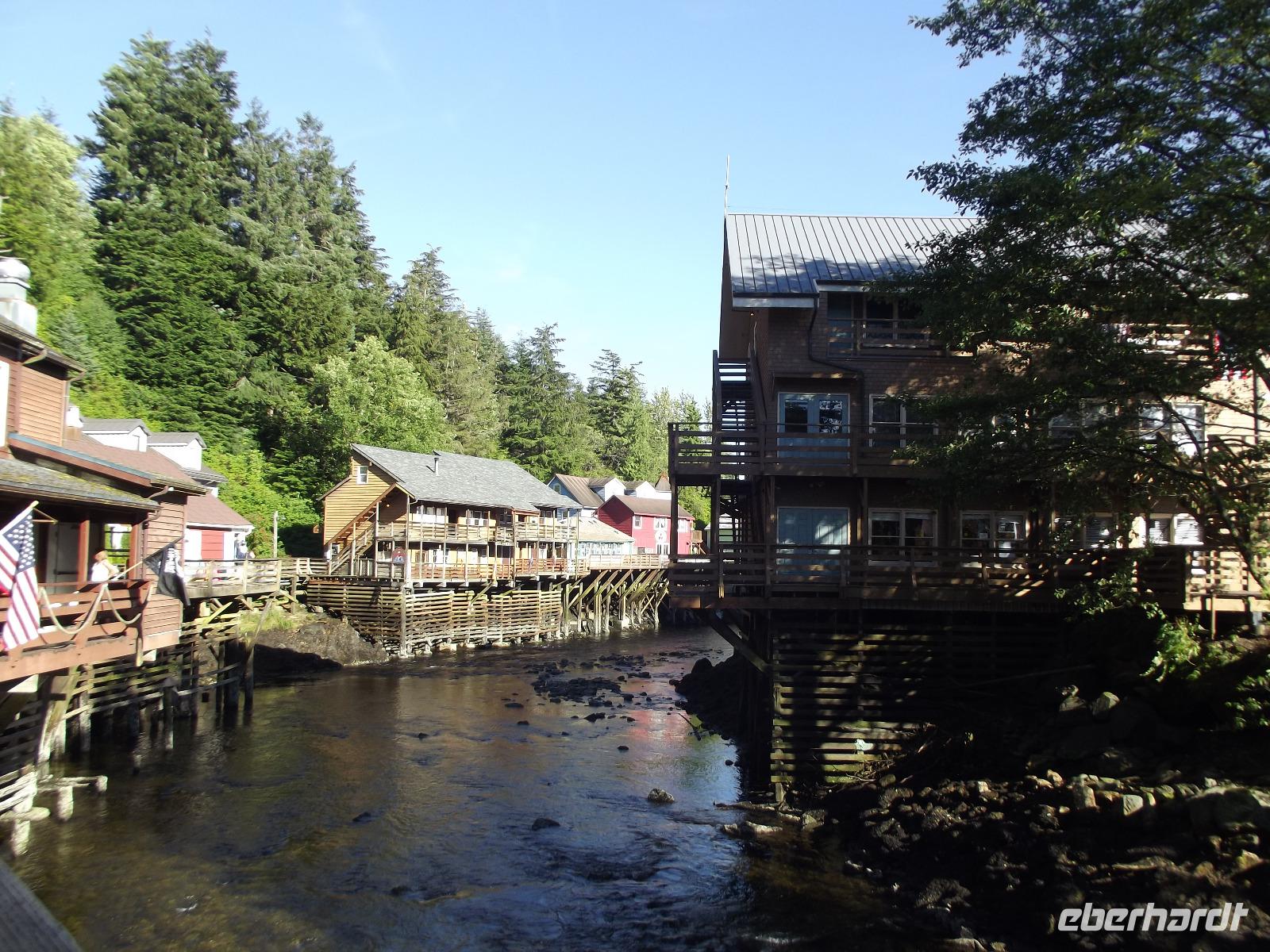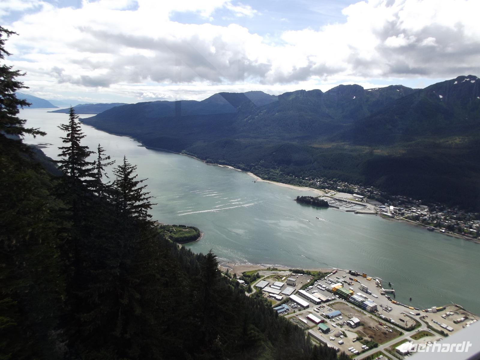 Heute steht unser exklusiver Eberhardt-Ausflug in Juneau auf dem Programm. Nach dem Frühstück holt uns unsere Fahrerin Peggi vom Pier ab - und los geht's! Es zieht uns zunächst zum Mendenhall Gletscher, der königlich zwischen zwei Berghängen sitzt und in einem tollen Blau strahlt. Das Eis an der Gletscherkante ist bis zu 150 Jahre alt und es gibt über 100 Gletscherzungen. Im Besucherzentrum kann man sich über die Entstehung des Gletschers und über die umliegende Tierwelt informieren. Auf dem Gelände befinden sich einige Wanderwege, die sich durch die Natur schlängeln. Die gefüllten Lachsbäche und das platt gedrückte Gras lässt stark vermuten, dass die Bären nicht weit sind, aber trotz unserer Ausdauer haben wir leider kein Glück. Der rote, springende Lachs ist allerdings genauso beeindruckend. Um mehr über den Lachs zu lernen, fahren wir zu einer naheliegenden Aufzuchtstation, wo uns der Mitarbeiter über die Zucht und den Lebenslauf des Fisches erzählt. Wir besuchen eine Hütte, in der sich mehr als eine Million Baby-Lachse tummeln und beim Heraustreten aus der Hütte, können wir unseren Augen kaum glauben: da schwimmen Seehunde um die Fischbecken und lassen es sich gut gehen. Unsere Fahrerin Peggi möchte die Zeit noch nutzen und macht eine kleine Stadtrundfahrt mit der Gruppe bis hin zur Mount Robert Tramway - eine der steilsten Pendelbahnen der Welt, die wir natürlich auch hochfahren. Von oben hat man einen fantastischen Blick auf die Kreuzfahrtschiffe und den Hafen. Auf der Fahrt nach unten sehen wir, wie Weißkopfseeadler um die Gondel kreisen und uns willkommen heißen. Der restliche Tag steht zur freien Verfügung und viele bummeln noch durch Juneau, bis wir uns bei Abendessen wiedertreffen.