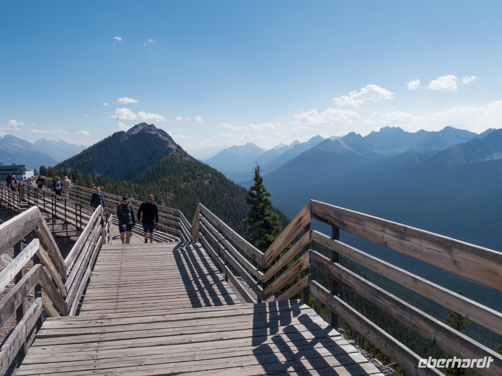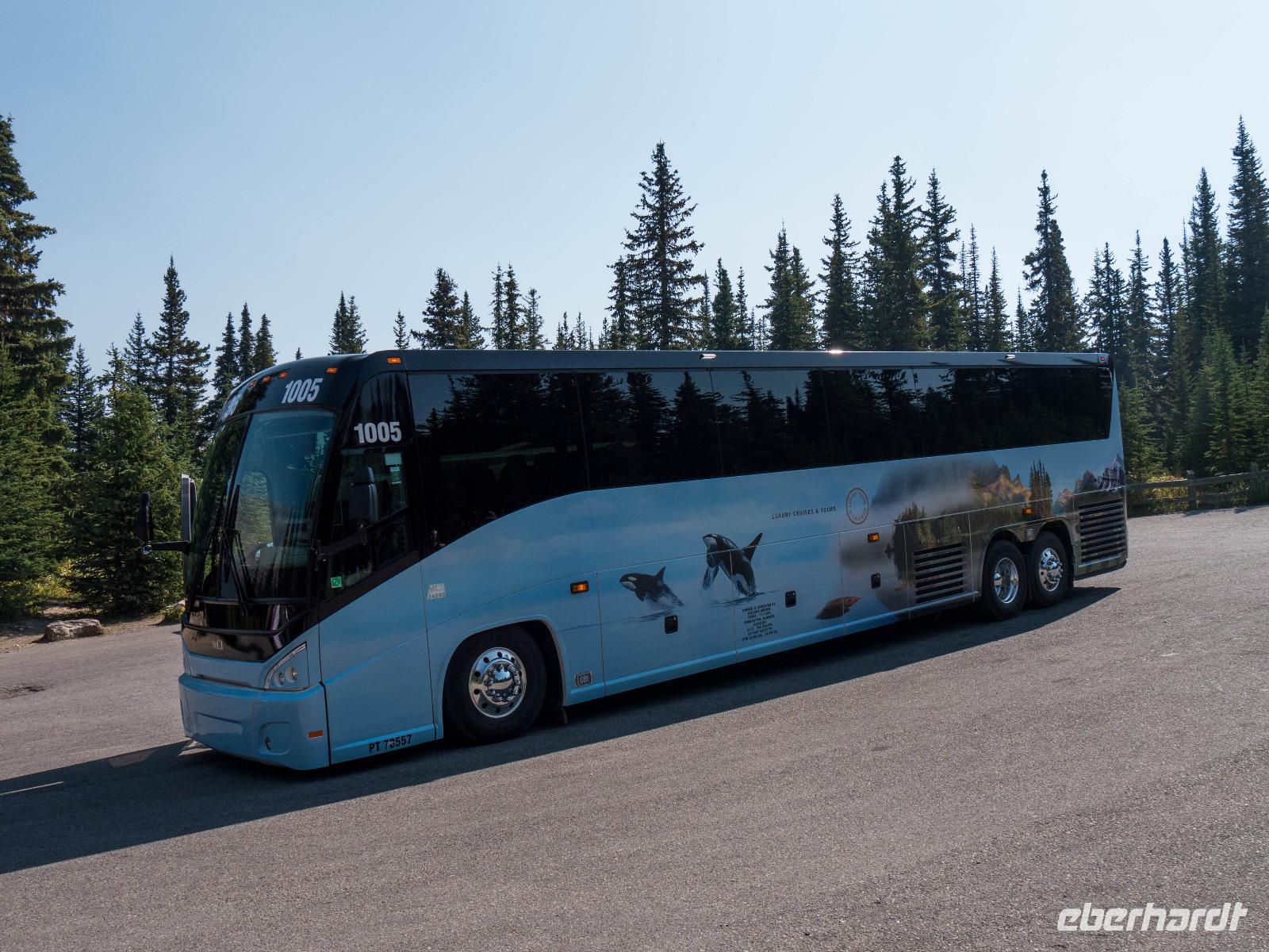 Nachdem nun auch unsere Koffer und unser Bus eingetroffen sind, begeben wir uns gemeinsam mit unserem örtlichen Reiseleiter Al auf Entdeckungstour durch Calgary. Mitten in der Provinz Albertas befindet sich die Hauptstadt der kanadischen Ölindustrie und dementsprechend ein modernes Zentrum mit Hochhäusern aus Stahl und Glas. Wie kaum eine andere Stadt brachte der wirtschaftliche Boom der 60er/70er Jahre einen enormen Bevölkerungszuwachs mit sich. Seinen Ursprung fand die Stadt am Fort Calgary, wo heutzutage die Grundrisse des Forts nachempfunden sind und die Statue des Colonel James MacLeod thront. Calgary ist immer noch bekannt als die "Cowtown", was an die früheren Viehzüchtertage erinnert. Die Cowboy und Pferdeskulpturen "By the Banks of the Bow" spiegeln die Bedeutung der Stampede früher, heute und in Zukunft wider. Wahrzeichen Calgarys ist das sattelförmige Stadion Olympic Saddle Dome, das anlässlich der Winterolympiade 1988 erbaut wurde und heute Schauplatz der alljährlichen Calgary Stampede ist, einem riesigen Volksfest und Wildwestspektakel. Unser nächster Stopp ist der Olympische Platz im Herzen der Stadt, wo zum heutigen Labour Day (dem Tag der Arbeit) Livemusik gespielt wird und sich viele Einheimische tummeln. Zur Winterolympiade 1988 wurde unsere Eisprinzessin Katarina Witt hier mit olympischen Gold geehrt! Bevor wir Calgary verlassen halten wir noch am Canada Olympic Park, dem Austragungsort der olympischen Winterspiele. Calgary liegt am Ende des Vorgebirges, geprägt durch Ranches und Landwirtschaft; Richtung Osten breitet sich die Prärie aus und im Westen die Rocky Mountains, die bei Banff ca. 3.000 Meter hoch sind. Für uns heißt es also "Go West" und schon bald können wir in der Ferne die schneebedeckten Gipfel der Rockies erblicken. In Banff steuern wir zugleich die Gondelstation zum Sulphur Mountain an, die uns auf 2.285 Meter Höhe bringt. Wir haben unglaubliches Glück mit dem Wetter und damit einen fantastischen 360° Panoramablick auf Banff und das Bow Valley mit den umliegenden Bergen und Wäldern. Einen besseren Auftakt unserer Kanada-Rundreise kann es wohl kaum geben! Banff selbst bietet als touristisches Zentrum des Nationalparks allerlei Geschäfte, Restaurants und Cafés. Die Straßen, über die es sich zu bummeln lohnt, sind nach den heimischen Tieren Caribou, Moose oder Wolf benannt.