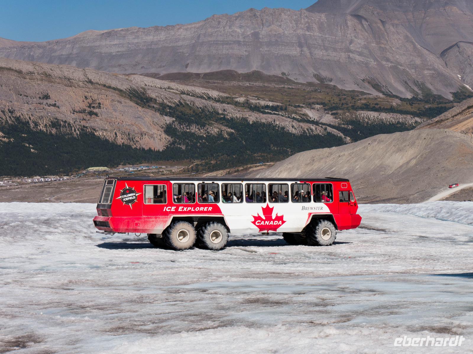 Auf Schritt auf Tritt jagt ein Highlight heute das nächste. Als "Icefields Parkway" führt die "Straße der Gletscher" zwischen den Nationalparks Banff und Jasper mitten durch die Rockies und gilt damit als die schönste Panoramaroute West-Kanadas! Wir fahren zunächst auf dem Trans-Canada Highway durch das Tal des Flusses Bow vorbei am Castle Mountain durch die eindrucksvolle Bergwelt der Rocky Mountains. Unser erster Stopp gilt dem Gletschersee Moraine Lake, der von schroffen Gipfeln und tiefen Wäldern umgeben ist. Weiter geht es zum prunkvollen Château Lake Louise, am gleichnamigen See gelegen. Der herrliche Garten des ursprünglich 1890 von der Eisenbahn erbauten Hotels, zaubert Farbtupfer in die Landschaft. Der See schimmert blaugrün in der Sonne und der Victoria-Gletscher bahnt sich seinen Weg von den gewaltigen Berghängen hinab. Wir verlassen den Highway in Richtung Nordwesten und stoppen am Bow Lake, wo sich die grandiose Landschaft heute spektakulär spiegelt. Ein See schöner als der andere... und nun kommt noch der Peyto Lake! Vom Aussichtspunkt blicken wir staunend auf den intensiv türkis leuchtenden "Bilderbuch-See", umgebem von majestätischen Bergen und tiefgrünen Fichtenwäldern. Die Sedimente im Schmelzwasser der Gletscher geben den Seen diese charakteristische Färbung. Nach der Einfahrt in den Jasper-Nationalpark gelangen wir zum Icefield-Centre. Hier erwartet uns ein besonderes Erlebnis: die Fahrt auf den Athabaska-Gletscher! Mit einem speziellen, eistauglichen Bus fahren wir auf den Gletscher und können hier tolle Erinnerungsfotos machen! Insgesamt 6 Gletscher werden vom gigantischen Columbia Icefield gespeist, das 250 qkm groß ist (doppelt so groß wie Vancouver)! Nach einem kurzen Fotostopp am Athabaska Wasserfall erreichen wir am Abend unsere idyllisch gelegene Lodge. Hier kann man sich inmitten herrlicher Natur so richtig wohl fühlen und zum Abendessen werden uns sogar leckere Elchsteaks serviert!
