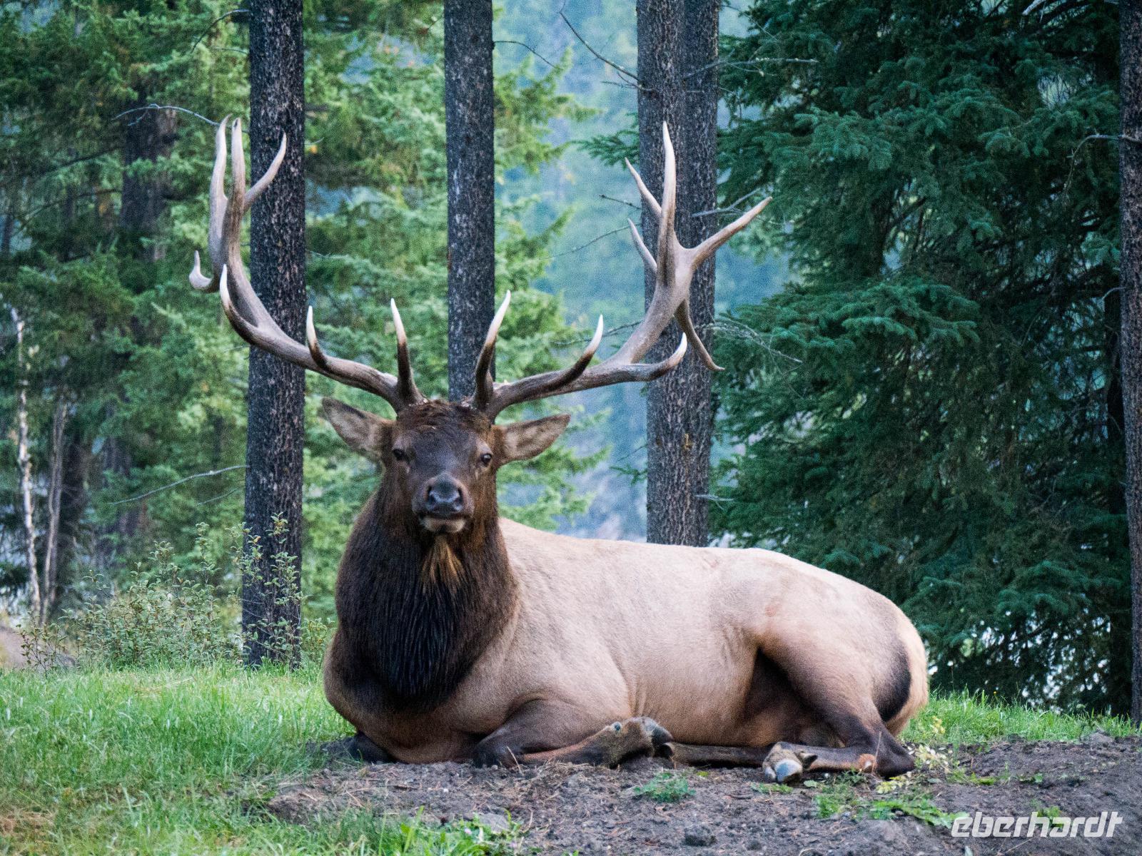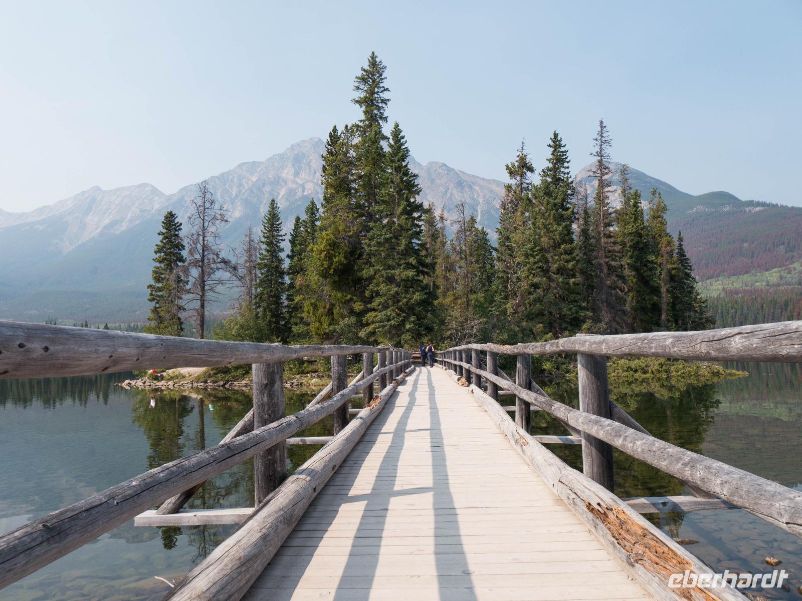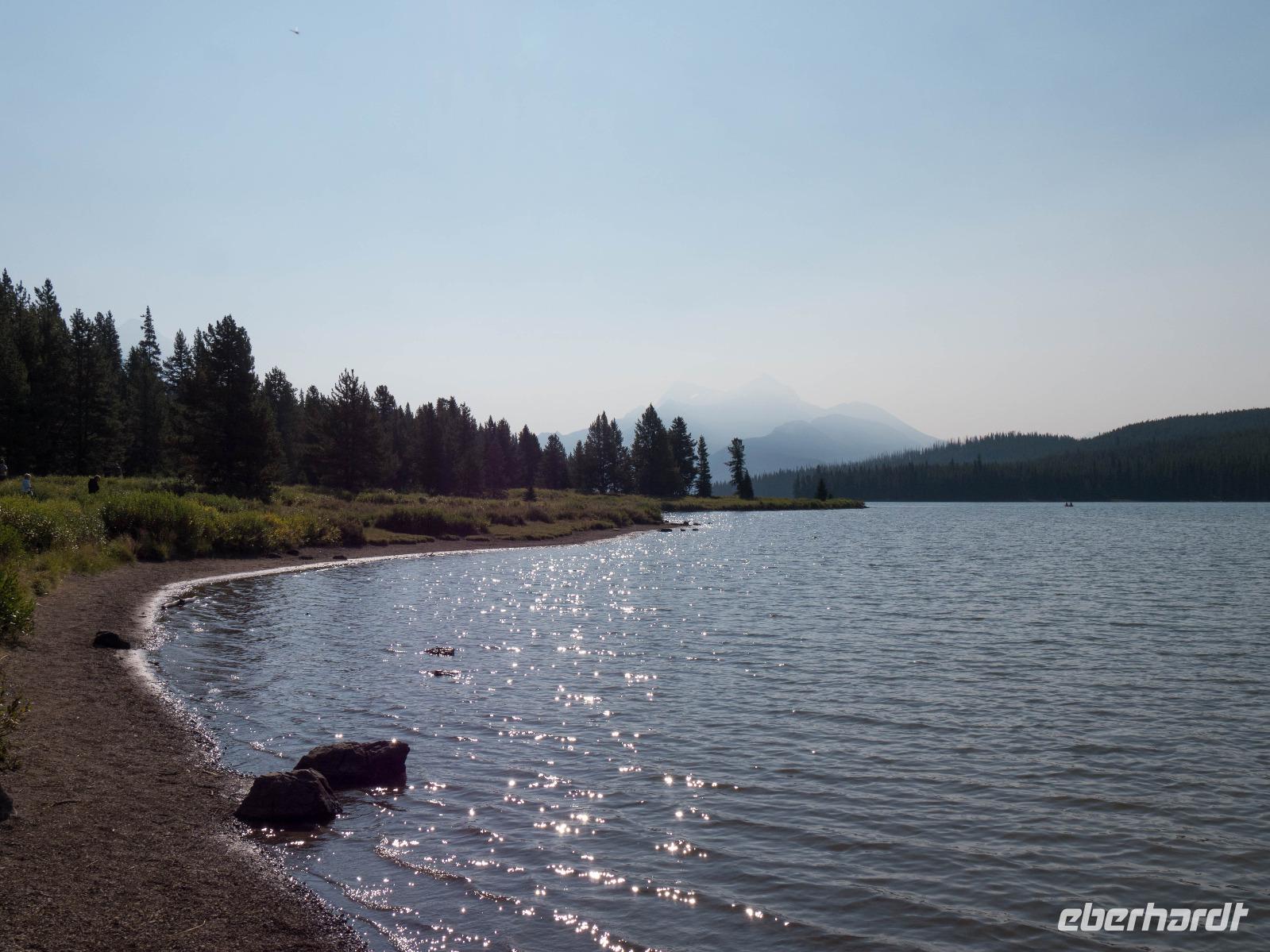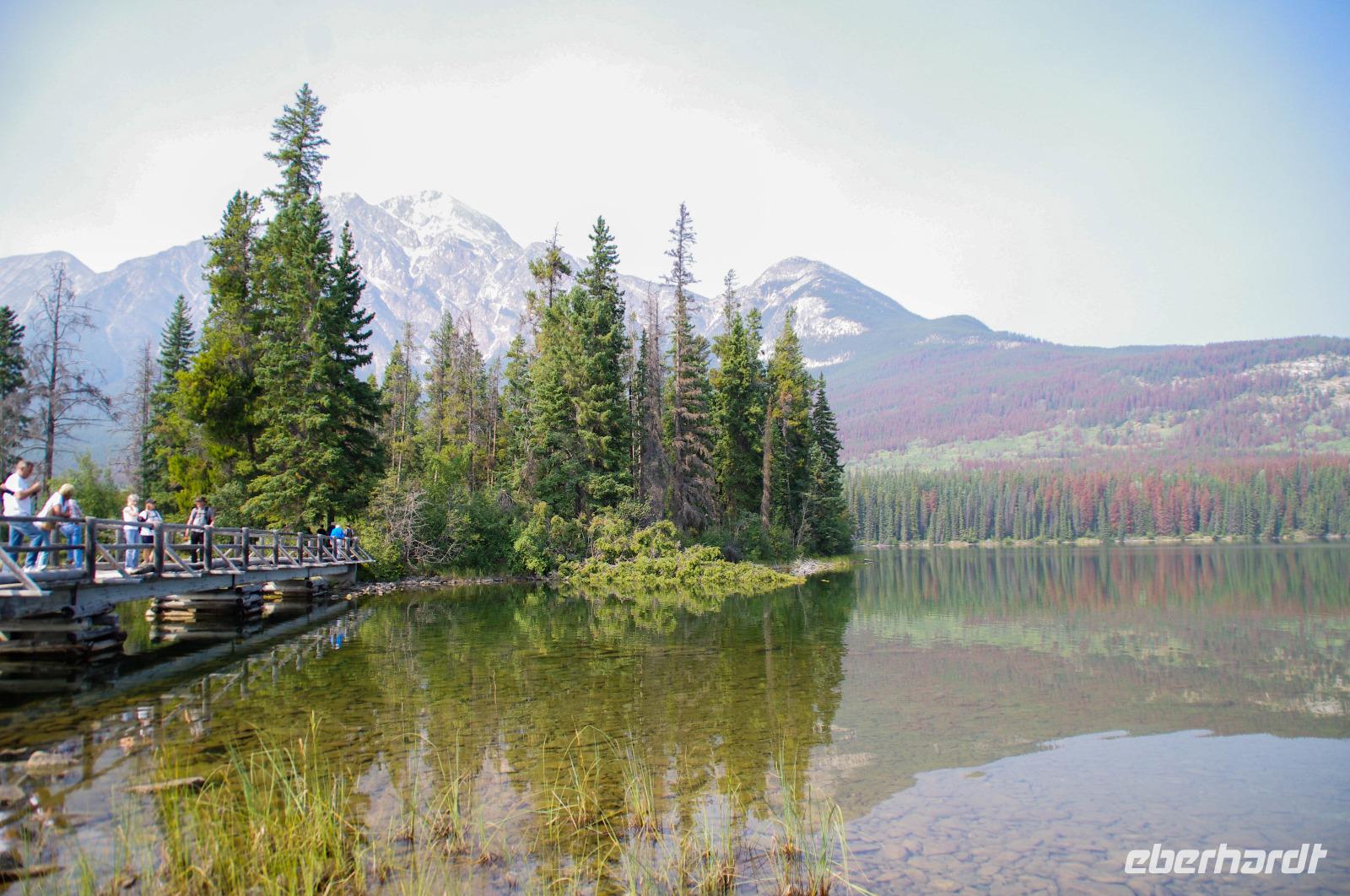 Am Morgen besuchen Hirsche unsere Lodge und schauen fast schon zum Fenster hinein! So geht der Tag gut los und auch das Frühstück lässt keine Wünsche offen. Über die Maligne Lake Road fahren wir ins Maligne-Tal. Namensgeber ist der "böse Fluss" aus dem Französischen. Am Maligne Canyon machen wir einen kurzen Spaziergang und fahren weiter zum Medicine Lake. Kanada hat einen sehr trockenen Sommer hinter sich, der leider viele Waldbrände begünstigte. Über größere Flächen sehen wir leider auch immer mal wieder dessen Folgen und an einigen Tagen liegt ein Schleier aus Rauch in der Luft, der die Sicht beeinträchtigt. Dennoch haben wir auch heute einen sonnigen und sommerlichen Tag mit Temperaturen bis 28 Grad - man mag es kaum glauben... im September in Kanada! Am Maligne Lake besteht nun die Möglichkeit für eine Bootsfahrt zur Mystery Island oder zum Kajak fahren oder für eine leichte Wanderung am See-Ufer. Auf der Rückfahrt nach Jasper legen wir noch einen Halt am Pyramidensee ein und haben dann etwas Freizeit in der Kleinstadt.