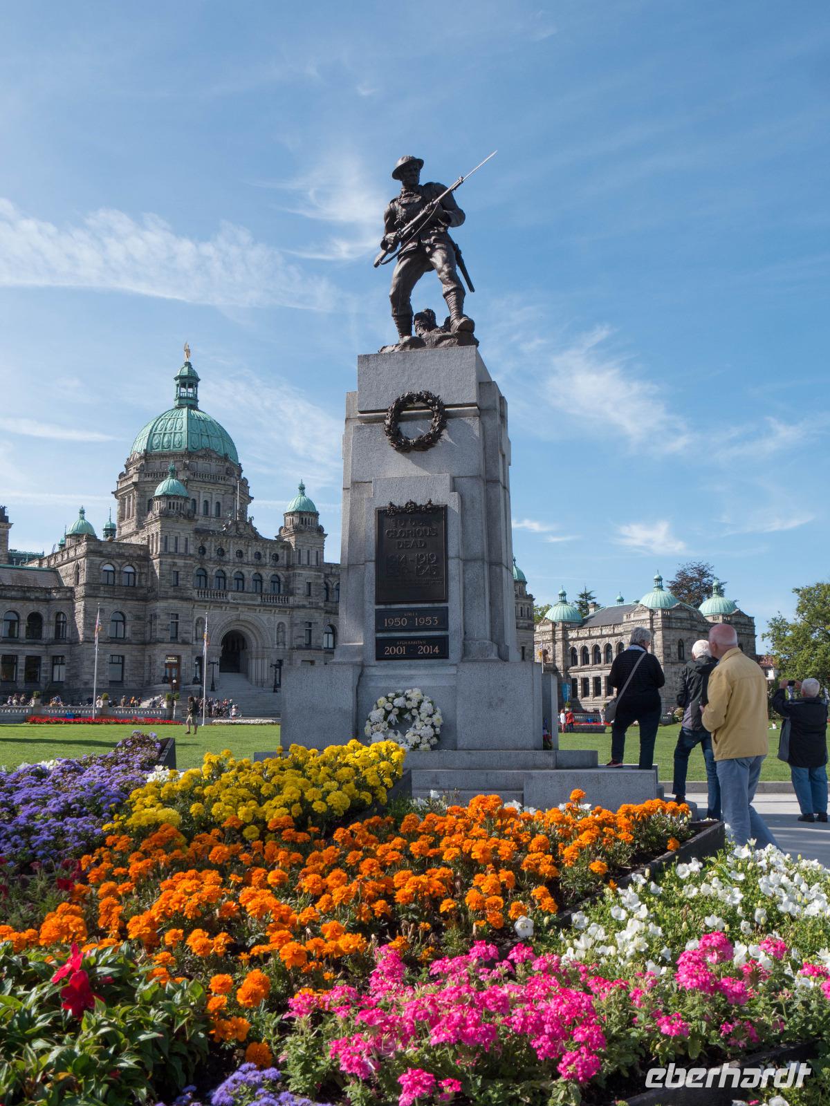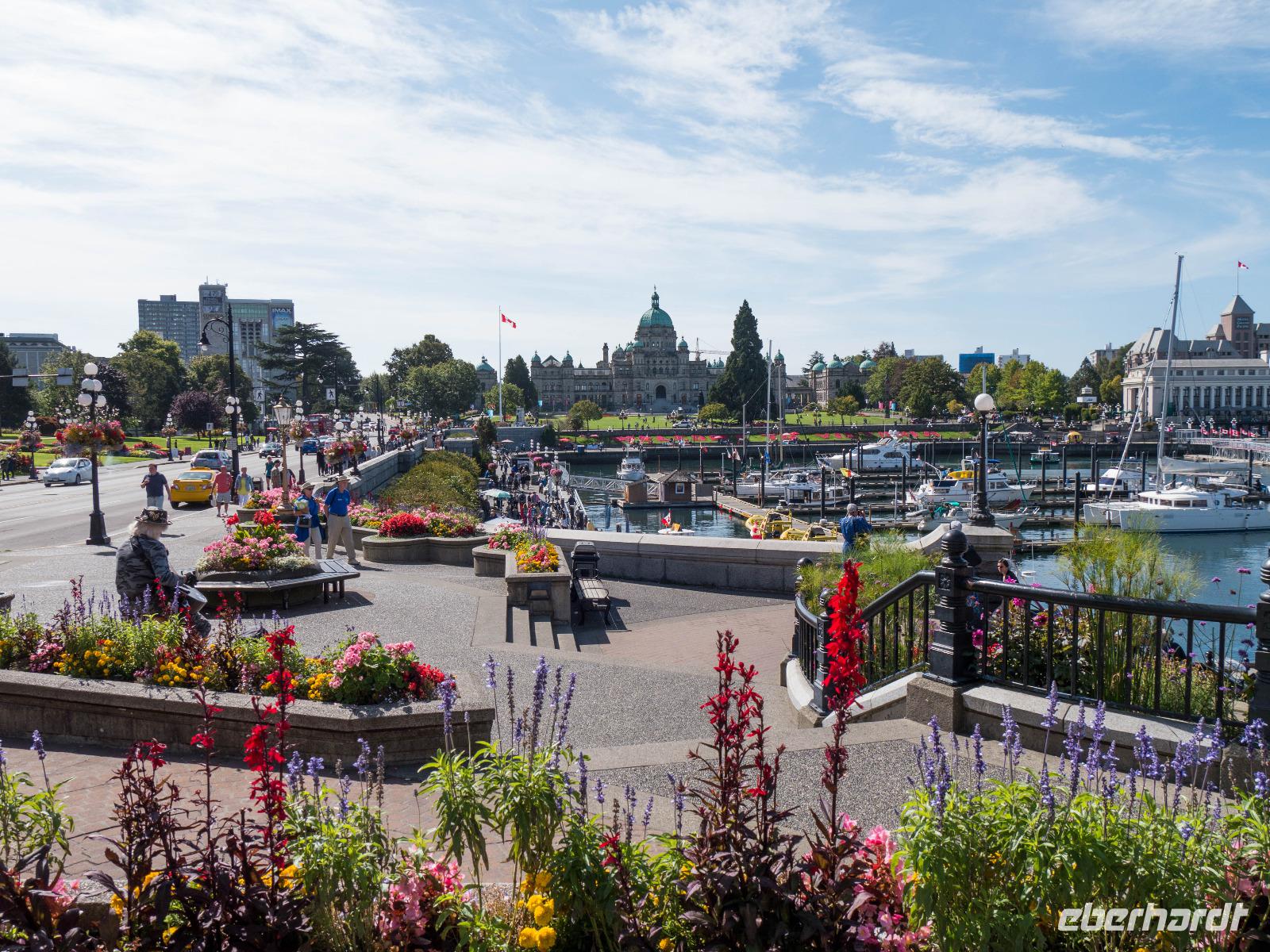 Heute klingelt schon sehr früh der Wecker, denn wir dürfen nicht die Fähre nach Vancouver Island verpassen! Schon die Überfahrt auf die wohl schönste Insel Nordamerikas ist ein Vergnügen und erinnert mich an die zauberhafte Schärenlandschaft vor Stockholm: kleine bewaldetet Inseln, idyllische Buchten und vereinzelte Holzhäuschen. Die Hauptstadt Victoria begeistert uns mit britischem Ambiente: das ehrwürdige Parlamentsgebäude mit der gepflegten Rasenfläche, Pferdekutschen, der malerische Hafen mit der blumengeschmückten Promenade und nicht zu vergessen das schlossartige Fairmont Empress Hotel. Hier möchte man am liebsten länger verweilen, aaaaber wir haben ja noch viel vor... Wir fahren zur Meile Null des Trans Canada Highway - 7.000 Kilometer führt er von hier quer durch Kanada. Weiterhin ist hier Terry Fox ein Denkmal gesetzt, dem mit seinem "Marathon der Hoffnung" große Ehre gebührt. Vorbei an schicken Villen mit gepflegten Gärten fahren wir entlang des Scenic Marine Drive zur Oak Bay Marina und beobachten dort putzige Robben bevor wir schließlich zu den Butchart Gardens gelangen. Hier erwartet uns Gartenkunst und Blütenpracht vom Feinsten! Das aus einem alten Steinbruch entstandene Areal ist nicht nur ein Paradies für Gartenliebhaber - jederman erfreut sich hier an den herrlichen Pflanzen. Mit der Fähre fahren wir am späten Nachmittag zurück nach Vancouver und nun ist schon das Ende unserer Rundreise durch Kanada gekommen. Zum Abschluss genehmigen wir uns nach dem Abendessen noch einen Drink in der Cloud 9 Bar. Von der 42. Etage bietet sich uns ein toller Blick auf das nächtliche Vancouver.
