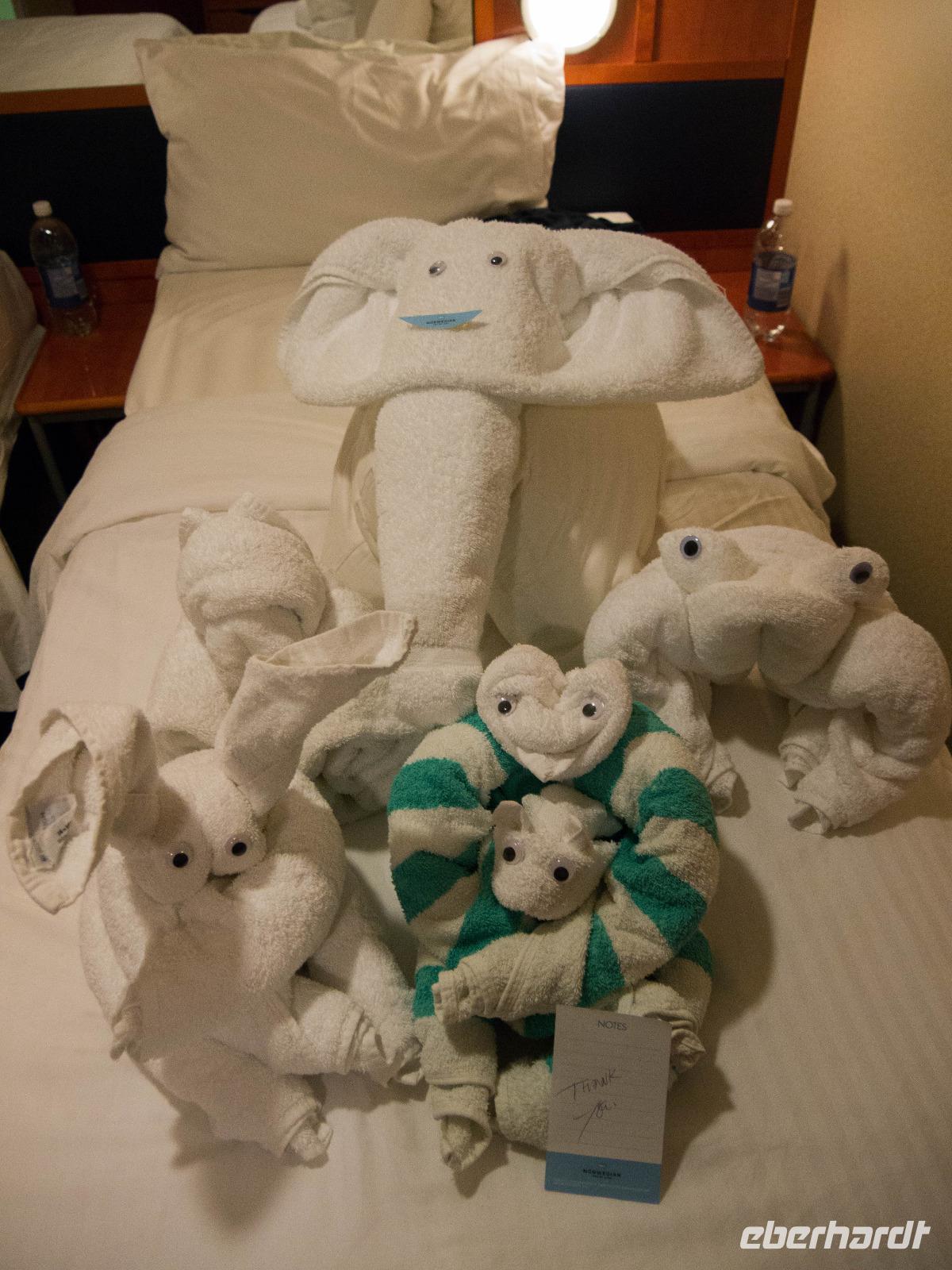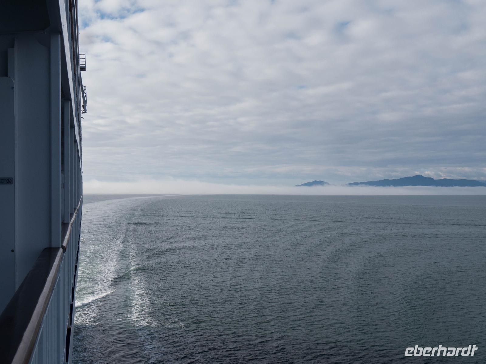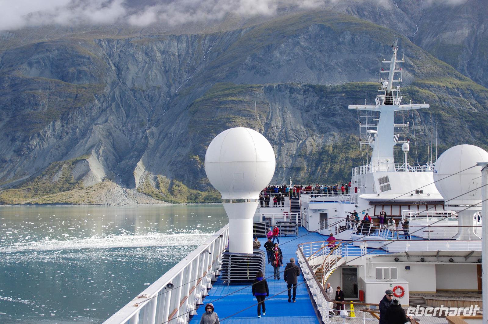 Da heute ein sonniger Tag ist, machen wir auf dem Weg zum Hafen noch einmal einen Abstecher zu den Sehenswürdigkeiten von Vancouver. Dann ist es Zeit, uns von unserem Reiseleiter Al zu verabschieden und zu unserem zweiten Reiseabschnitt aufzubrechen. Der Check In auf die Norwegian Sun geht relativ fix und so sind wir pünktlich zum Mittag an Bord unseres schwimmenden Hotels. Bald sind auch unsere Kabinen bezugsfertig und wir können uns für die einwöchige Alaska-Kreuzfahrt einrichten. Nach der obligatorischen Seenotrettungsübung heißt es um 16 Uhr "Leinen los!" und wir verlassen den Hafen von Vancouver. Mit einem erfrischenden Drink in der Hand und der Sonne im Gesicht lassen wir die Skyline Vancouvers hinter uns, durchqueren die Lions Gate Brücke und lassen die umliegenden Inseln und Buchten an uns vorbei ziehen. Schiff ahoi!