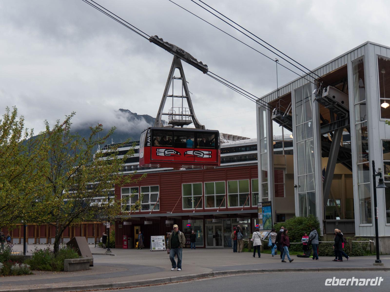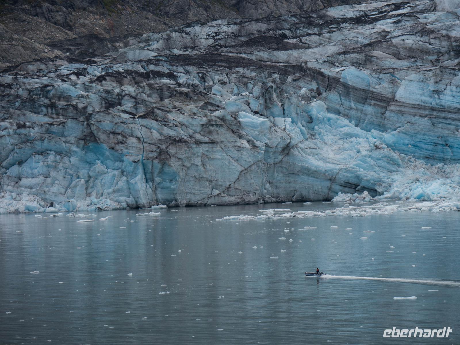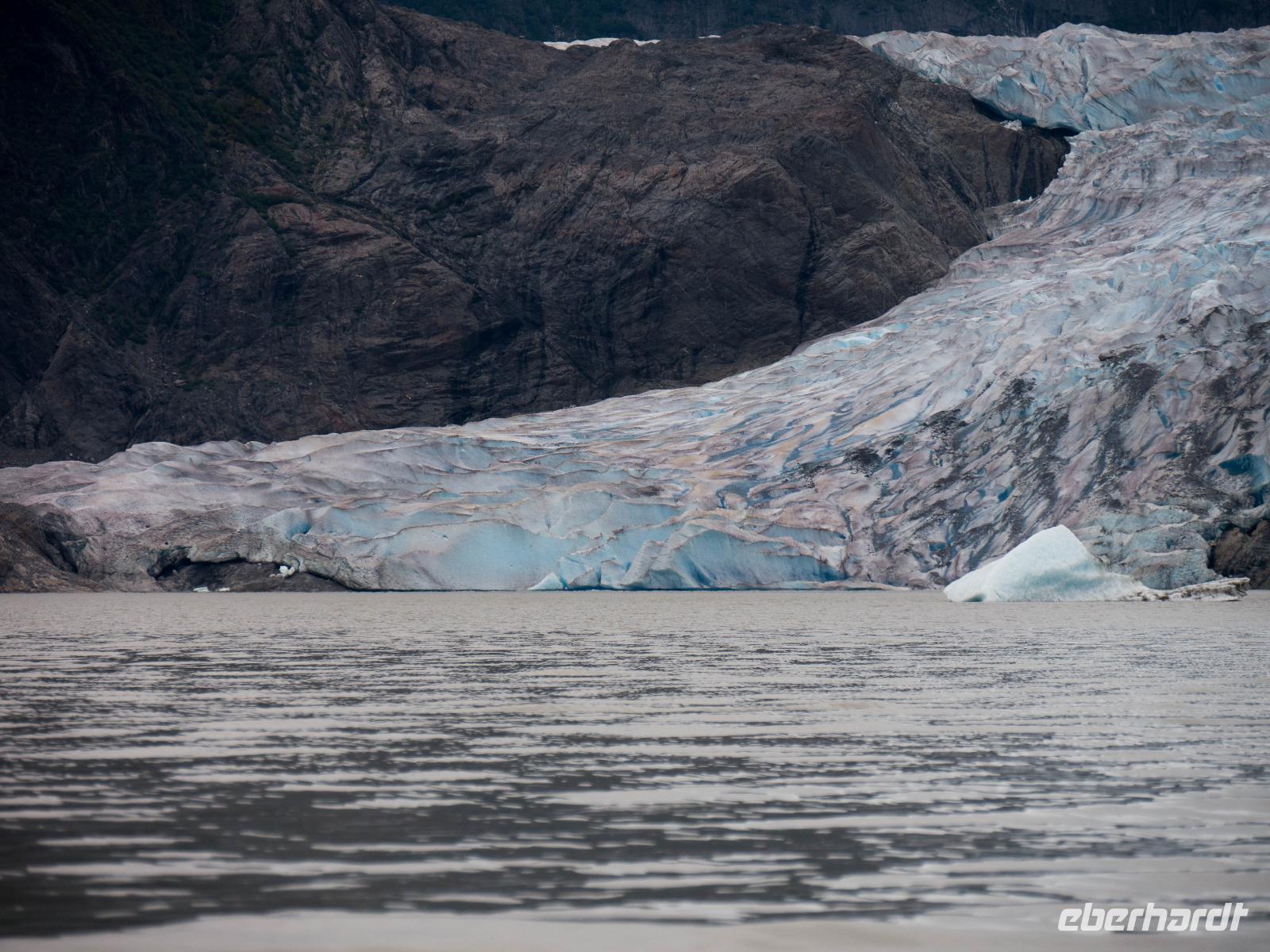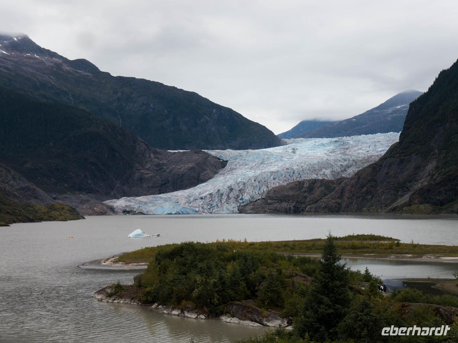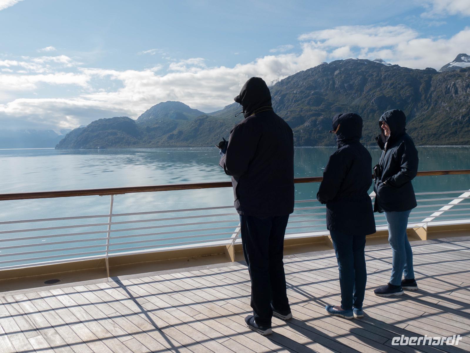 Willkommen in Alaska! Der größte Bundesstaat der USA (ca. 4x so groß wie Deutschland) ist gleichzeitig der am dünnsten besiedelte (für die Statistik-Freunde 0,4 EW pro km²) - hier gibt es mehr Tiere als Menschen, mehr Berge als Gebäude und mehr Gletscher als Verkehrsampeln. Die Hauptstadt Juneau ist nur über den Wasserweg oder aus der Luft zu erreichen, nicht über Straßen! Unser Weg führte uns mit der Norwegian Sun durch die wunderbare Inside Passage: eine 800 Kilometer lange, dicht bewaldete Fjord- und Insellandschaft. Und nun befinden wir uns - gemeinsam mit 3 weiteren Kreuzfahrtschiffen - im Herzen des Tongass National Forest, dem größten gemäßigten Regenwald Nordamerikas. Etwa 20 Kilometer von Juneau entfernt befindet sich der Mendenhall Gletscher - vor dieser herrlichen Kulisse ist endlich Gelegenheit für ein Eberhardt-Gruppenfoto. Seinen Ursprung hat der Mendenhall Gletscher in dem riesigen Juneau Icefield. Das Meeresklima in Verbindung mit dem Küstengebirge schafft ideale Bedingungen für eine Vergletscherung - der ewige Kampf zwischen Neuschnee und Schneeschmelze. Im Anschluss besuchen wir noch eine Lachs-Aufzuchtstation und erfahren viel Wissenswertes über die Besonderheiten und den Lebenszyklus des beliebten Speisefisches. Der Lachs wächst im Süßwasser heran und prägt sich in den ersten Lebensmonaten seine Umgebung bzw. die mineralische Zusammensetzung des Wassers ein, so dass er zur Laichwanderung exakt in seine "Kinderstube" zurück findet. Durch Osmoseregulation stellt sich der Lachs nach seiner Reise vom Fluss (Süßwasser) ins Meer auf Salzwasser um und wächst hier heran, bis er seinem Fortpflanzungstrieb folgend wieder "nach Hause" schwimmt und dabei viele Hindernisse bewältigt. Es ist nicht verwunderlich, dass Lachs während unserer Reise das ein oder andere Mal auf der Speisekarte steht und die Lachsaufzucht ist im Gegensatz zu vielen anderen Ländern in Alaska verboten. Zum Ende des Ausfluges fahren wir mit der Gondel auf den Hausberg Mount Roberts und haben von der 548 Meter hoch gelegenen Station einen schönen Panoramablick auf Juneau, die Berge, die Bucht und unser Schiff. Erinnerungen an die Pionierzeit Alaskas weckt der Red Dog Saloon mit seiner urigen Einrichtung und Live Musik. Nach einem abschließenden Stadtbummel kehren wir am Abend zurück an Bord.