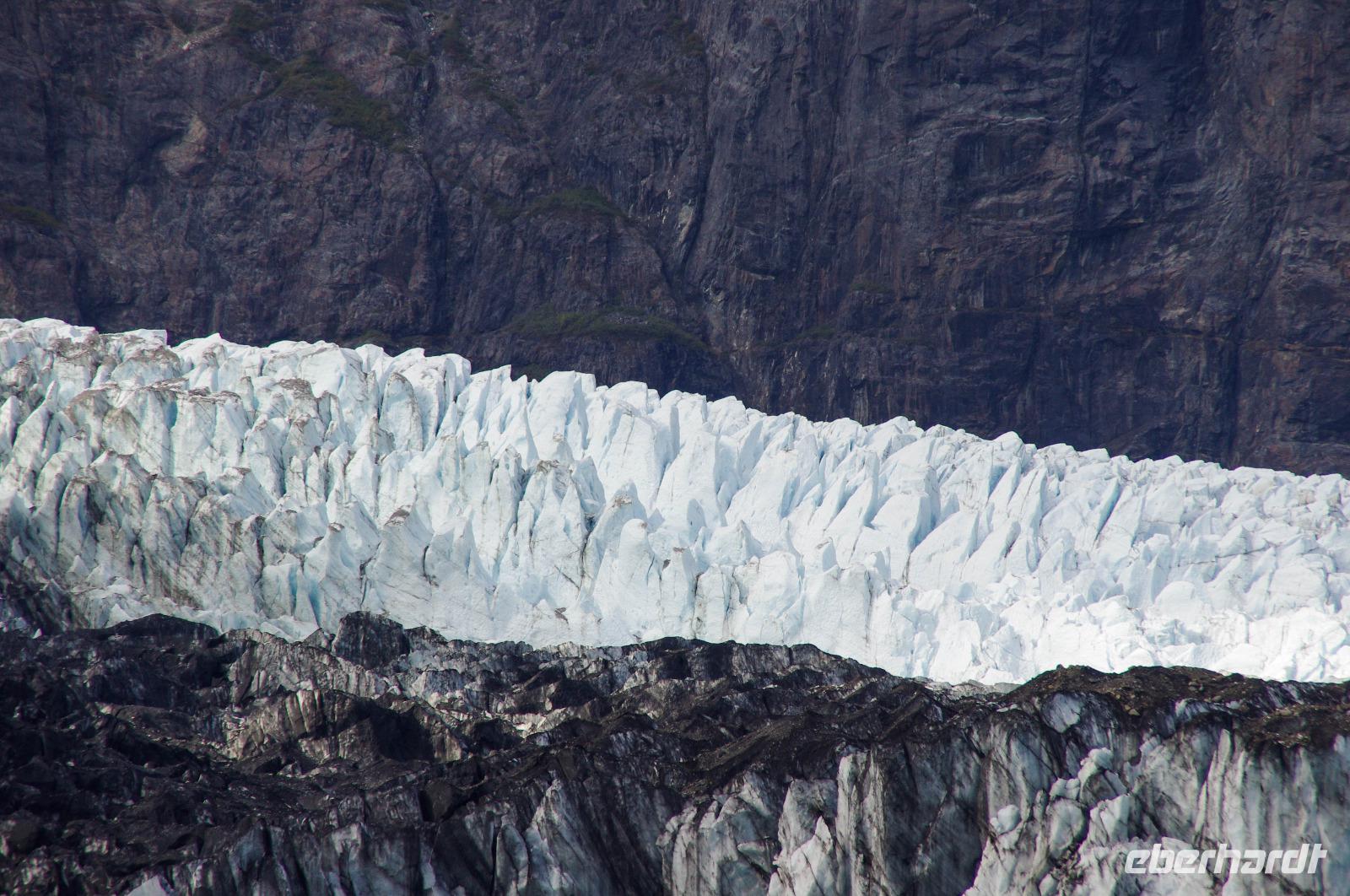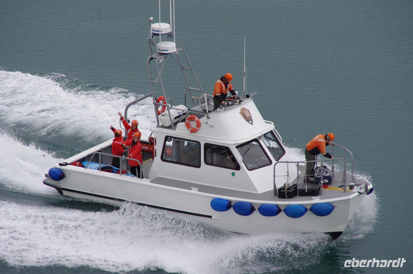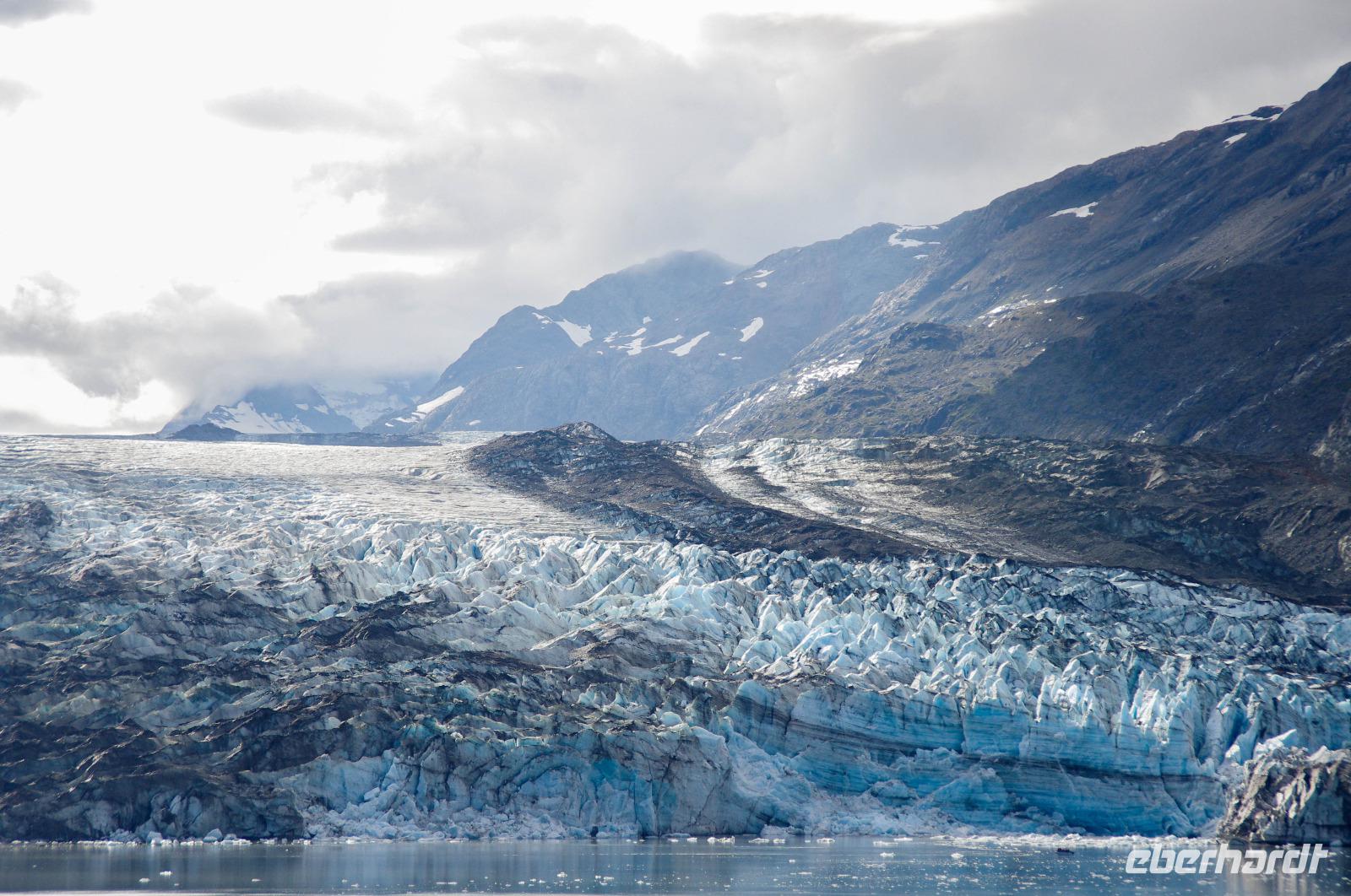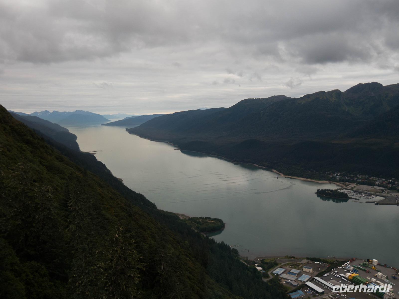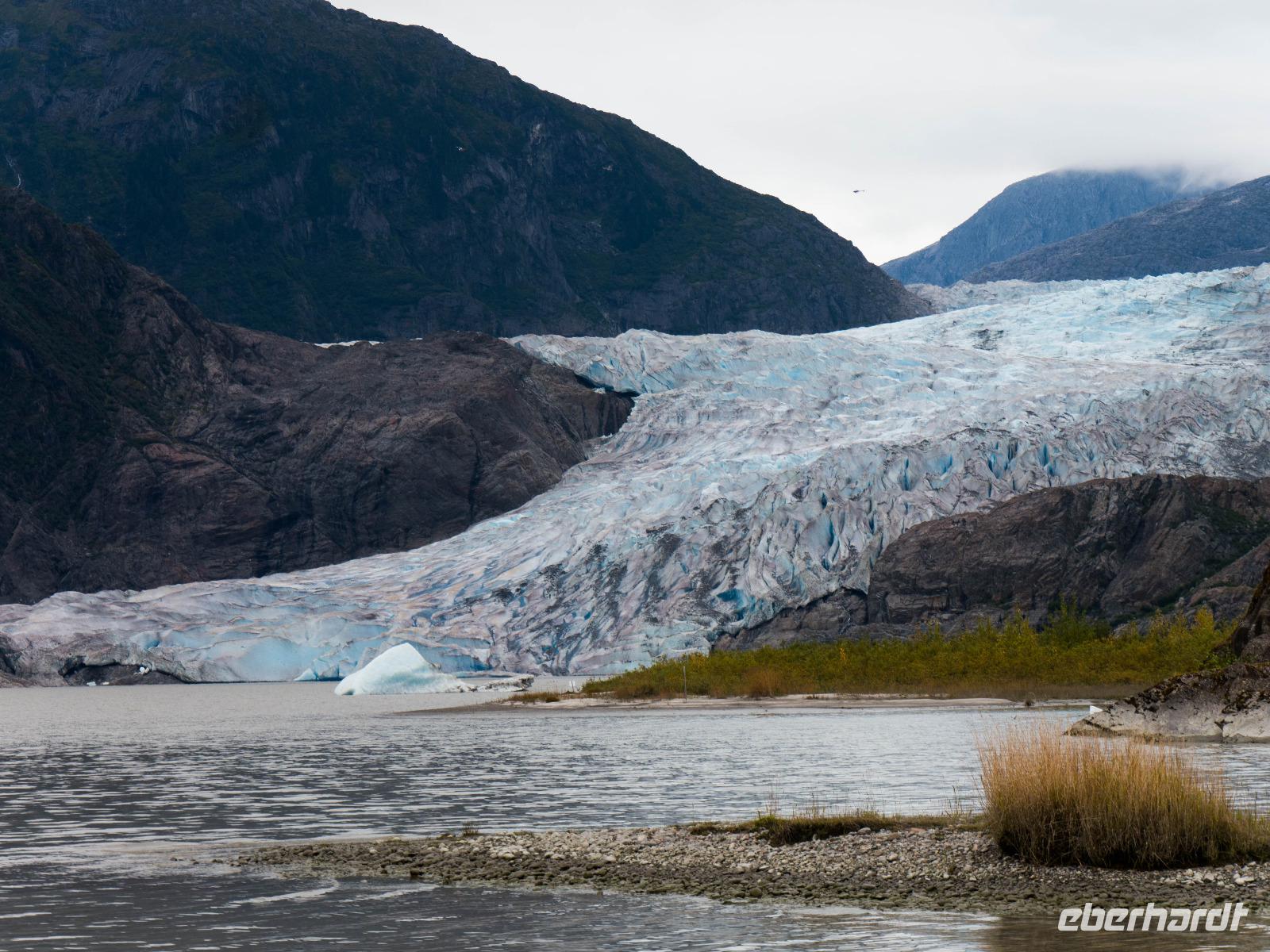 Willkommen in Alaska! Der größte Bundesstaat der USA (ca. 4x so groß wie Deutschland) ist gleichzeitig der am dünnsten besiedelte (für die Statistik-Freunde 0,4 EW pro km²) - hier gibt es mehr Tiere als Menschen, mehr Berge als Gebäude und mehr Gletscher als Verkehrsampeln. Die Hauptstadt Juneau ist nur über den Wasserweg oder aus der Luft zu erreichen, nicht über Straßen! Unser Weg führte uns mit der Norwegian Sun durch die wunderbare Inside Passage: eine 800 Kilometer lange, dicht bewaldete Fjord- und Insellandschaft. Und nun befinden wir uns - gemeinsam mit 3 weiteren Kreuzfahrtschiffen - im Herzen des Tongass National Forest, dem größten gemäßigten Regenwald Nordamerikas. Etwa 20 Kilometer von Juneau entfernt befindet sich der Mendenhall Gletscher - vor dieser herrlichen Kulisse ist endlich Gelegenheit für ein Eberhardt-Gruppenfoto. Seinen Ursprung hat der Mendenhall Gletscher in dem riesigen Juneau Icefield. Das Meeresklima in Verbindung mit dem Küstengebirge schafft ideale Bedingungen für eine Vergletscherung - der ewige Kampf zwischen Neuschnee und Schneeschmelze. Im Anschluss besuchen wir noch eine Lachs-Aufzuchtstation und erfahren viel Wissenswertes über die Besonderheiten und den Lebenszyklus des beliebten Speisefisches. Der Lachs wächst im Süßwasser heran und prägt sich in den ersten Lebensmonaten seine Umgebung bzw. die mineralische Zusammensetzung des Wassers ein, so dass er zur Laichwanderung exakt in seine "Kinderstube" zurück findet. Durch Osmoseregulation stellt sich der Lachs nach seiner Reise vom Fluss (Süßwasser) ins Meer auf Salzwasser um und wächst hier heran, bis er seinem Fortpflanzungstrieb folgend wieder "nach Hause" schwimmt und dabei viele Hindernisse bewältigt. Es ist nicht verwunderlich, dass Lachs während unserer Reise das ein oder andere Mal auf der Speisekarte steht und die Lachsaufzucht ist im Gegensatz zu vielen anderen Ländern in Alaska verboten. Zum Ende des Ausfluges fahren wir mit der Gondel auf den Hausberg Mount Roberts und haben von der 548 Meter hoch gelegenen Station einen schönen Panoramablick auf Juneau, die Berge, die Bucht und unser Schiff. Erinnerungen an die Pionierzeit Alaskas weckt der Red Dog Saloon mit seiner urigen Einrichtung und Live Musik. Nach einem abschließenden Stadtbummel kehren wir am Abend zurück an Bord.