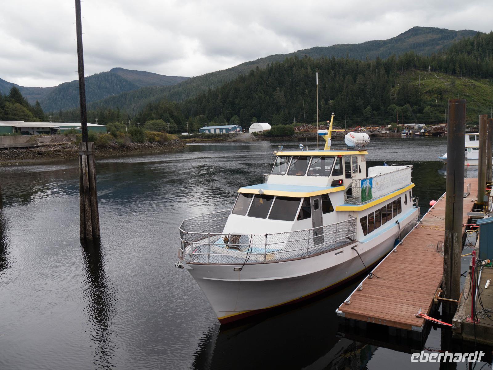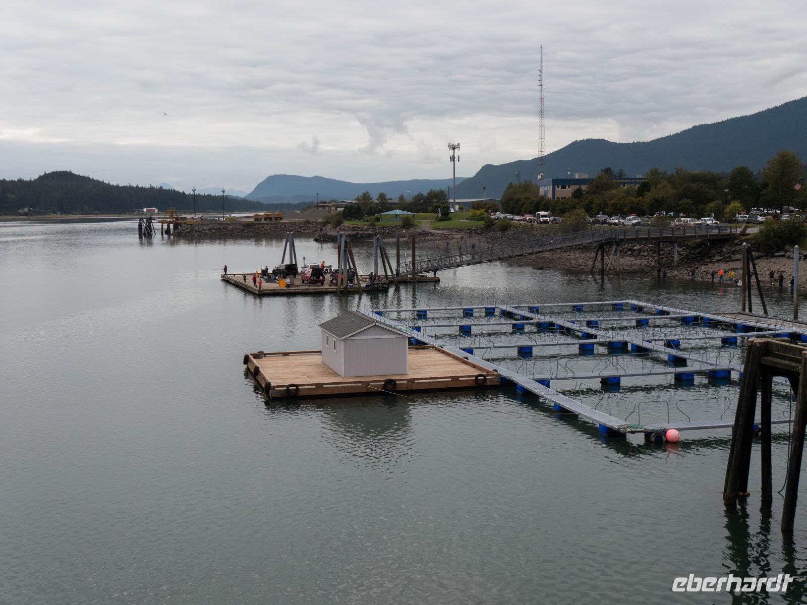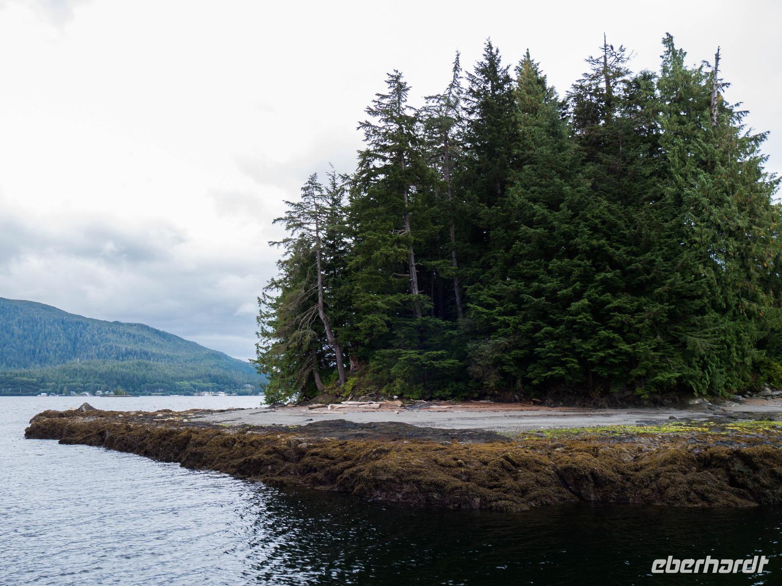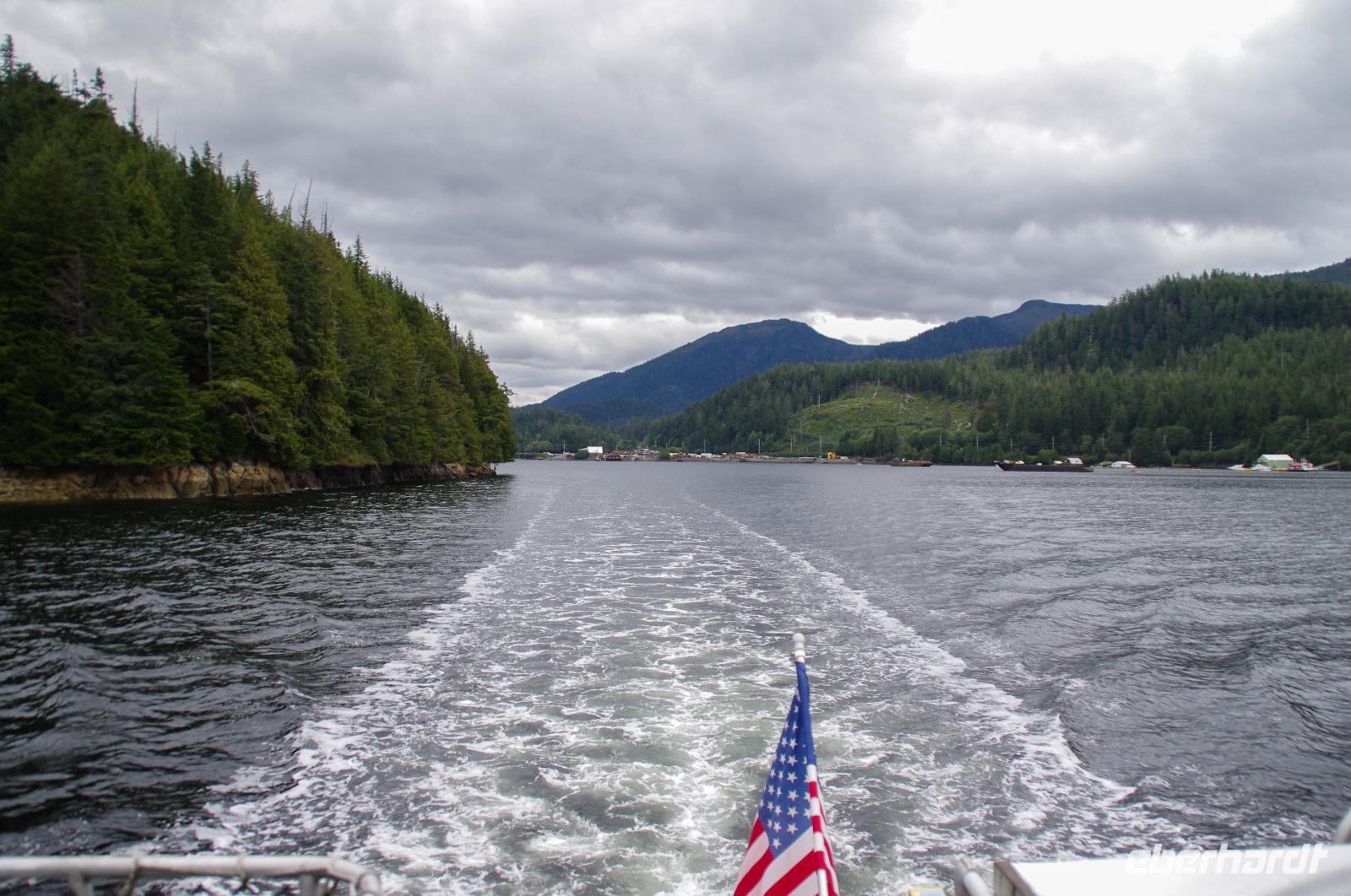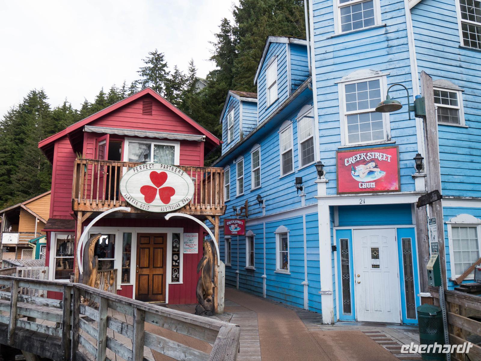 Auch in Ketchikan liegen wir wieder "mitten in der Stadt". Das ehemalige Rotlichtviertel an der Creek Street ist (auch) heute ein attraktives Stadtviertel - nur mit einem anderen Hintergrund ;-)! Die malerischen Holzhäuser stehen auf Pfählen im Wasser und beherbergen heute nette kleine Souvenirgeschäfte. Am Nachmittag begeben wir uns auf den Ausflug "Leuchtturm, Totems und Adler". Der Weißkopfseeadler (Bald Eagle) zählt zu den größten Greifvögeln Nordamerikas und ist der Wappenvogel der USA. Unser Kapitän Bob schippert mit uns die Küste entlang und zeigt uns mehrere Adlernester. Mit dem Fernglas können wir sogar den einen oder anderen Seeadler sowie Robben beobachten.