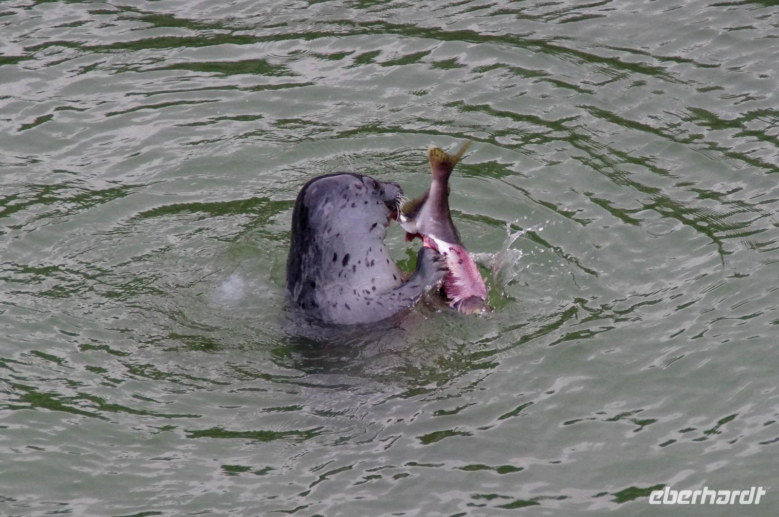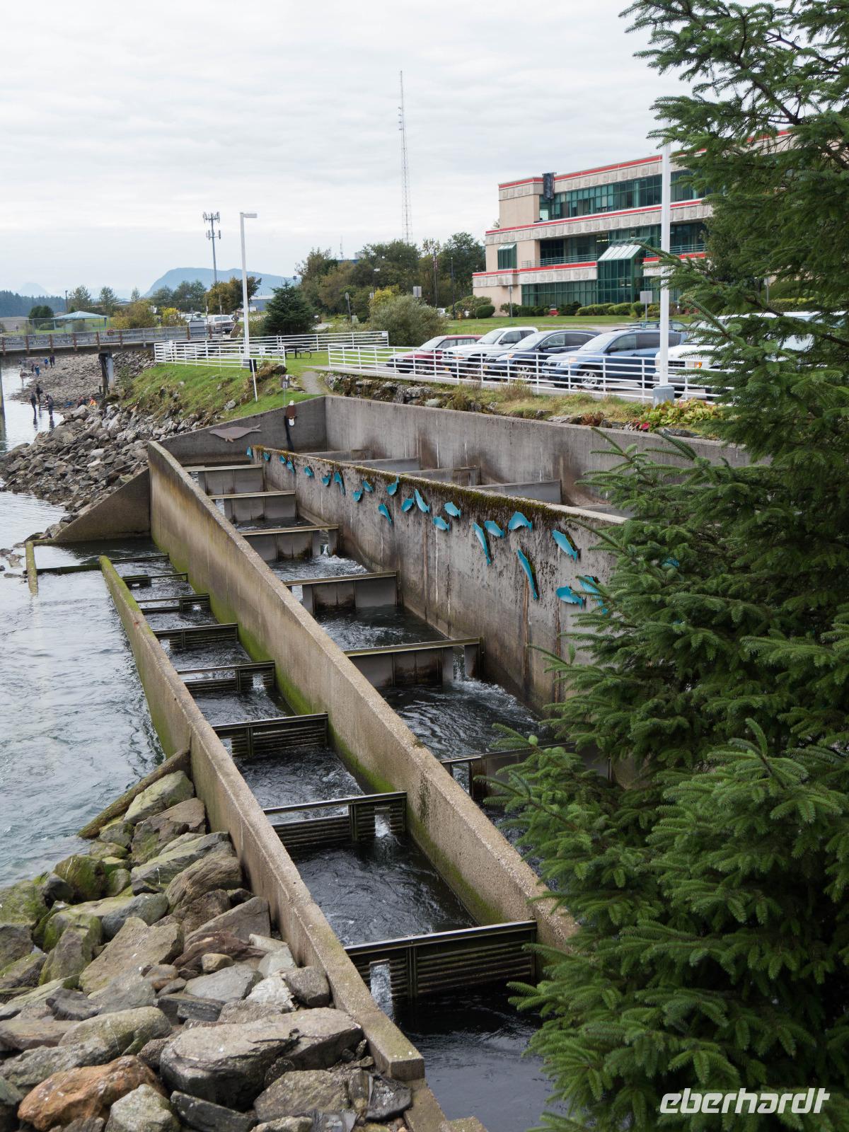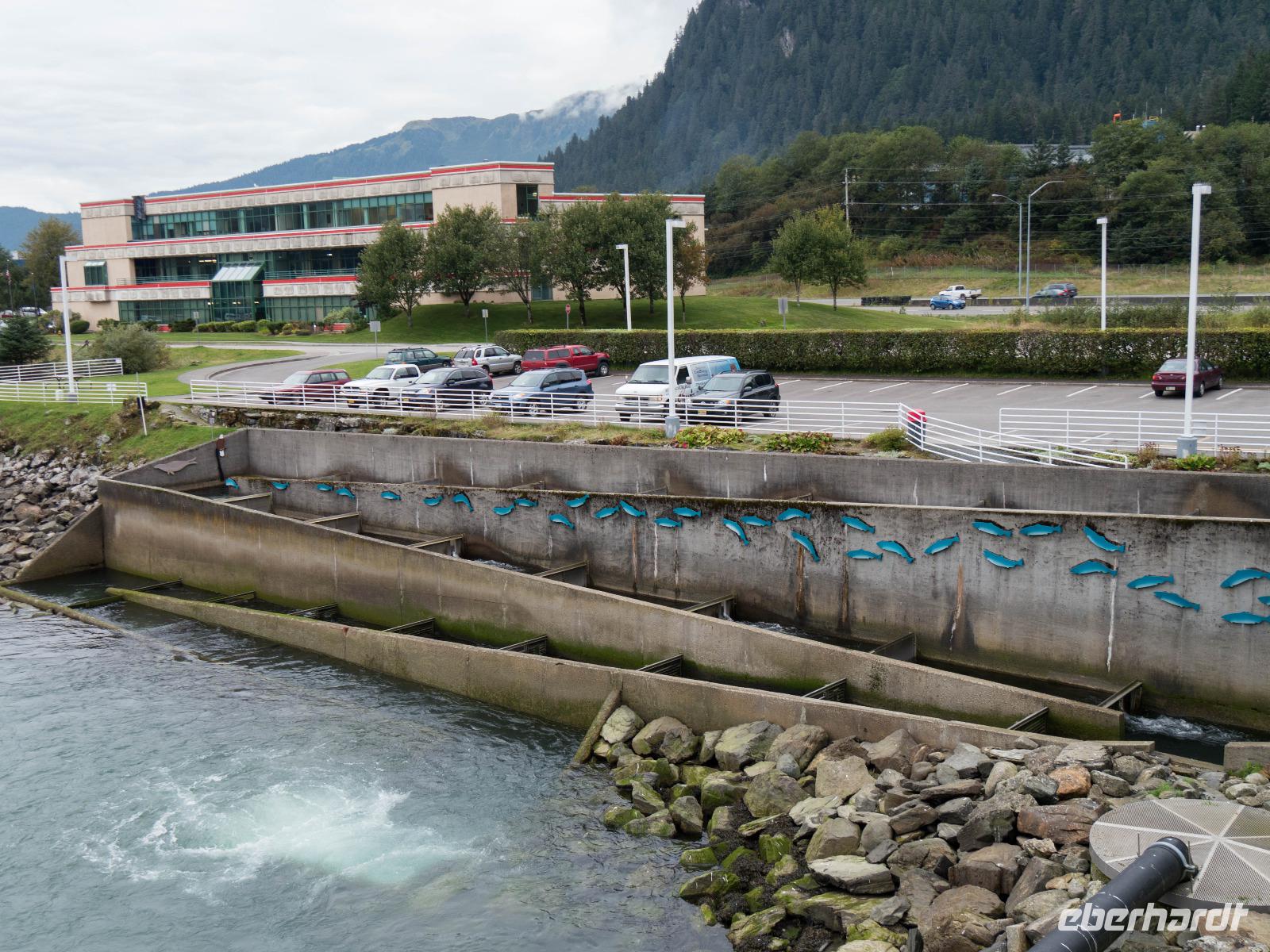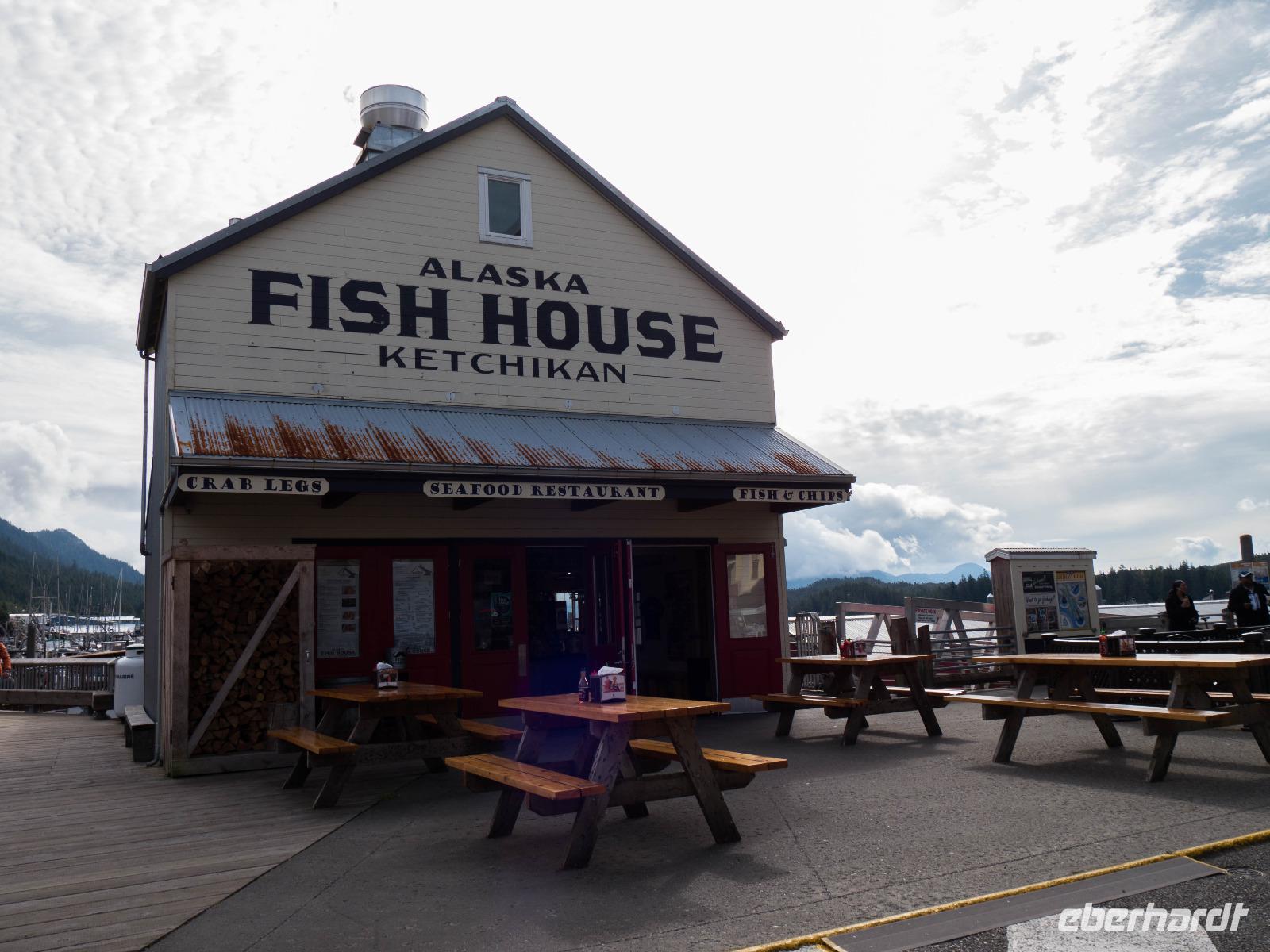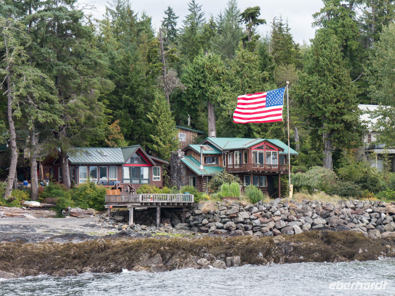 Auch in Ketchikan liegen wir wieder "mitten in der Stadt". Das ehemalige Rotlichtviertel an der Creek Street ist (auch) heute ein attraktives Stadtviertel - nur mit einem anderen Hintergrund ;-)! Die malerischen Holzhäuser stehen auf Pfählen im Wasser und beherbergen heute nette kleine Souvenirgeschäfte. Am Nachmittag begeben wir uns auf den Ausflug "Leuchtturm, Totems und Adler". Der Weißkopfseeadler (Bald Eagle) zählt zu den größten Greifvögeln Nordamerikas und ist der Wappenvogel der USA. Unser Kapitän Bob schippert mit uns die Küste entlang und zeigt uns mehrere Adlernester. Mit dem Fernglas können wir sogar den einen oder anderen Seeadler sowie Robben beobachten.