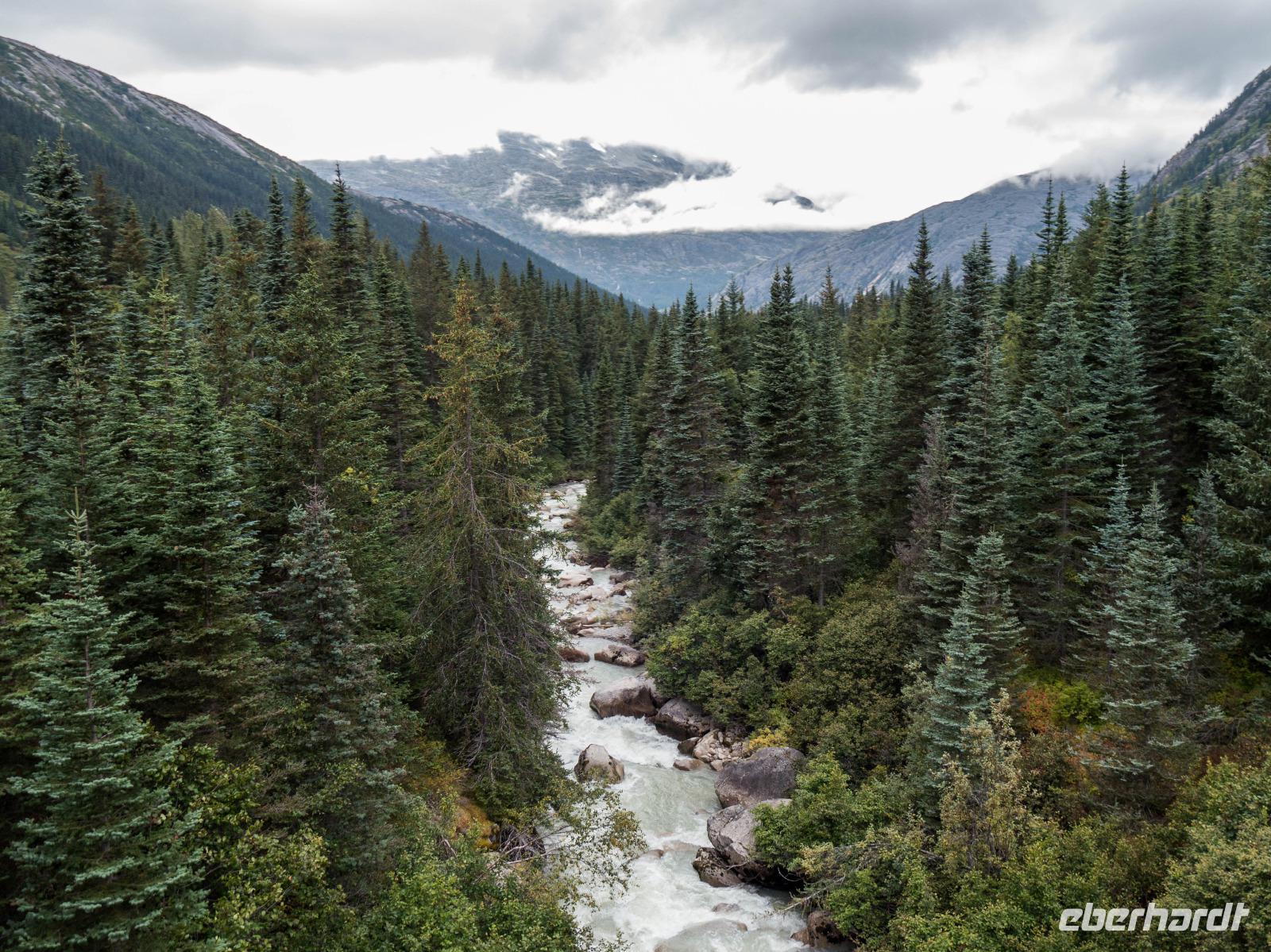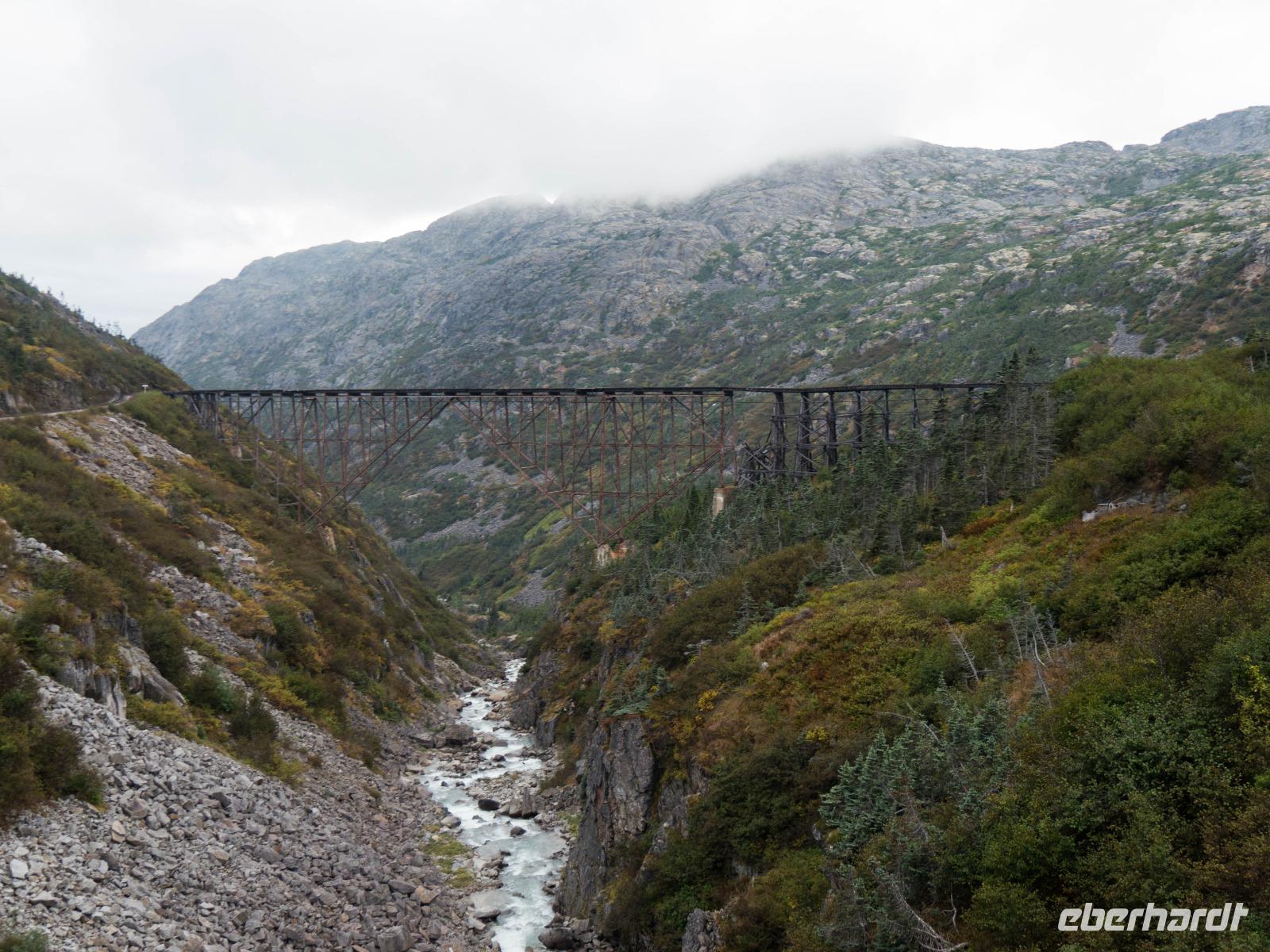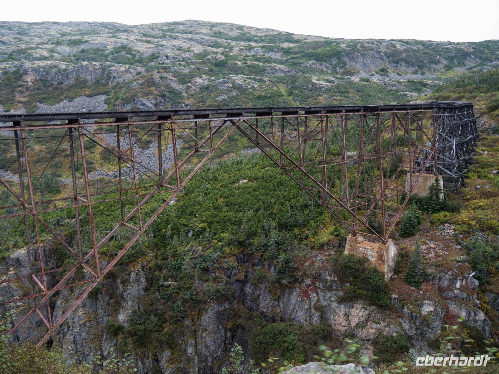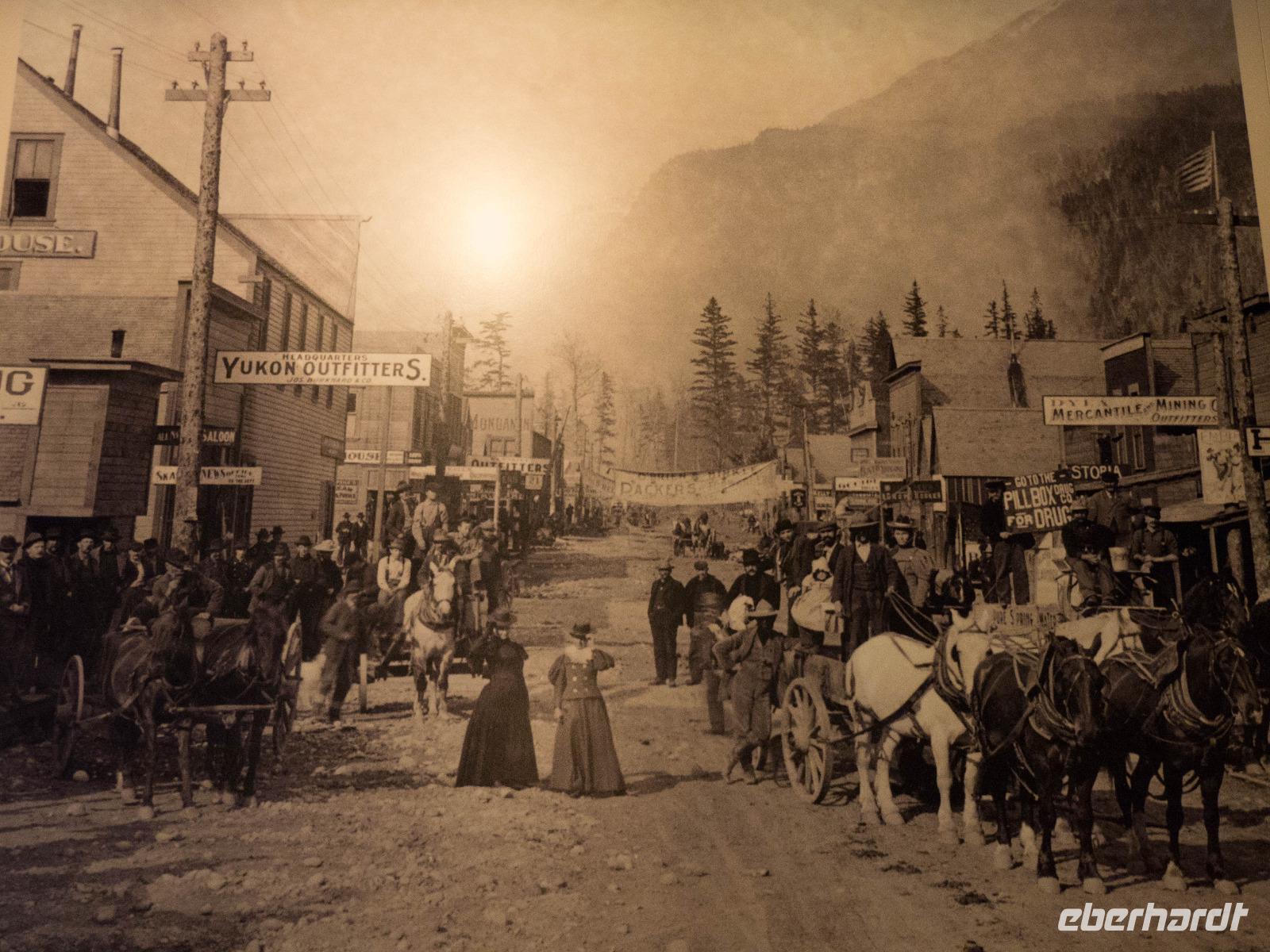 Skagway war einst das Tor zu den Goldfeldern des Klondike und ist heute ein kleines Städtchen mit äußerst charmanter Goldgräberatmosphäre und netten Souvenirgeschäften. Zur Zeit des Goldrausches 1896/97 explodierte die Einwohnerzahl in Skagway und die Stampeders machten Skagway zu einem gesetzlosen Ort. Unser Schiff legt quasi am Ende des Broadway an und so ist es nur ein Katzensprung "Downtown". DIE Sehenswürdigkeit von Skagway ist die "White Pass & Yukon Route Railway", eine historisch interessante und landschaftlich reizvolle Bahnstrecke entlang des alten Goldsuchertrails. In einer Rekordbauzeit von 2 Jahren wurde 1898 die 110 Meilen lange Bahntrasse von Skagway nach Whitehorse mit Hilfe von 35.000 Arbeitern fertig gestellt. Das gebirgige Terrain war ausgesprochen schwierig und die Witterung rauh, aber die Motivation war groß. Am Nachmittag wollen wir uns selbst von dem technischen Meisterwerk überzeugen und begeben uns auf eine Fahrt zum White Pass. Während der dreistündigen Bahnfahrt erhalten wir allerlei Informationen zur Strecke, zum Goldrausch und zum Leben der Stampeders und Glücksritter in damaliger Zeit. Auf dem 879 Meter hohen White Pass, der Grenze zwischen Alaska und Kanada, machen wir Kehrt und fahren durch die Bergwelt zurück nach Skagway. Jeden Abend gibt es an Bord verschiedene Unterhaltungsprogramme, ob Theater, Bars und Bands oder Casino. Heute lauschen wir nach dem Dinner einem wunderschönen Streichkonzert in der Observation Lounge.