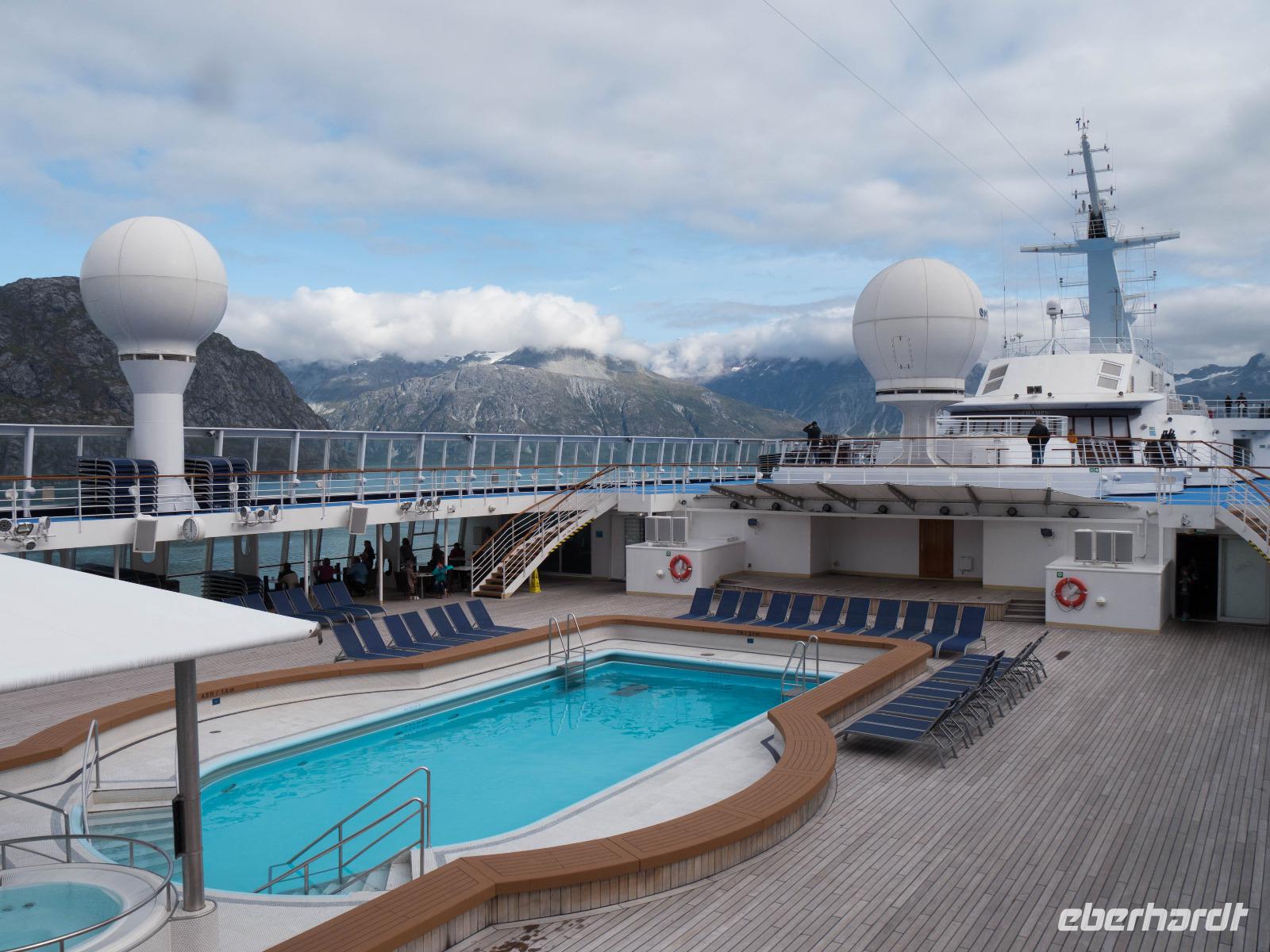 Heute kreuzen wir noch einmal durch die südlichen Ausläufer der Inside Passage und mit etwas Glück tauchen hier und da Wale auf! Neben dem Koffer packen genießen wir natürlich die Annehmlichkeiten unseres schwimmenden Hotels: Fitness, Fotogalerie, Bars, Shops, Pool uvm. Am Abend lassen wir uns ein letztes Mal im Seven Seas Restaurant mit einem leckeren 3-Gang-Menü verwöhnen und stoßen auf die schönen Erlebnisse der Reise an.