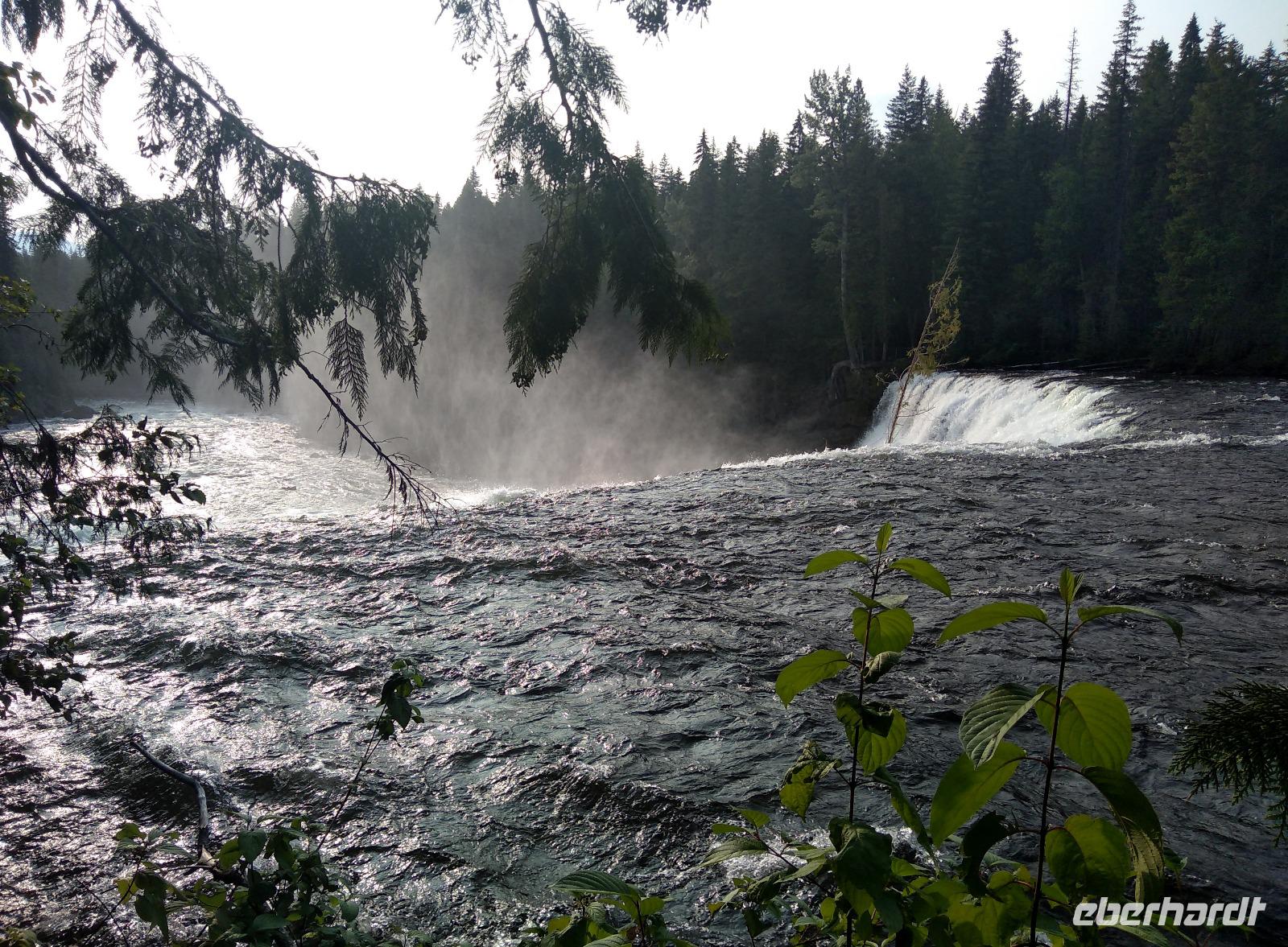 Nach dem Frühstück starteten wir Richtung Pyramid Lake- wenn auch nicht so gletscherblau wie andere Seen in den Rocky Mountains trotzdem einer der schönsten. Der Blick von der Pyramideninsel war atemberaubend! Danach hatten wir eine längere Fahrtstrecke vor uns- zunächst erst einmal raus aus dem Jasper National Park, hinein in die Provinz British Columbia. Zum Mittagessen wurde Rast gemacht am Mount Robson, dem höchsten Berg der kanadischen Rocky Mountains, der sich dank des klaren Wetters heute ohne jegliche Wolken in allerschönster Form präsentierte. Gegen 16:00 waren wir dann bereits am Hotel in Clearwater und entschieden uns für eine spontane, ungeplante Exkursion in den nahegelegenen Wells Gray Provincial Park, der insbesondere für seine spektakulären Wasserfälle bekannt ist. Zwei dieser Wasserfälle wurden von uns angesteuert- Helmcken Falls und Dawson Falls. So gut wie keine anderen Touristen und herrliche Ausblicke auf die Wassermassen- für viele sicher eines der Highlights der Reise! Zum Abendessen ging es dann auf eine echte Ranch unweit der beiden Wasserfälle. Das hervorragende Bier und der leckere Salat machten Appetit auf mehr. Leider hielten die Steaks der meisten Gäste nicht, was man sich versprochen hatte. Schade! Aber bei so wunderbaren Erlebnissen tat das der positiven Grundstimmung am Abend keinerlei Abbruch und man ließ den Tag im Hotel entspannt ausklingen.