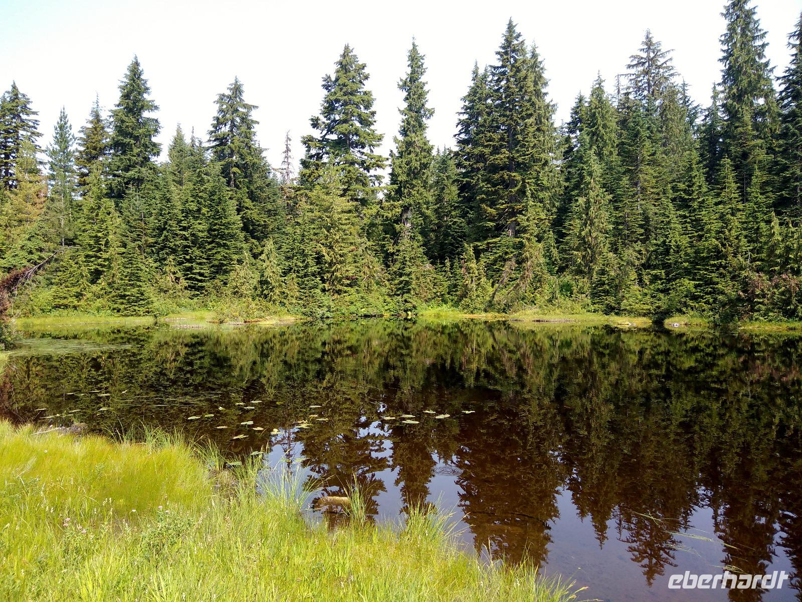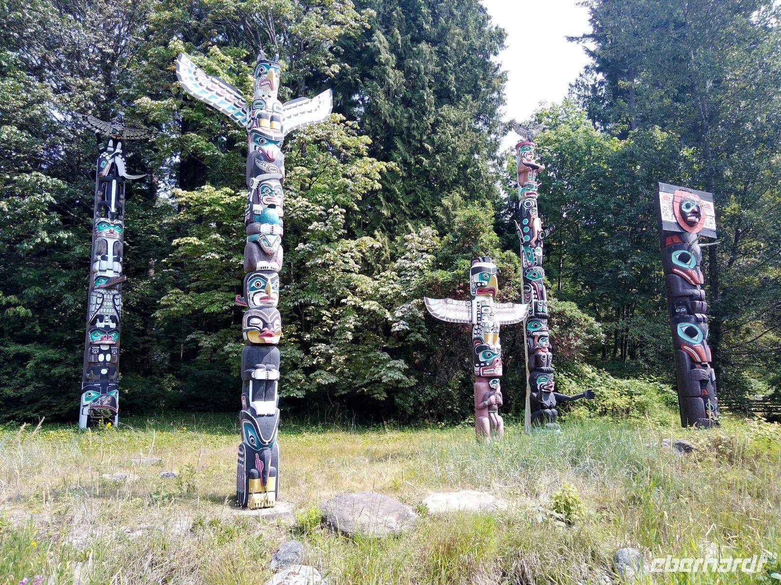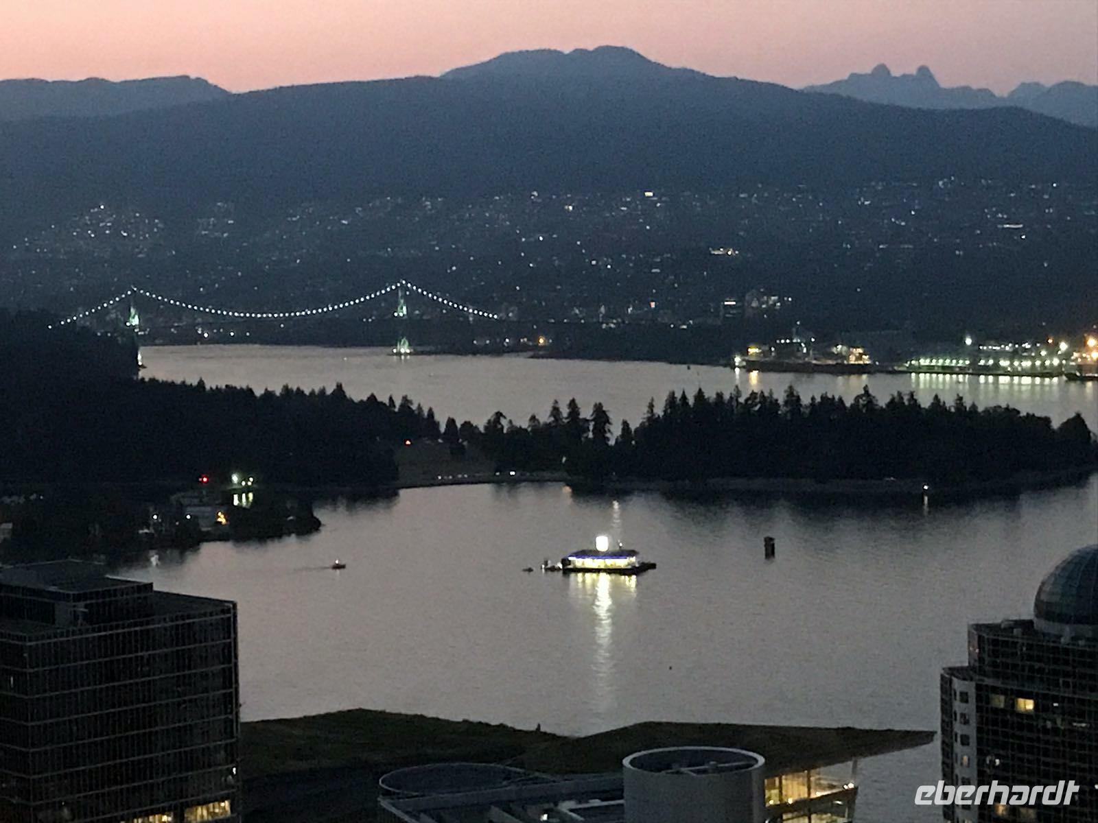 Von Whistler aus ging es nach dem Frühstück zunächst zu einer kleinen Wanderung auf den Cypress Mountain. Statt des erhofften Aussichtspunktes erreichten wir ein ehemaliges Skicamp und zwei kleine Bergseen- auch sehr nett. Anschließend stand eine Rundfahrt durch den Stanley Park auf dem Programm, zuerst zum Third Beach, anschließend zu den Totempfählen mit spektakulärem Blick auf die Skyline. Von dort aus fuhren wir Richtung Downtown, vorbei an all den großen Wolkenkratzern zur Canada Place, vorbei an Gastown, durch Chinatown und anschließend zum Hotel, wo wir uns fast ein bisschen wehmütig von unserem Busfahrer Dave verabschiedeten . Eine tolle fahrerische Leistung in den letzten sieben Tagen und ein sympathischer Zeitgenosse noch dazu! Nach der Verabschiedung ging es zu Fuß weiter, zunächst zum Robson Square und anschließend durch Gastown, der Altstadt von Vancouver, wenngleich die meisten Gebäude kaum älter als 130 Jahre alt sind. Insbesondere die berühmte dampfbetriebene Steam Clock und die Statue des Gründungsvaters bzw. Namensgebers des Stadtteils, dem legendären Barbetreiber Gassy Jack sind klassische Anlaufpunkte für Touristengruppen in Gastown. Anschließend hatten alle Gäste Freizeit und konnten den Rest der Stadt auf eigene Faust erkunden. Zum Abendessen trafen wir uns wieder in einem erstklassigen italienischen Restaurant und ließen uns die drei Gänge wie immer schmecken. Auch der Ausblick auf die Wolkenkratzer, den man von den meisten Zimmern hatte, ist nicht zu verachten. In jedem Fall ein exzellentes Hotel!