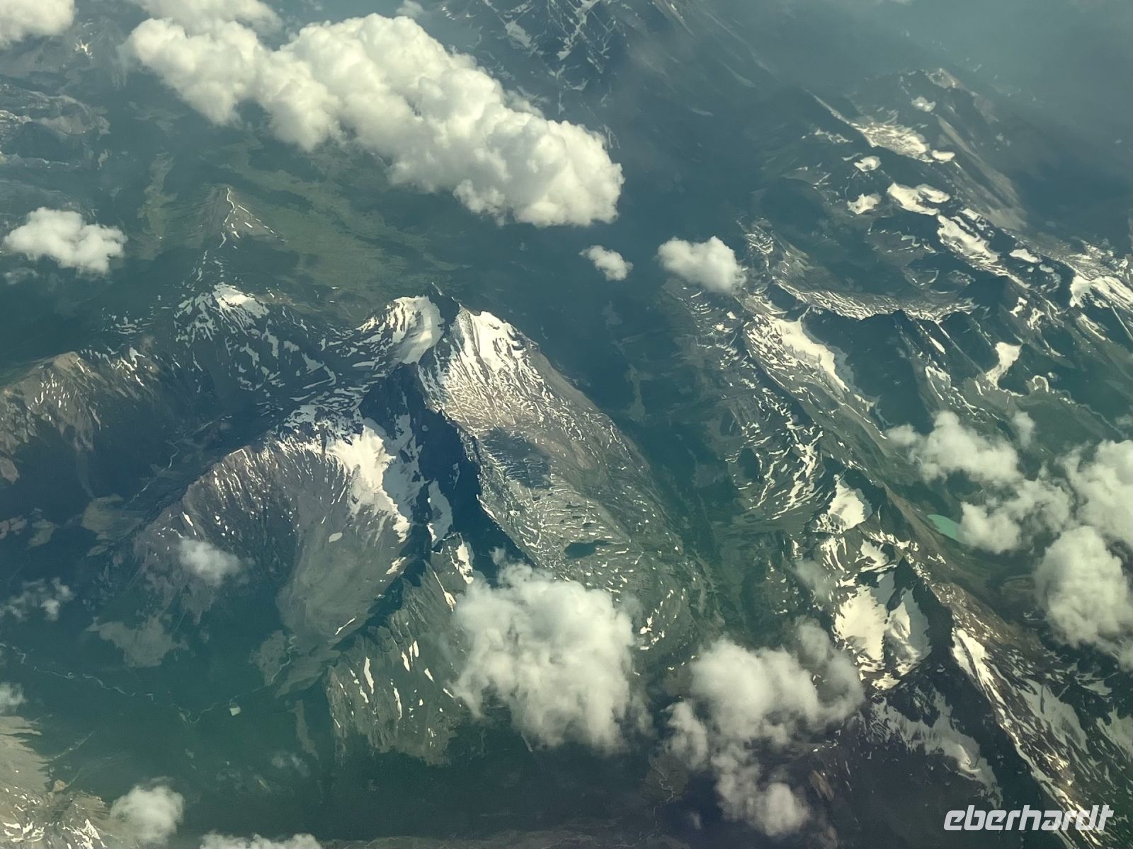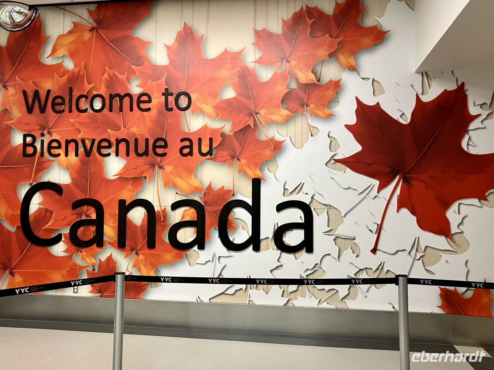 Die langersehnte Reise treten wir heute an. Der Traum von Alaska und West Kanada, der wird nun Wirklichkeit, wir sind bereit, es kann nun endlich losgehen. Wegen Covid haben wir nun 2 Jahre warten muessen und sind deshalb auch so gluecklich diese Reise antreten zu koennen. Wir alle, sind gut und puenktlich nach Frankfuert angereist und finden uns am Gate nach Calgary. Da ist ja auch schon die Reiseleitung in ihrem Froschoutfit mit der ersehnten Eberhardt Tafel in der Hand. Alles geht vorerst zuegig von statten. Alle Passagiere sitzen brav in der kleinen Abflughalle und warten. Wir warten ganze 2 Stunden bis wir nicht einsteigen koennen. Das Flugzeug ist voll belegt und mancher fragt sich wie soviel Gepaeck und Leute in so ein fliegendes Zeug passen sollen. Gott Sei Dank spricht die Crew 3 Sprachen, so unterhalten sie uns lange und bange. Man horcht ganz aufmerksam zu, ob man nicht doch vielleicht etwas von dem kanadischen Englisch oder dem Quebeqois verstehen koennte. Ahhh die Gehirnzellen sind im vollen Stress, wobei der Koerper in der Enge des Sitzes langsam erlahmt. Der Flug ist ruhig, das Essen OK. Ueber Groenland sitzen dieses mal die Wolken ganz dicht, sodass wir leider nichts sehen koennen. Vielleicht auf dem Heimflug. In dem Dreamliner sind die Fenster sehr speziell. Man kann sie verdunkeln oder auf heller einstellen. Die Flugbegleiter koennen auch alle Fenster auf Nacht stellen, sodass die Leute auch mal eine Ruh’ geben.