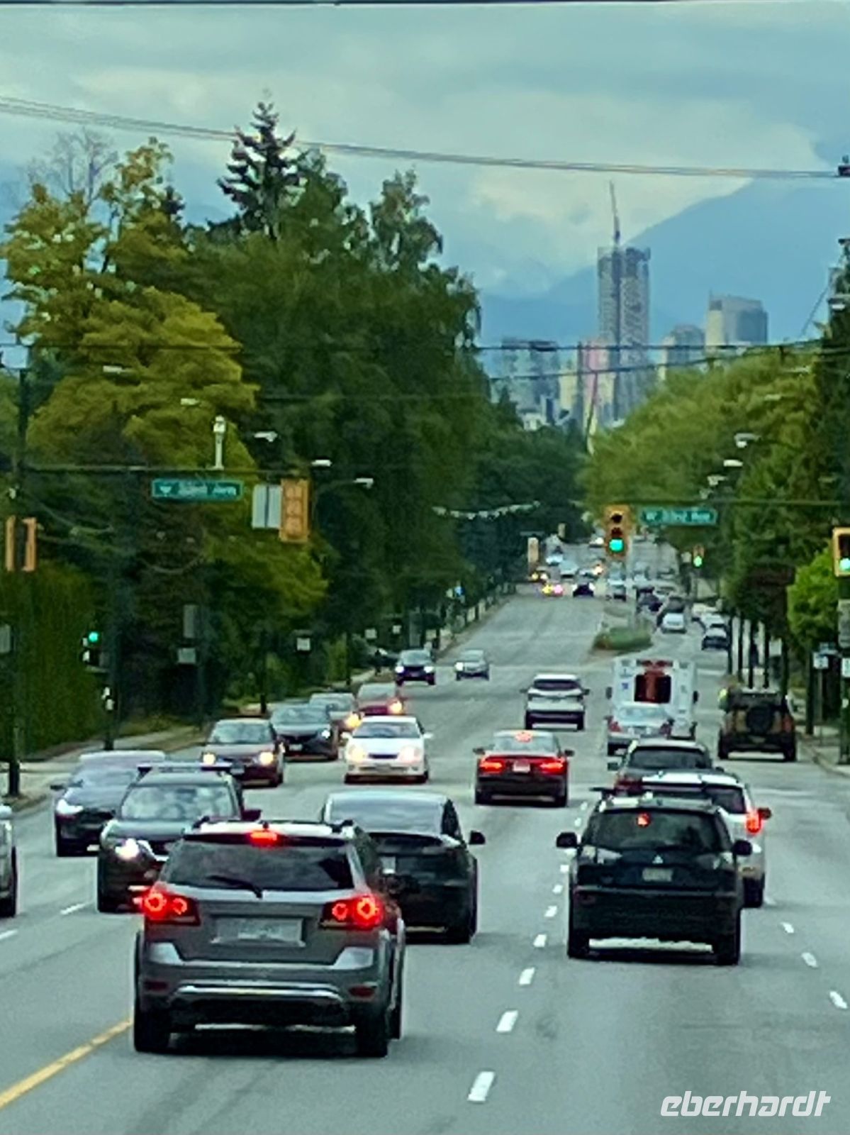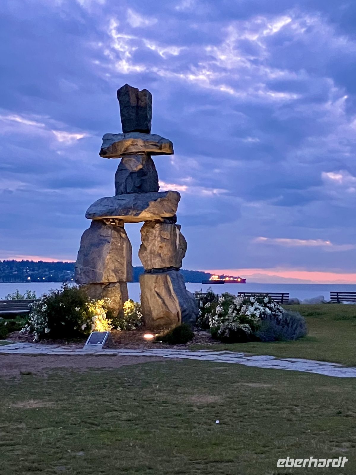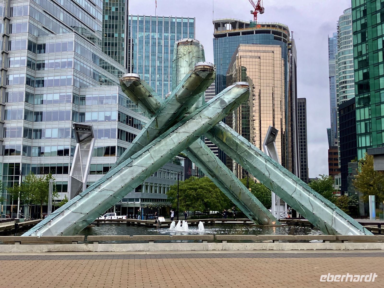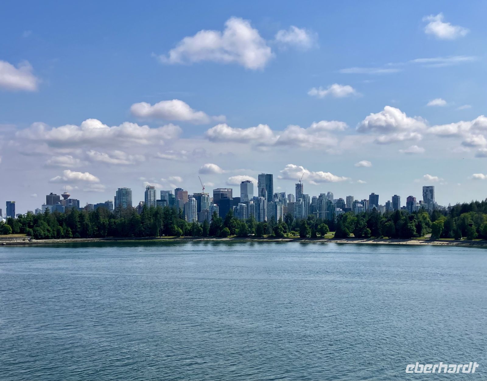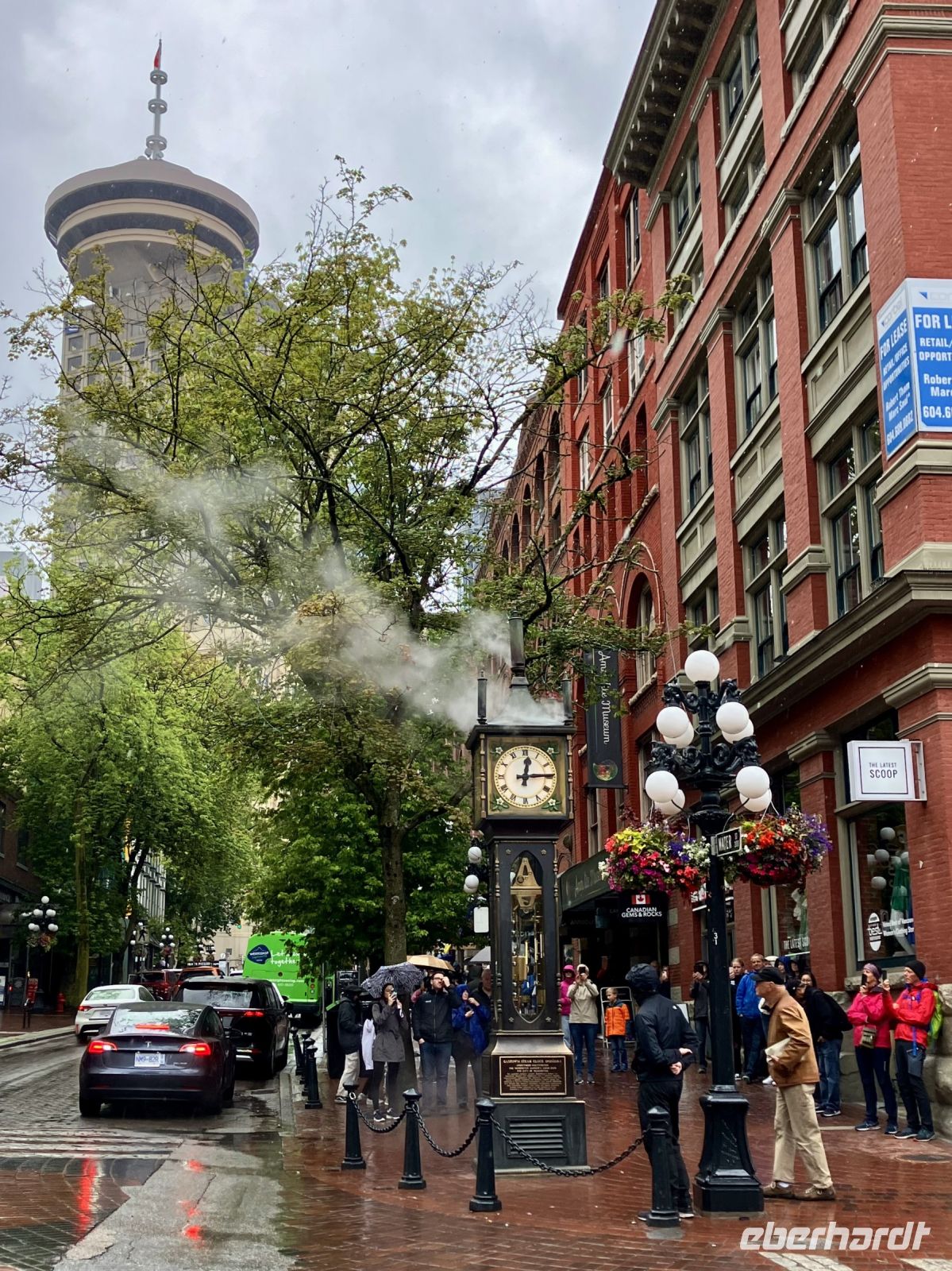 Nach dem Fruehstueck im schoenen Hotel, freuen wir uns alle schon auf die Perle des Pazifiks, Vancouver. Bei Squamish und Lions Bay vorbei, fuehrt uns die Sea to Sky Highway vom noblen West Vancouver ueber die Lions Gate Bruecke, direkt in den Stanley Park hinein. Der “geschichtserzaehlender Pfahl Park” auch liebevoll Totem Park genannt ist eine laengere Visite wert. Jeder knipst auch Fotos der Skyline von Vancouver. Die Perle zeigt sich im nassen Sonnenschein, was anscheinend sehr gewoehnlich ist. Bei 9 Monate Regen… wachsen einem fast schon Schuppen. Aber so lange bleiben wir nicht hier. An vielen Straenden vorbei fahrend muessen wir uns nun doch mit dem dicken, langen Bus durch die Innenstadt Vancouvers zwaengen. Wir wollen uns Chinatown anschauen. Es sieht hier echt aus wie in China und die Leute welche ihre Einkaeufe taetigen sind fast ausschliesslich chinesischen Ursprungs. Gleich nebenan ist Gastown. Der aelteste Stadtteil Vancouvers. Bei Gassy Jack’s Pub steigen wir aus und besuchen Gastown zu Fuss bis wir bei der beruehmten Dampfuhr staunenend stehen bleiben. Ein Eisenbahningenieur hatte damals diese Standuhr mit vier Zifferblaetter gemaess einer Lokmaschine hergestellt. Das ging viele Jahre gut, dann hatten alle vier Uhren verschiedene Zeiten, bis sich eine schweizer Uhrenfirma deren erbarmte und sie insgeheim mit einem neuen Uhrwerk versehen hat. Ahhh, da ist sie ja schon, unsere gute Kim holt uns ab und weiter gehts auf der Stadtrundfahrt an Canada Place vorbei nach Granville Island. Da gibt es allerhand zu sehen und der Markt verfuehrt uns zu einem ausgewaehlten Mittagessen. Strassenkuenstler sind heute nicht auf der Terasse, da es nun doch heftig regnet. Aber es gibt ja die tolle Markthalle und diese verschoenert diesen Aufenthalt. Jeder nutzt die Freizeit und wir treffen uns spaeter wieder. Nun fahren wir eine kurze Strecke durch die Paradestrasse Vancouvers und erreichen bald unser Hotel, welches ideal, mitten in Downtown gelegen ist. Danke Kim fuer Deine Freundlichkeit, Dein Lachen, Deiner exzellenten Fahrweise und Deinen Humor. Gute Fahrt wieder zurueck nach Jasper. Schoen war es mit Kim. Wir koennen nun die Zimmer beziehen und haben den Rest des Nachmittages frei zur Erkundung Vancouvers. Jeder hat bereits einen Stadtplan in der Hand und viele Ideen im Kopf. Erst abends sehen wir uns wieder zum tollen Abschiedsessen des 1. Teiles dieser schoenen Reise. Mmmmh, das schmeckt aber vorzueglich im Coast Restaurant. Die Nacht ist etwas animierter als in den Chalets in den Rockies aber geschlafen haben wir ganz toll.