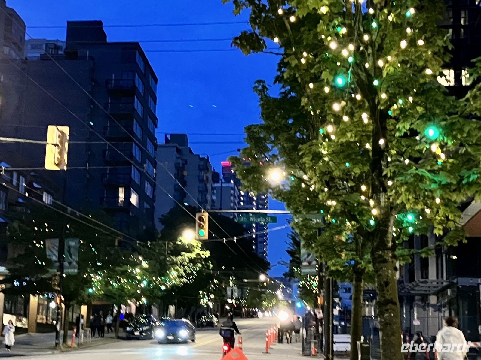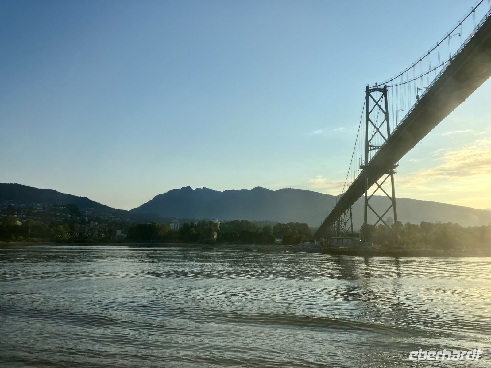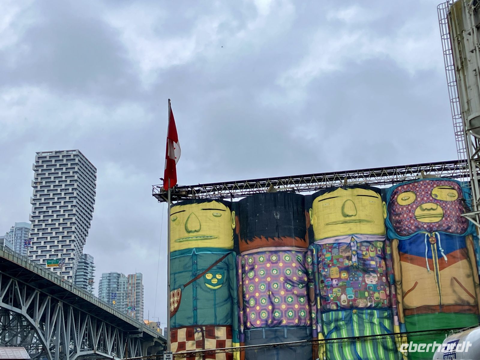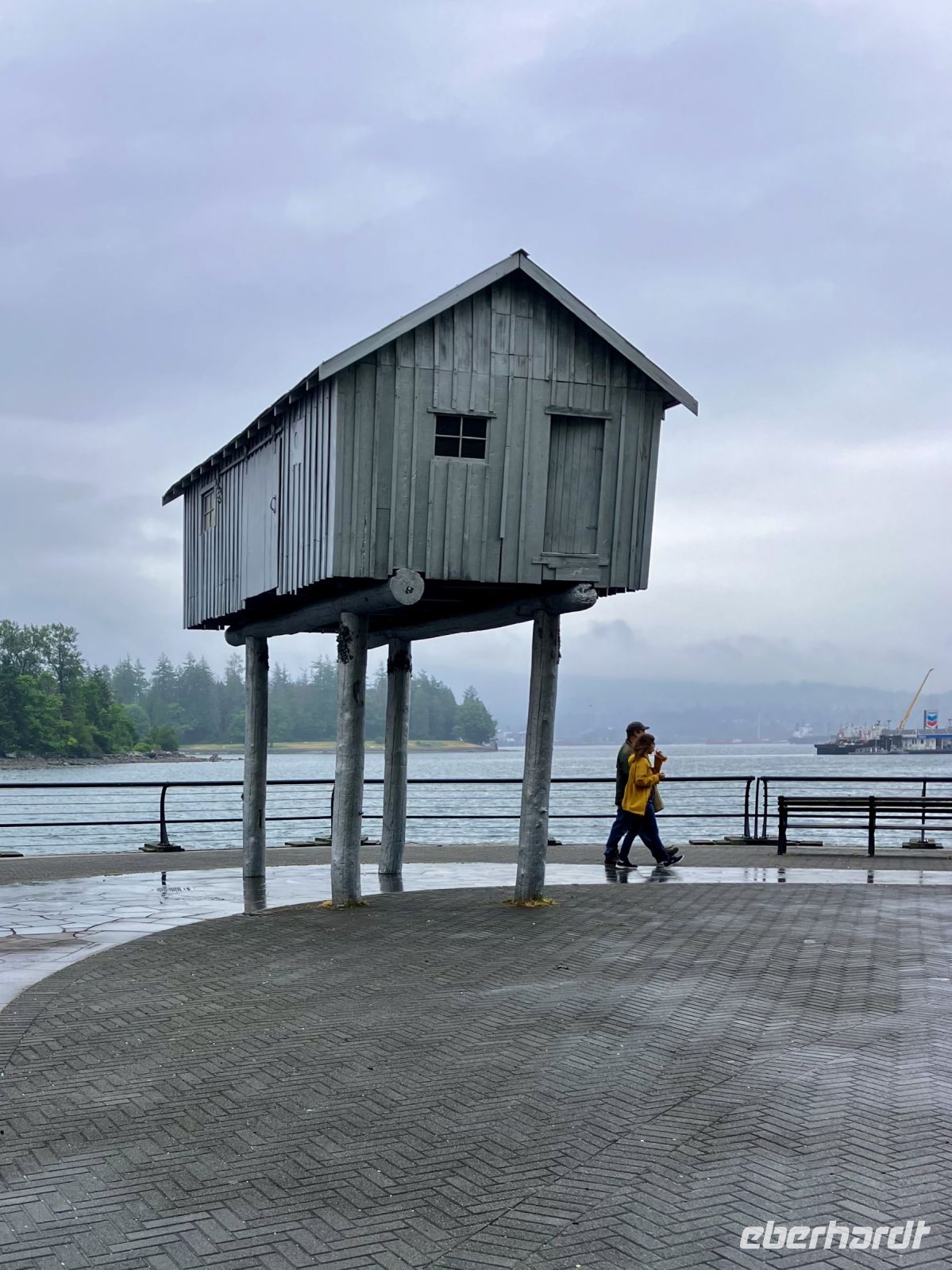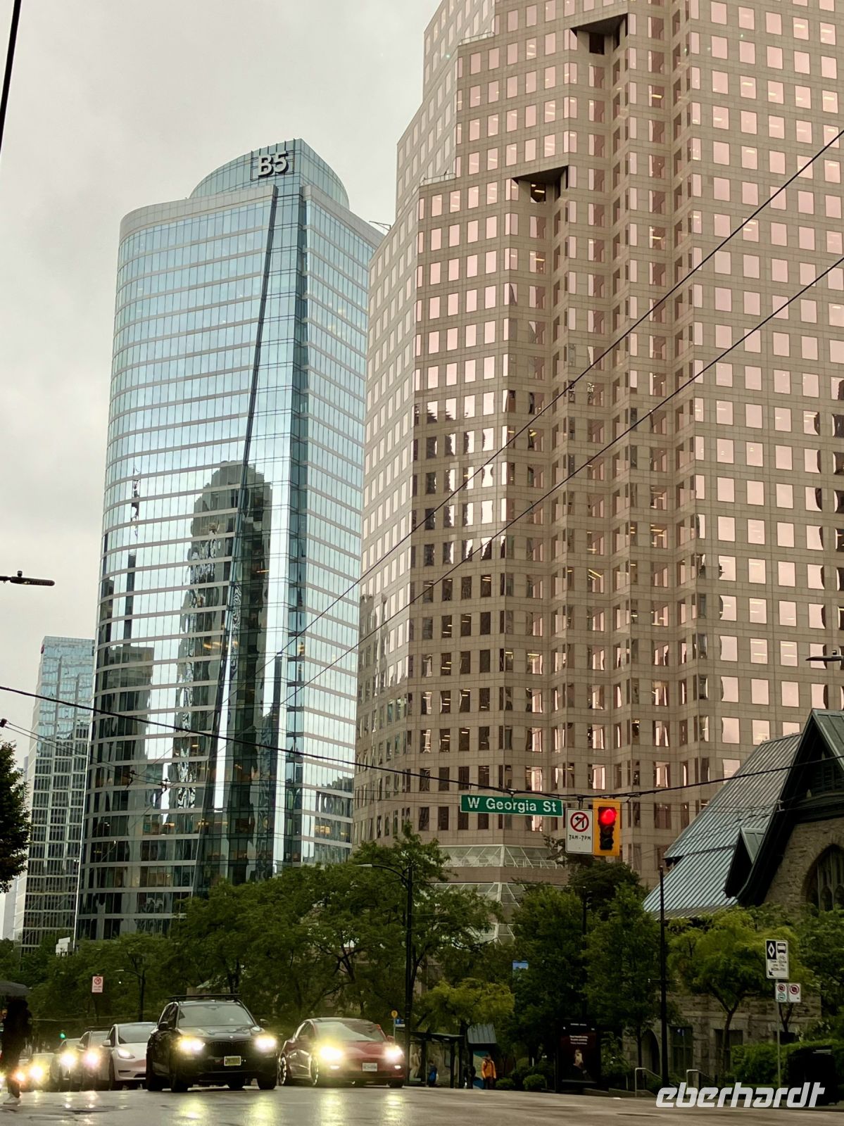 Nach dem Fruehstueck im schoenen Hotel, freuen wir uns alle schon auf die Perle des Pazifiks, Vancouver. Bei Squamish und Lions Bay vorbei, fuehrt uns die Sea to Sky Highway vom noblen West Vancouver ueber die Lions Gate Bruecke, direkt in den Stanley Park hinein. Der “geschichtserzaehlender Pfahl Park” auch liebevoll Totem Park genannt ist eine laengere Visite wert. Jeder knipst auch Fotos der Skyline von Vancouver. Die Perle zeigt sich im nassen Sonnenschein, was anscheinend sehr gewoehnlich ist. Bei 9 Monate Regen… wachsen einem fast schon Schuppen. Aber so lange bleiben wir nicht hier. An vielen Straenden vorbei fahrend muessen wir uns nun doch mit dem dicken, langen Bus durch die Innenstadt Vancouvers zwaengen. Wir wollen uns Chinatown anschauen. Es sieht hier echt aus wie in China und die Leute welche ihre Einkaeufe taetigen sind fast ausschliesslich chinesischen Ursprungs. Gleich nebenan ist Gastown. Der aelteste Stadtteil Vancouvers. Bei Gassy Jack’s Pub steigen wir aus und besuchen Gastown zu Fuss bis wir bei der beruehmten Dampfuhr staunenend stehen bleiben. Ein Eisenbahningenieur hatte damals diese Standuhr mit vier Zifferblaetter gemaess einer Lokmaschine hergestellt. Das ging viele Jahre gut, dann hatten alle vier Uhren verschiedene Zeiten, bis sich eine schweizer Uhrenfirma deren erbarmte und sie insgeheim mit einem neuen Uhrwerk versehen hat. Ahhh, da ist sie ja schon, unsere gute Kim holt uns ab und weiter gehts auf der Stadtrundfahrt an Canada Place vorbei nach Granville Island. Da gibt es allerhand zu sehen und der Markt verfuehrt uns zu einem ausgewaehlten Mittagessen. Strassenkuenstler sind heute nicht auf der Terasse, da es nun doch heftig regnet. Aber es gibt ja die tolle Markthalle und diese verschoenert diesen Aufenthalt. Jeder nutzt die Freizeit und wir treffen uns spaeter wieder. Nun fahren wir eine kurze Strecke durch die Paradestrasse Vancouvers und erreichen bald unser Hotel, welches ideal, mitten in Downtown gelegen ist. Danke Kim fuer Deine Freundlichkeit, Dein Lachen, Deiner exzellenten Fahrweise und Deinen Humor. Gute Fahrt wieder zurueck nach Jasper. Schoen war es mit Kim. Wir koennen nun die Zimmer beziehen und haben den Rest des Nachmittages frei zur Erkundung Vancouvers. Jeder hat bereits einen Stadtplan in der Hand und viele Ideen im Kopf. Erst abends sehen wir uns wieder zum tollen Abschiedsessen des 1. Teiles dieser schoenen Reise. Mmmmh, das schmeckt aber vorzueglich im Coast Restaurant. Die Nacht ist etwas animierter als in den Chalets in den Rockies aber geschlafen haben wir ganz toll.