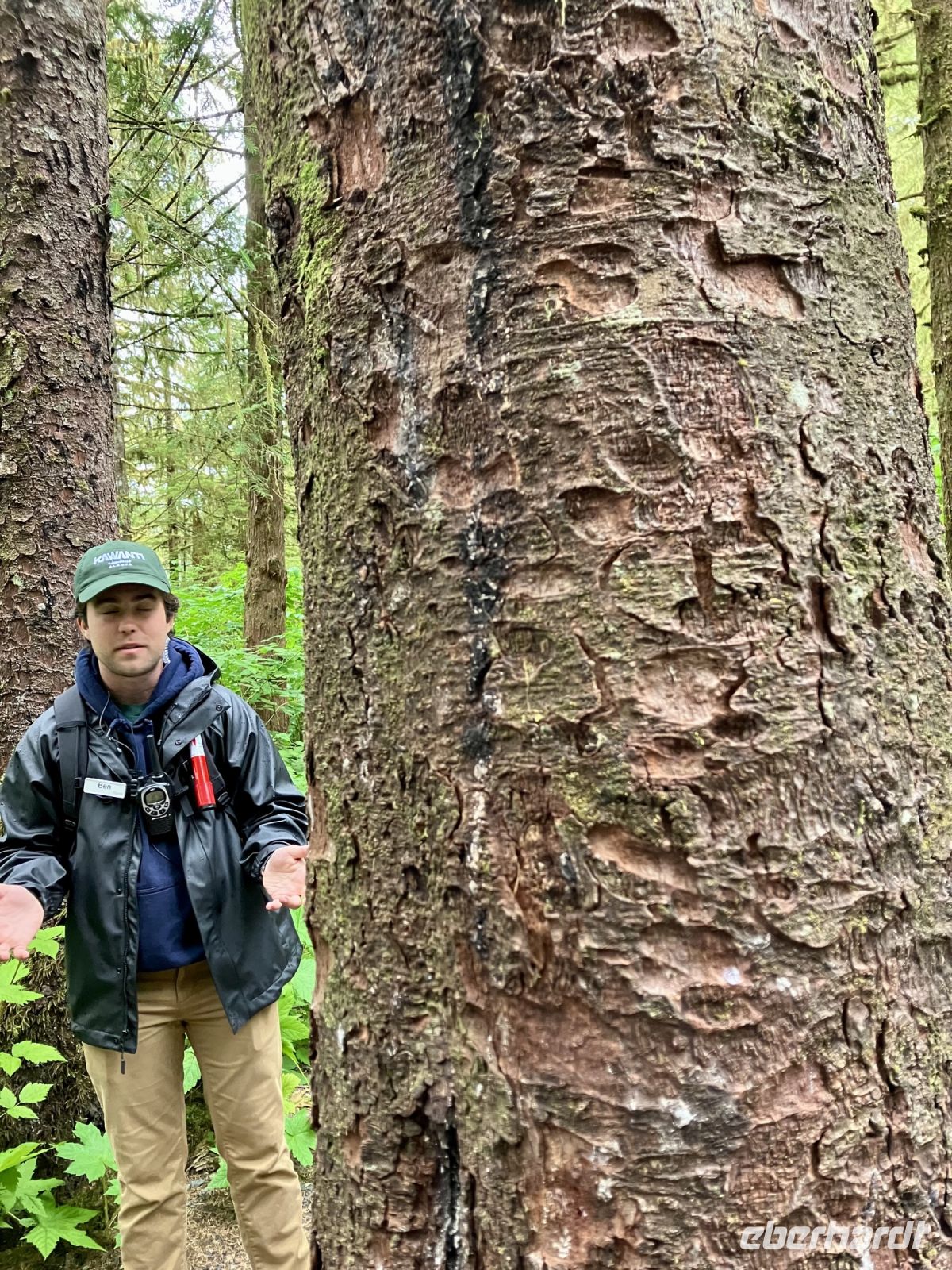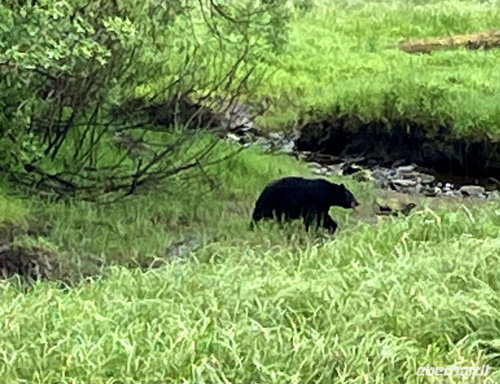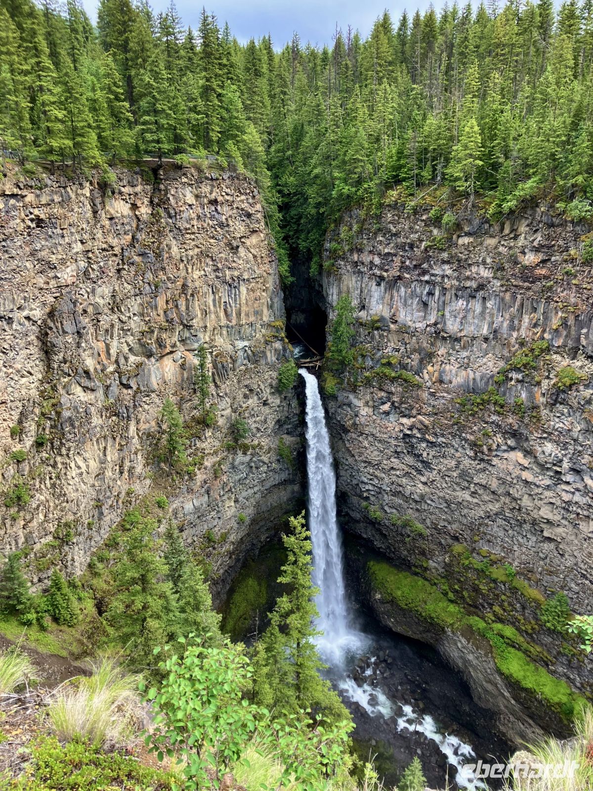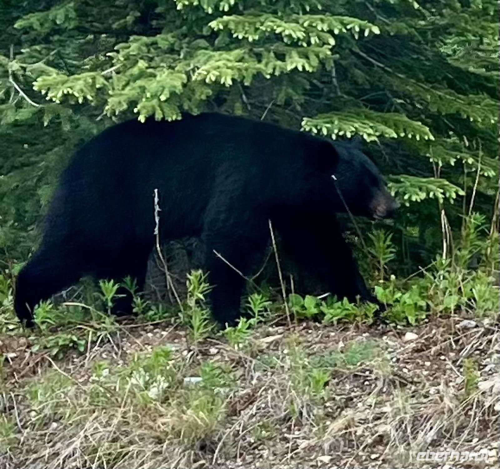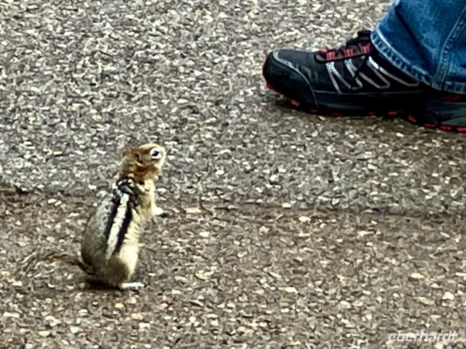 Die Nacht war kalt aber die schoen warmen Zudecken haben ihren Dienst gut geleistet. Frisch sehen wir uns alle wieder beim Fruehstuecksbuffet welches nur fuer uns hergerichtet ist. Heute fahren wir vorerst zu zwei kleineren Bergseen. Aber gleich schon beim Verlassen des Hotelareals auf der HWY sehen wir eine ganze Herde von Wapitidamen mit ihren Kids. Ploetzlich rennt auch ein gepunktetes Bambi ueber die Strasse, steht mitten drinnen stehen und schaut sich um. Alle Autos schauen gespannt dem Baby zu und es schaut angespannt wo denn auch die Mama bleibt. Ahhh da kommt sie ja, bleibt auch auf dem Mittelstreifen stehen schaut sich um, sieht dass alle Autos und Busse stehen, das Bambi kommt hungrig nahe und faengt auch an zu saeugen. Na sowas, die Kameras sind total im Stress denn niemand kann glauben was wir da gerade sehen. Das Schauspiel dauert etwa 3 Minuten, bis uns nicht ein Pickup ueberholt und die beiden Protagonisten von dem Buehnenbild verjagt. Wir werden diese Szene nie mehr vergessen. Nun ist es aber Zeit weiterzufahren wir wollen doch zu Patricia und Pyramid Lake. Beim ersten halten wir auch schnellstens an, denn das Wasser ist glatt, die Spiegelung perfekt und der schoene rote Pyramid Mountain hat sogar einen Wolken Schal um sich gewickelt. Nun schauen wir auch noch gleich ob die Habakuk Geschichte auch wahr sei. Ja, wir sehen die Fotos der Schiffswerft aus dem 2. Weltkrieg, eine unglaubliche Geschichte. Nach den vielen Fotos der Spiegelung gehts nun zu Pyramid Lake. Wir spazieren gemuetlich um die Insel und knipsen noch ein tolles Foto von uns fuer uns. Jetzt gehts aber weiter da wir heute noch viel vor haben. Uiii, da steht ja ein Baer mitten im Gebuesch, er knabbert was und graebt nach Wurzeln, wir koennen ihm zuschauen aber sehr fotogen ist er leider nicht. Unterwegs nach Clearwater halten wir bei der Grenze von Alberta-Britisch Kolumbien und stellen auch die Uhr eine Stunde zurueck. So verabschieden wir uns auch von den Rockies, fahren noch ein Stuendchen bis wir bei Mount Robson ankommen. Mit der Zeitverschiebung haben wir heute ein Spiel-Stunde dazubekommen. Das Mittagessen bei Mount Robson ist gut und der Mount Robson selbst zeigt sich zu ¾ was schon sehr schoen und besonders ist. Der 3954 Meter hohe Berg schliesst naemlich ein langes Tal ab und so ziert fast immer eine Wolkenkrone sein Haupt. Bei der Weiterfahrt verlassen wir nun den Fraser Fluss und fahren dem North Thompson River entlang. Ein Bierchen unterwegs beim wilden Larry in seinem Pub haelt uns bei Laune. Nicht dass wir das braeuchten, aber bitte. Dann heisst es bald mal Einchecken in Clearwater und das jeweilige niegel-nagel-neue Zimmer zu beziehen. Bloss noch 2 Sachen stehen auf Elisabeth’s heutigem Plan. Also gehts gleich wieder mit dem Bus ab auf eine 20 Minuetige Fahrt. Auf dem kurzen Wanderweg zu dem Spahat Wasserfall lernen wir einiges ueber den Wald. Wie erkenne ich Duglasien, wozu braucht man die Westliche Rote Zeder und wozu dient wohl eine Hemlock Tanne. Ach, hier ist eine Pappel und da eine Eibe welche man zur Heilung aller moeglichen Krankheit gebrauchen kann. Der praechtige Spahat Wasserfall ist sehr beeindruckend und sein Basaltgestein ist ein Augenschmaus eines jeden Geologen. Schau, wir wir unsere Augen tricksen koennen, die Basaltwand kann tanzen ! Auf und ab bewegen sich die Schichten ! Ausgetrickst gehts zurueck ins Hotel und spaeter zum Super Abendessen. Die schoenen neuen Zimmer rufen uns, kommt doch endlich, Zeit um sich zurueck zu ziehen. Heute nacht traeumen wir von den vielen Eindruecken und Abenteuer in den Rocky Mountains. Schoen wars. Tolle Tiere haben wir gesehen.