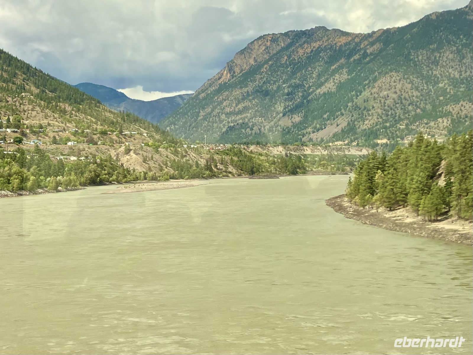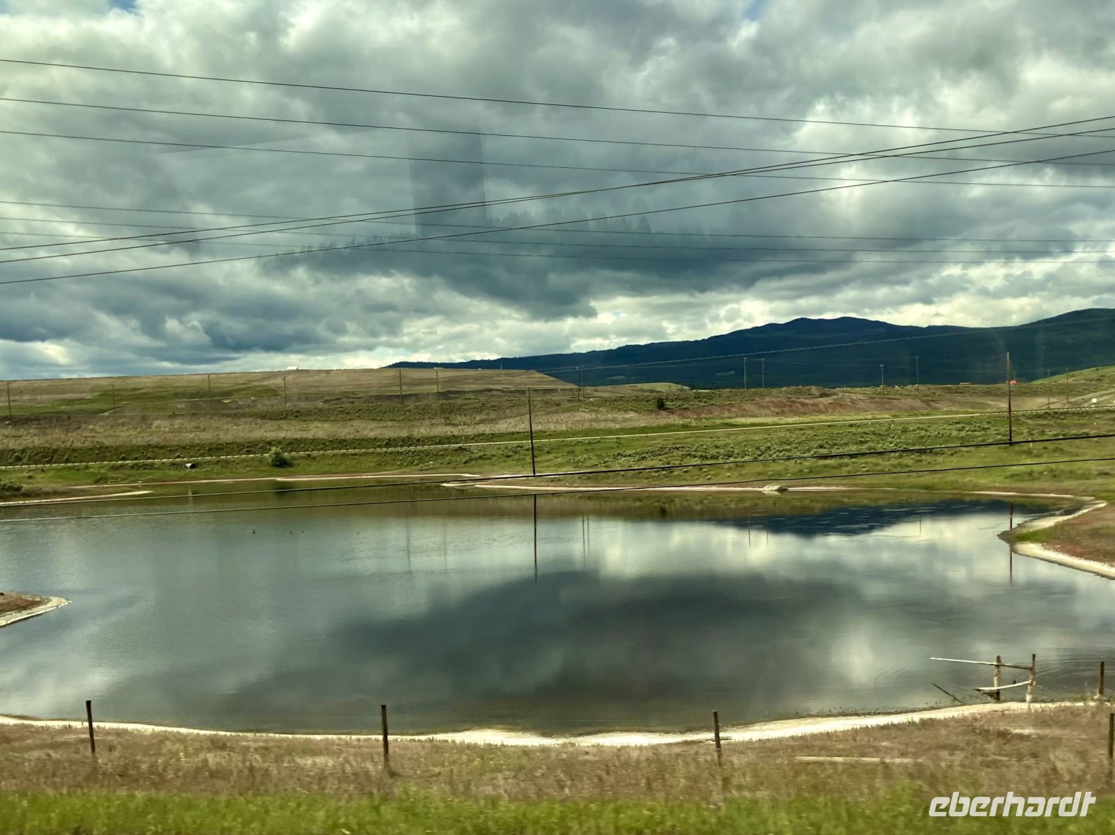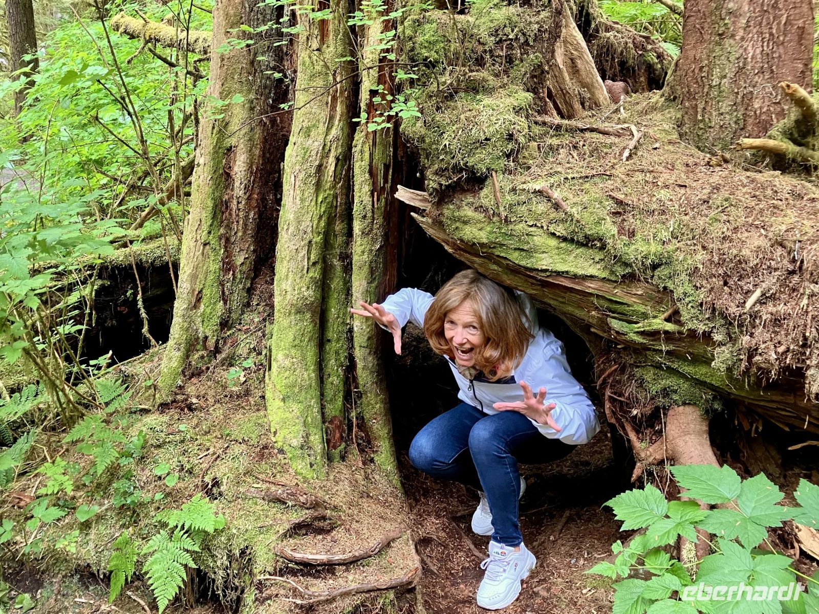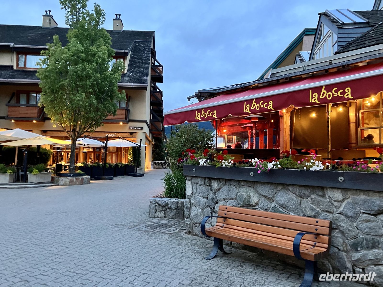 Heute geht unsere Reise von Clearwater nach Whistler. Auf der Fahrt nach Kamloops reden wir ueber die Ersten Nationen, ihr Leben und ihre Gepflogenheiten. Aber auch die Pioniere, Goldgraeber, Chinesen und Ueberland-Wanderer werden angesprochen, das muessen schon wilde Abenteurer gewesen sein. So erreichen wir auch bald Kamloops. Ploetzlich sehen wir ihn. DAS Krummhornschaf auf dem Berglein kurz vor Kamloops. Wie suess er ausschaut am Horizont, wie ein Scherenschnitt. Ein kurzer technischer Stopp spaeter, fahren wir an Salzseen vorbei und dem Kamloops Lake enlang. Auch hier wird kurz angehalten fuer ein Foto. Der Thompson River liegt in einer Wuesten-Gegend, nur noch Bueschelgrass, Kakteen und wilder Salbei wachsen hier. Vor Mittag sind wir bei der historischen Hat Creek Ranch. Super, die Giraffen Garage gibt es noch haetten wir das gewusst, haetten wir sie mitgenommen ! Vor der Ranch werden wir bereits erwartet und wir koennen auch gleich zum Posthotel auf der Cariboo Wagenstrasse vorgehen, genauso wie die Goldgraeber um 1856. Vorerst erfahren wir hautnah wie der Schmied einen eckigen Nagel schmiedet und danach lernen wir noch mehr ueber die interessante Goldgraeber Zeit in Britisch Columbien. Wir besuchen das Posthotel und bewundern unter anderem die gut erhaltene Seidentapete, die kleinen Zimmer, das englische Porzellan und die Bar im Saloon mit dem Kartenspiel ohne Nummern auf dem Tisch. Gleich daneben haben die Sushwap Erste Nationen eine kleine Kulturstaette aufgebaut. Vanessa, unser Begleiterin, ist in traditioneller Kleidung der Sushwap gekleidet und erzaehlt uns in Kuerze Interessantes ueber ihre Kultur und ihre Gebraeuche. Wir horchen den Geschichten zu und stellen uns nun vor, wie wohl so ein Winter in einer Erd-Behausung, mit ca 40 Familienmitglieder haette sein koennen... Die Mittagspause beim Nachbar der Hat Creek Ranch bringt uns wieder ins heutige Leben zurueck. Nach dem wohlverdienten Mittagsschlaefchen im Bus erreichen wir Fraser Canyon. Die Strasse klebt geradezu am Abhang dieser Schlucht, aber Kim faehrt uns sicher und geduldig nach Lillooet. Am Strand von Seaton Lake gibt es nun eine Weinverkostung als Ueberraschung. Wir stossen auch fuer alle Mitarbeiter dieser herrlichen Reise an. Danke Eberhardt, danke Canadian Travel Partners fuer die tolle Ausarbeitung dieser Reise. Die Weinverkostung besteht aus drei verschiedenen Weinsorten aus BC. Ein Merlot, ein Shiraz und ein Sauvignon Blanc. Ja, der gute Padre Pandossi hatte damals eine gute Idee, hier in BC Wein anzupflanzen, sie werden nun auch international ausgezeichnet. Leicht angeheitert geht es auf die Duffy Lake Road, auch die Rock‘n Roll Strasse genannt, da sie, aehnlich einer Passtrasse, das wasserarme Mittelland verlaesst und nach tausenden von abenteuerlichen Kurven das Kuestengebirge erreicht. Kim entpuppt sich nun als echte Kurvenkoenigin. Whistler ist unser Ziel und wir kommen auch planmaessig um 18:30 Uhr an. Dieses Olympiadorf und Spielwiese der Vancouveriten, hat eine Fussgaengerzone die wir gleich erforschen. Elisabeth hat hier auch 2 Jahre gelebt und gibt uns alle Insider Tips. Bei der Gondel schauen wir den Mountain Biker zu wie sie die Pisten hinuntersaussen in ihren kriegerischen Ausruestungen. In Whistler ist was los, so viele junge Leute beleben dieses Dorf, es jagen sich geradezu Bars, Restaurants, Sportgeschaefte, Clubs und Pubs. Wir essen fein im Quattros und einige treffen sich danach wieder im Irish Pub. Es ist Sonntagabend und Grund genug zu feiern bis in die tiefe Nacht hinein. Nur gut, dass unser Hotel laermgedaemmte Fenster hat. Oder sollen wir nicht doch in so eine wilde Bar gehen und einfach mitfeiern ? Whistler ist ein echter Spielplatz fuer Erwachsene.