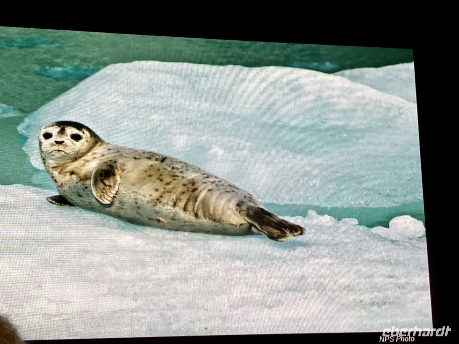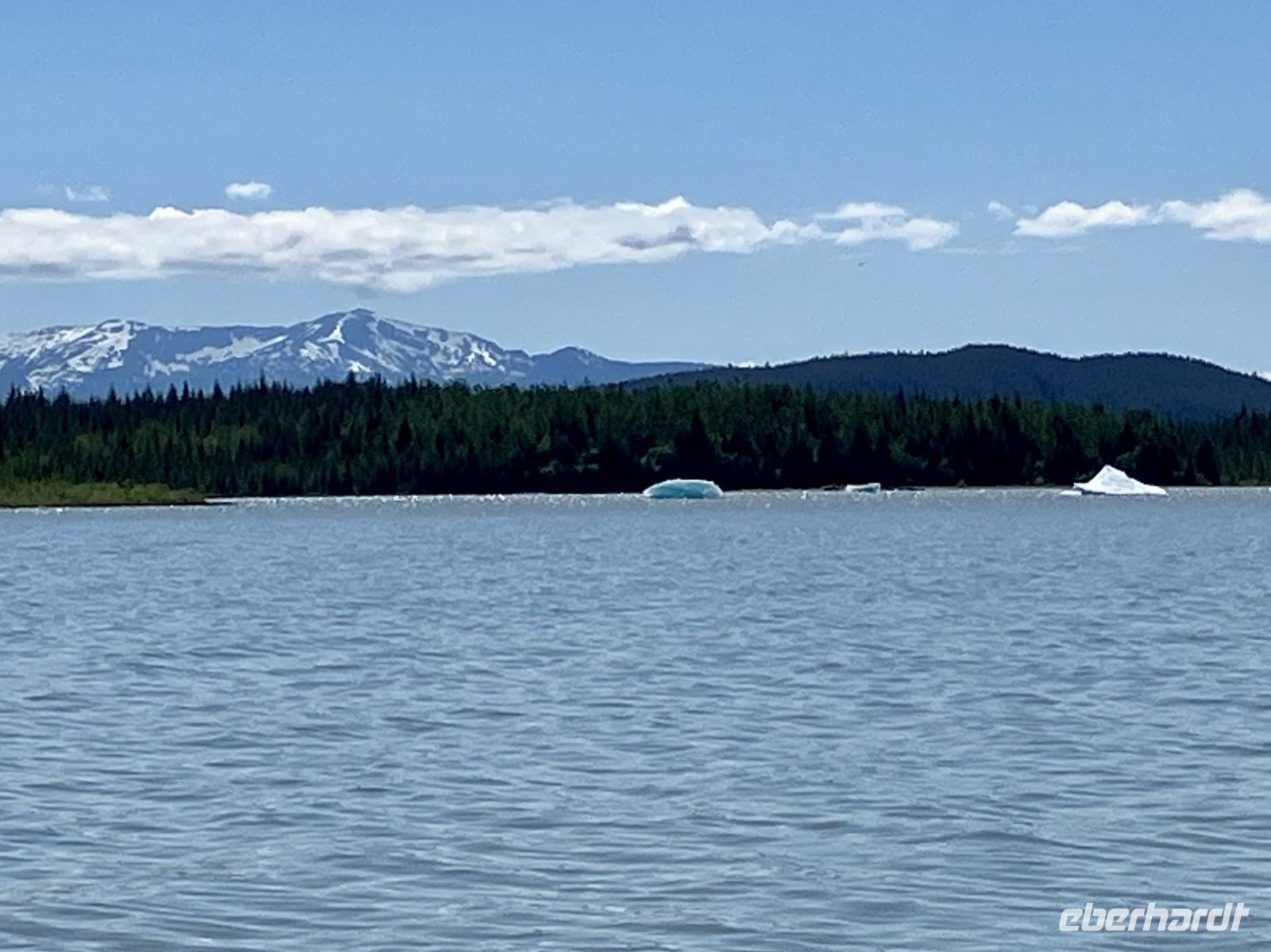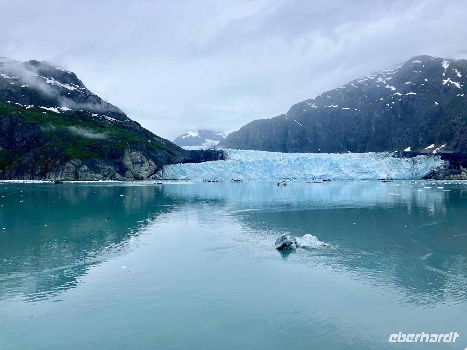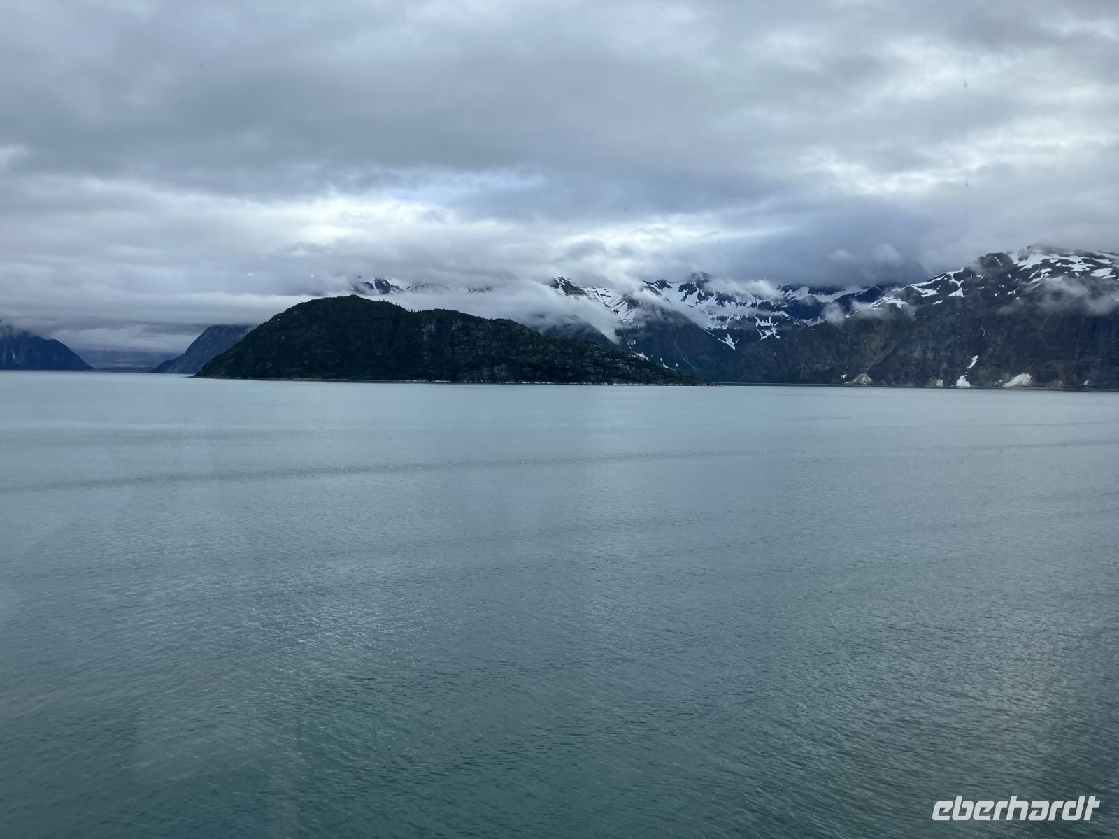 Um 6:30 stehen schon einige Gletscher-Freunde auf Deck um auch ja nichts zu verpassen. Vorerst ist das Wetter schoen und kalt aber sobald wir in die Glacier Bay hineinfahren, bedeckt sich der Himmel mit hellen Wolken, wohl so, dass alle die Fotos die wir nun knipsen auch gelingen moegen. In diesem Meeresarm ist es ganz ruhig, die Waelder sind unberuehrt die Berge mit Schnee und Gletscher bedeckt und das Meer mit vielen Eisschollen bestueckt. Sie haben alle recht ulkige bis artistische Formen, einige sind oben weiss und unten ganz blau, andere sind pures blaues Eis andere wieder ganz schwarz. Auf einigen Schollen sehen wir auch Robben die sich ausruhen. Wir stehen alle an der Reling und staunen ueber diese maechtige Schoenheit die sich hier bietet. Ein Stuendchen spaeter sehen wir bereits den ersten kalbernden Gletscher. So was tolles, so eine Farbe, es ist der Lamplugh Gletscher. Wir fahren ganz langsam an ihm vorbei. Die Seehunde staunen. Der Weisskopfadler dreht sich jedoch nicht um. Wir sind hier nicht die Wichtigkeit. Nun geht es weiter zu einem noch groesseren Gletscher der einen anderen Meeresarm abgrenzt. Es ist der Margerie Gletscher. Auch er gehoert zum Glacier Bay Naturpark. Er ist noch maechtiger als der Lamplugh und der John Hopkins Gletscher, so imposant glitzert er mit seinen spitzen Tuermchen und tiefen Crevassen. Er kalbert auch 2 mal waehrend wir ihn bestaunen. Unser Schiff ist ideal ausgeruestet mit seinen vielen Aussen- und Innen-Decks. Alle haben ganz vorne an der Reling Platz, so kommt heuer auch kein Gestuerme auf. Unser Kapitaen dreht auch das Riesenschiff in der Bucht einmal ganz langsam um seine eigene Achse. Wir bleiben 1 ½ Stunden sodass jeder dieses Spektakel in Ruhe anschauen, einpraegen und auch aufnehmen kann. Jetzt ist aber Zeit, uns von Margerie zu verabschieden denn wir wollen weiter bis nach Ketchikan. Wir erleben eine wunderbare Zeit an Bord. Der Regen hat ueberhand genommen, so gibt es vorerst mal ein feines Mittagessen, dann eine Yogastunde und danach macht jeder was er immer schon im Urlaub machen wollte. Der Fantasie sind hier keine Limiten gesetzt. Viele schneebedeckte Berge begleiten uns. So verbringen wir die Zeit an Bord mit viel Lachen, Gespraechen und dem einen oder anderen Nickerchen. Das Abendbrot ist wieder fein und die Show danach auch sehr interessant. Muede schleppen wir uns spaet in die Kabinen denn Morgen wartet Ketchikan auf uns.