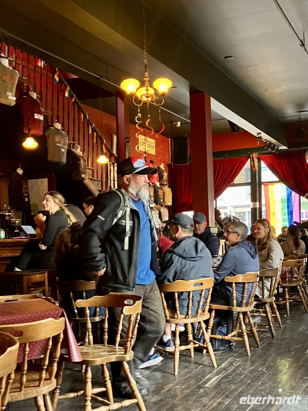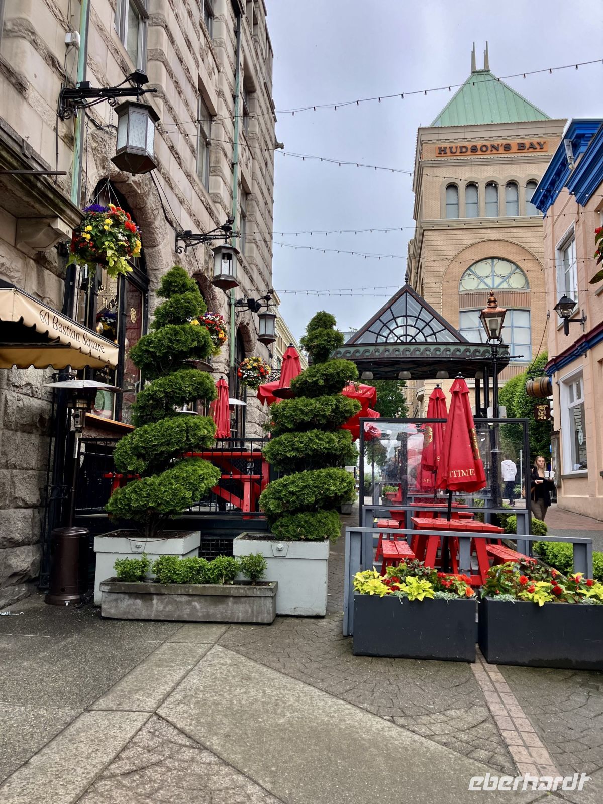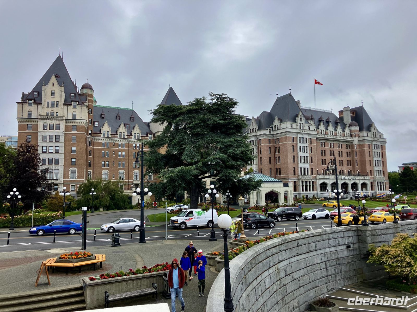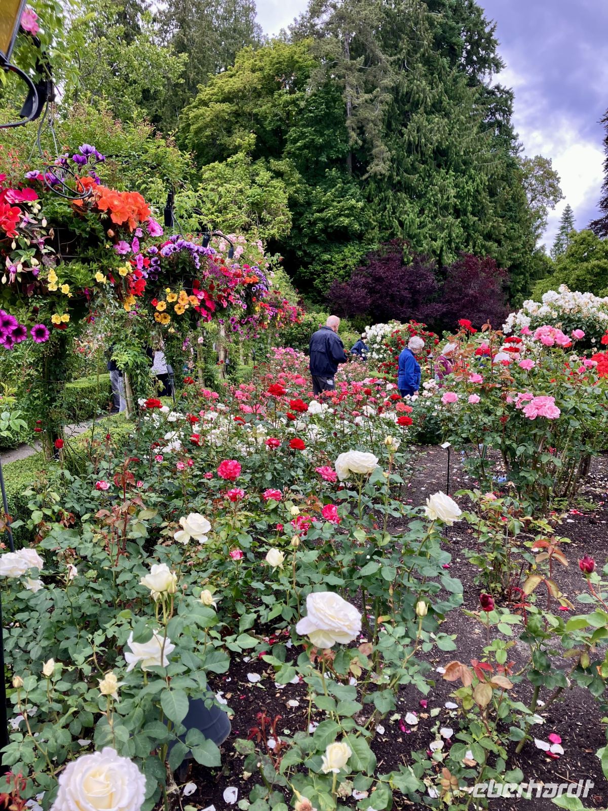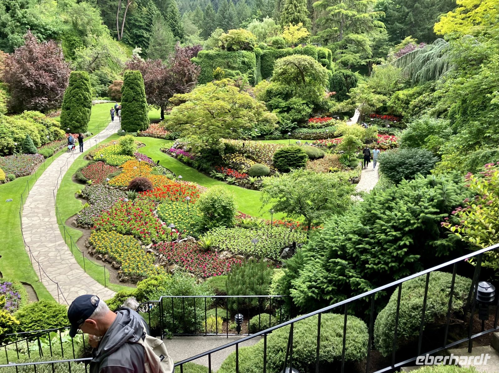 Zeitig geht es heute mit einem riesen Bus welcher von Jason gefahren wird auf die Faehre nach Vancouver Island. Die Faehre fuehrt uns mit dem Bus in 1 1/2 Stunden nach Victoria, die Hauptstadt Britisch Columbiens. In Victoria machen wir eine besondere Stadtbesichtigung. Die Stadt hat so vieles zu bieten und alles ist zu Fuss schnell und einfach zu erkunden. So machen wir eine Stadtfuehrung zu Fuss. Wir gehen durch Chinatown, horchen dem Chinesen zu wie er auf seiner 2-saitigen Violine Amazing Grace spielt. So schoen, alle bleiben lauschend stehen. In der schmalen Fan Tan Alley, horchen wir den hiesen Geschichten zu, wie die chinesische Bevoelkerung damals ende 19.Jahrhundert hier ihren Alltag erlebt hat. Danach gehts weiter zum Marktplatz und zur Bastion, dem Hauptplatz. Hier ist auch das Justizgebaeude mit dem Haengerichter. Vorbei an der Pub-Meile der Government Street gelangen wir nun an den Inneren Hafen. Das ist vielleicht interessant, hier ist echt viel los. Nach der Geschichte von Sir Francis Rattenburry haben wir nun Pause. Mit einem Lageplan der Stadt in der Hand und unserer Erkundungslust, erlebt nun jeder Sein Victoria. Alle finden sich auch zum geplanten Treffpunkt wieder ein damit wir in die beruehmten Butcharts Garten weiterreisen koennen. Wie herrlich ist doch dieser Garten, unterdessen scheint fast die Sonne und besonders der japanische-, versunkene- und Rosengarten nehmen uns in ihren Bann. Man koennte hier auch ganz leicht 4 Stunden weilen und inmitten dieser Pracht vielleicht sogar einen krummen Grasshalm finden ! Uiii, nun sind wir etwas zu lange bei den Rosen geblieben und muessen uns zur Faehre beeilen. Ich werde ab sofort meinen Namen aendern auf Haeuptling Fliegendes Haar. Wir schaffen die Faehre, alles gut. Die Rueckfahrt nach Vancouver ist so wunderschoen, unsere Kameras laufen auf Hochtouren. Heute ist kein Abendbrot programmiert also bekommen wir noch gut Tips und Anregungen, was wir heute Abend noch alles auf die Beine stellen koennten. Die Abendsonne am 2. Strand aber, ist ein Muss fuer jeden.