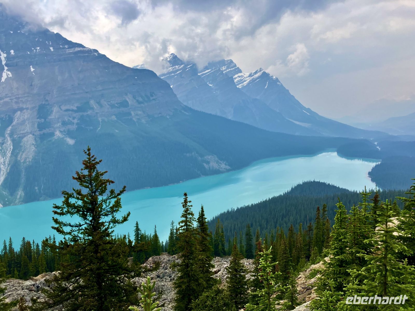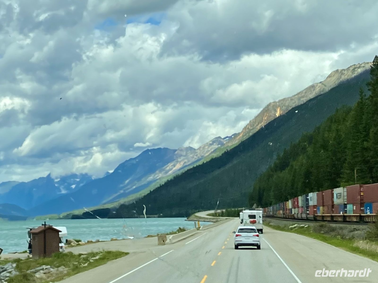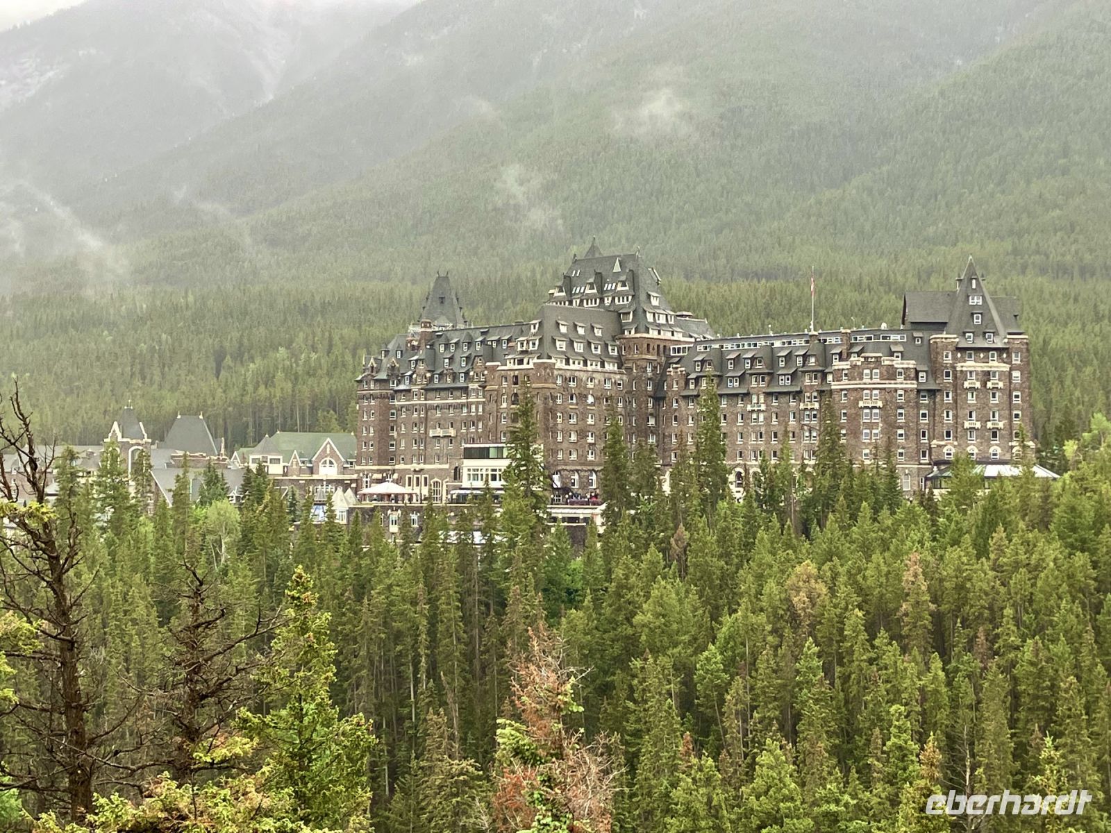 Wir verlassen den Joho Nationalpark und sind auch bald zurueck in Banff. Nun haben wir etwas Freizeit ehe wir uns zum Abendessen treffen. Das Rindsfilet schmeckt lecker und das Kopfkissen etwas spaeter freut sich bereits auf uns.