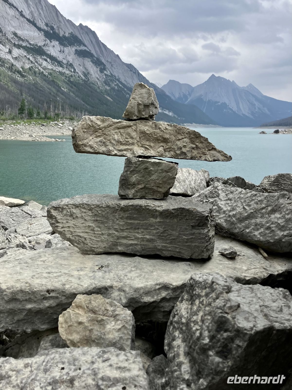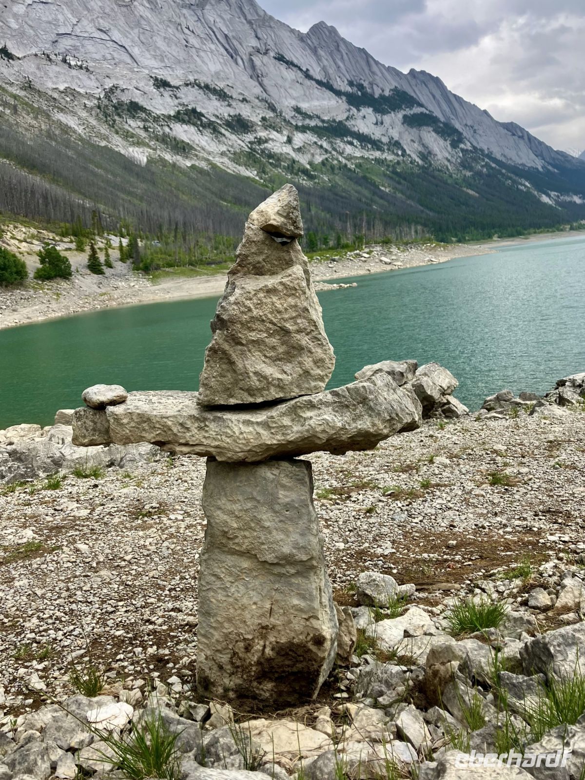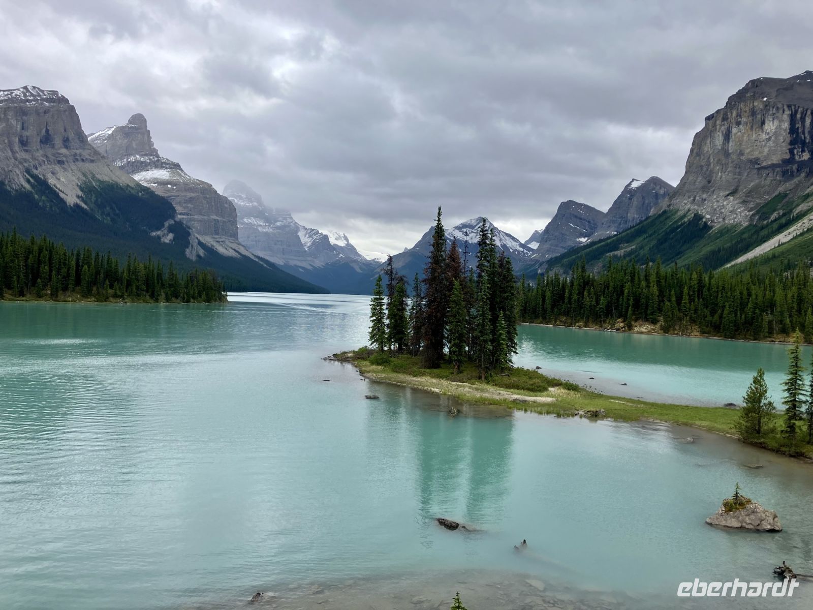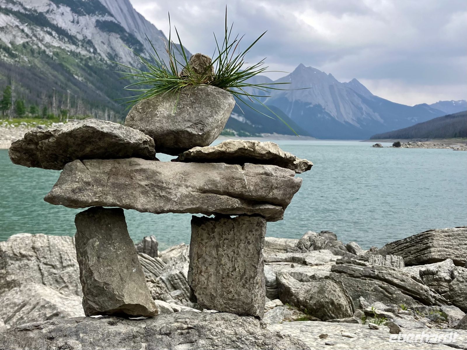, das Wetter zeigt sich noch ein bisschen freundlicher als gestern. Es gibt Hoffnung auf die vielen kurzen Hosen die im Koffer versteckt sind. Aber noch nicht heute, bei 10 Grad ! Zum Fruehstueck gibt es wieder alles was wir uns wuenchsen koennten und noch mehr. Wir entscheiden, dass wir heute die schoene Wanderung entlang des Maligne Flusses unternehmen. Aber ehe wir bei der 5. Bruecke ankommen sehen wir es…..Wapiti Maedchen ruht sich genuesslich im frischen gruenen Grass gleich neben der Strasse aus. Ach so schoen wir koennten ihr lange zuschauen aber die Wanderschuhe draengen schon. Nur einige unter uns, moechten anstatt 1 Stunde Fluss-aufwaerts bloss 20 Minuten eher ebenerdig gehen. Ist doch gut so, fuer jeden gibt es etwas. Kim wandert die 20 Minuten und ich die Stunde. Schoen ist es fuer beide Gruppen. Den Flusslauf hinauf zu wandern, wirkt erfrischend, belebend und ist wunderschoen. Wir wandern vorbei an vielen unterirdischen Fluss-zulaeufen, tobenden und sachten Wasserfaellen und teilweise sehr tiefen Schluchten. Ueberall gibt es Aussichtpunkte und oftmals fuehrt uns der Pfad ans Ufer des Maligne Flusses. Von den Bruecken aus schauen wir in die, bis zu 70 Meter tiefen Schluchten hinunter. Da es frueh im Jahr ist, fuehrt der Fluss viel Wasser und so verkacheln sich auch viele Baumstaemme die nun wie Drechsel grosse Loecher in die Seitenwaende bohren. Wir schauen auch der Entstehung der tiefen Marmiten zu, da wo Wasser, Sand und Steinchen sich runde Loecher in das Gestein mahlen. Nach einer guten Stunde sind wir da, wo wir die Nicht-Gross-Wanderer wiedersehen. Gluecklich als komplette Reisefamilie fahren wir alsobald weiter zum Medicin Lake der ganz flach und ruhig umrandet von herrlichen Bergen daliegt. Nun kommt der heutige Kurs „Inukshuk bauen 101“. Lustig ist es am Sees Ufer in kuerzester Zeit, in kleinen Gruppen, so ein Inuit Steinmaennchen zusammenzustellen. Die Steineschlepperei ist etws ermuedend der Erfolg jedoch grandios. Schaut in die Bildergalerie, da sind unsere Kunstwerke verewigt. Bald geht es jedoch wieder weiter. Aber bloss 3 Minuten. Denn nun halten wir wieder mit Sicht auf ein grossen Weisskopfadlernest. Es sitzt ein Adler im Nest und den anderen haben wir noch wegfliegen sehen. Bei der Weiterfahrt werden viele Geschichten ueber Pioniere und Wissenswertes ueber die hiesige Tierwelt erzaehlt und bald sind wir schon bei Maligne See. Kim faehrt vor, wir steigen aus, die Tickets werden geholt und schon sind wir bereit fuer einen kurzen Spaziergang dem schoenen Maligne See entlang. Ach, so sorry, wir haben kein Moos gesehen. Ehe wir uns bei der Schiffsanlegestelle wiedersehen kann nun jeder seine Mittagspause nehmen. Um 13:30 koennen wir auch schon gleich aufs Schiff. Die junge Kapitaens-dame und der erste Maat sind sehr freundlich auch wenn der erste Maat nach dem losmachen des Schiffes ein Mikrofon zwischen die Finger kriegt und unaufhoerlich etwas auf englisch plappert. Lauter Geschichten, Fakte, Daten und Legenden die wir bereits im Bus durchgenommen haben. So geniessen wir die tolle Schiffsfahrt zur Insel der Einsicht (Spirit Island). Nach der 15 minuetigen Pause bei der weltberuehmten Halbinsel fahren wir wieder zurueck. Der Himmel ist teilweise bewoelkt und die Berge sind teilweise beleuchtet, was natuerlich fuer wunderschoen Aufnahmen sorgt. Wir habens so gut. In Jasper machen wir Halt um uns das Doerfchen auch richtig anzuschauen ehe wir in unsere Chalets zurueckkehren. Das Abendbrot ist heute auch wieder sehr lecker, gestern Elch-Steak, heute Bison-Rippchen. Das ist was besonderes, auch fuer Kanadier. Nach dem Essen, gibt es noch einen kleinen Absacker am Flussufer und dann ab in die weichen Betten.