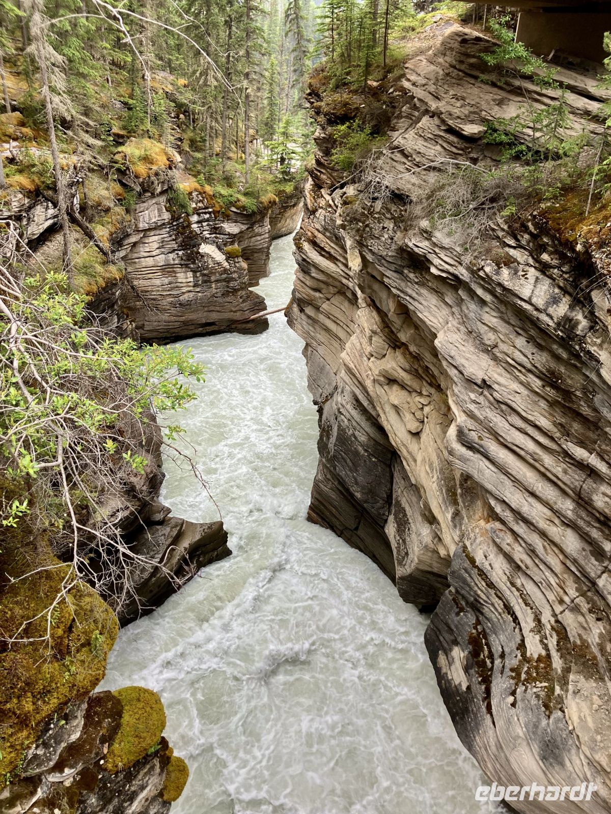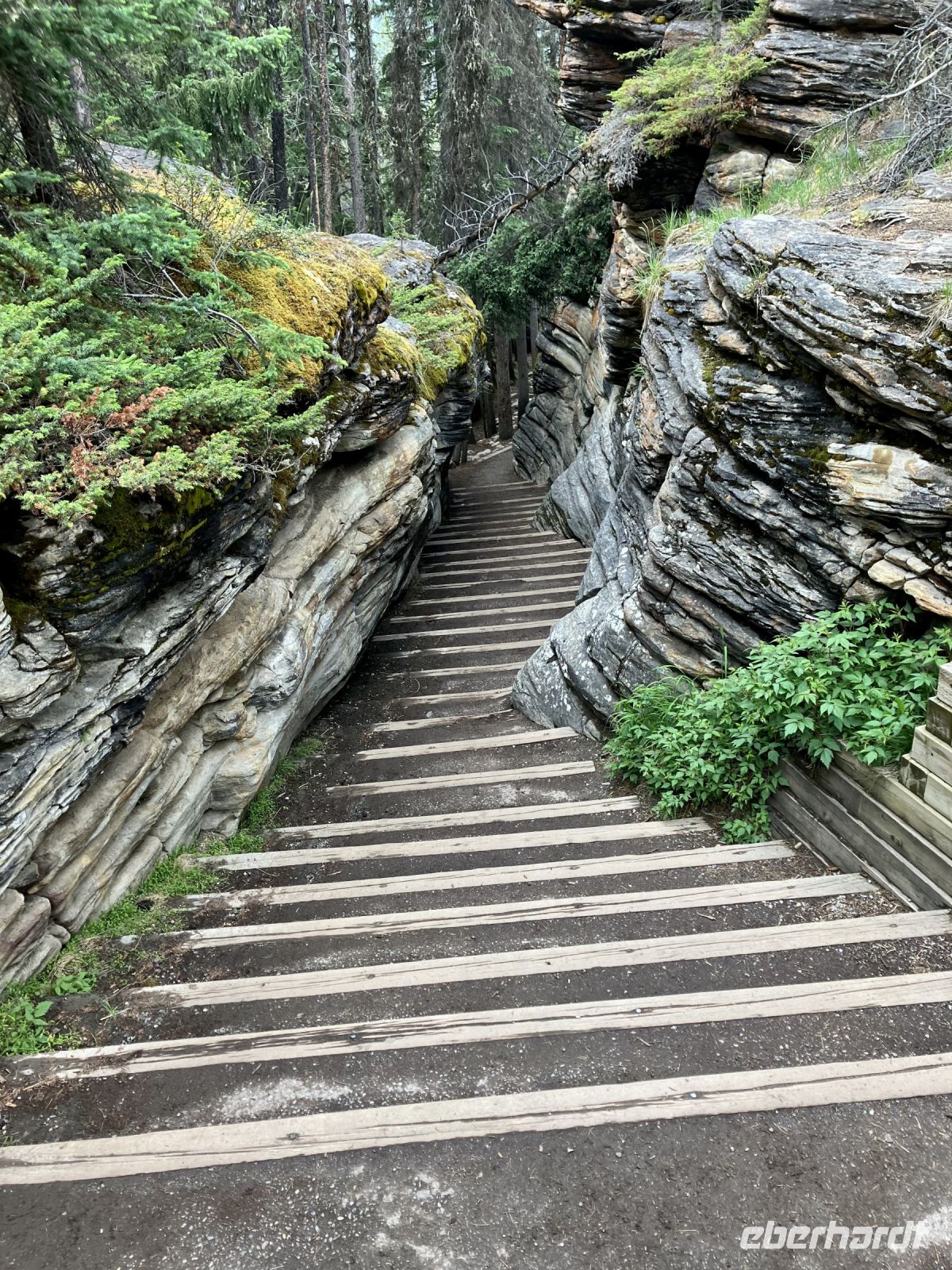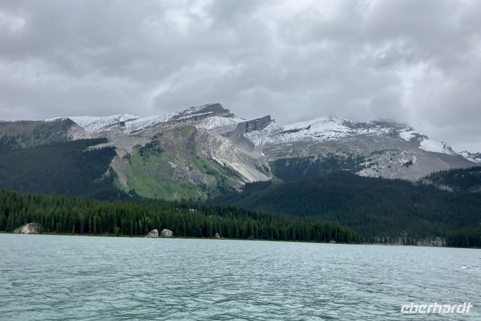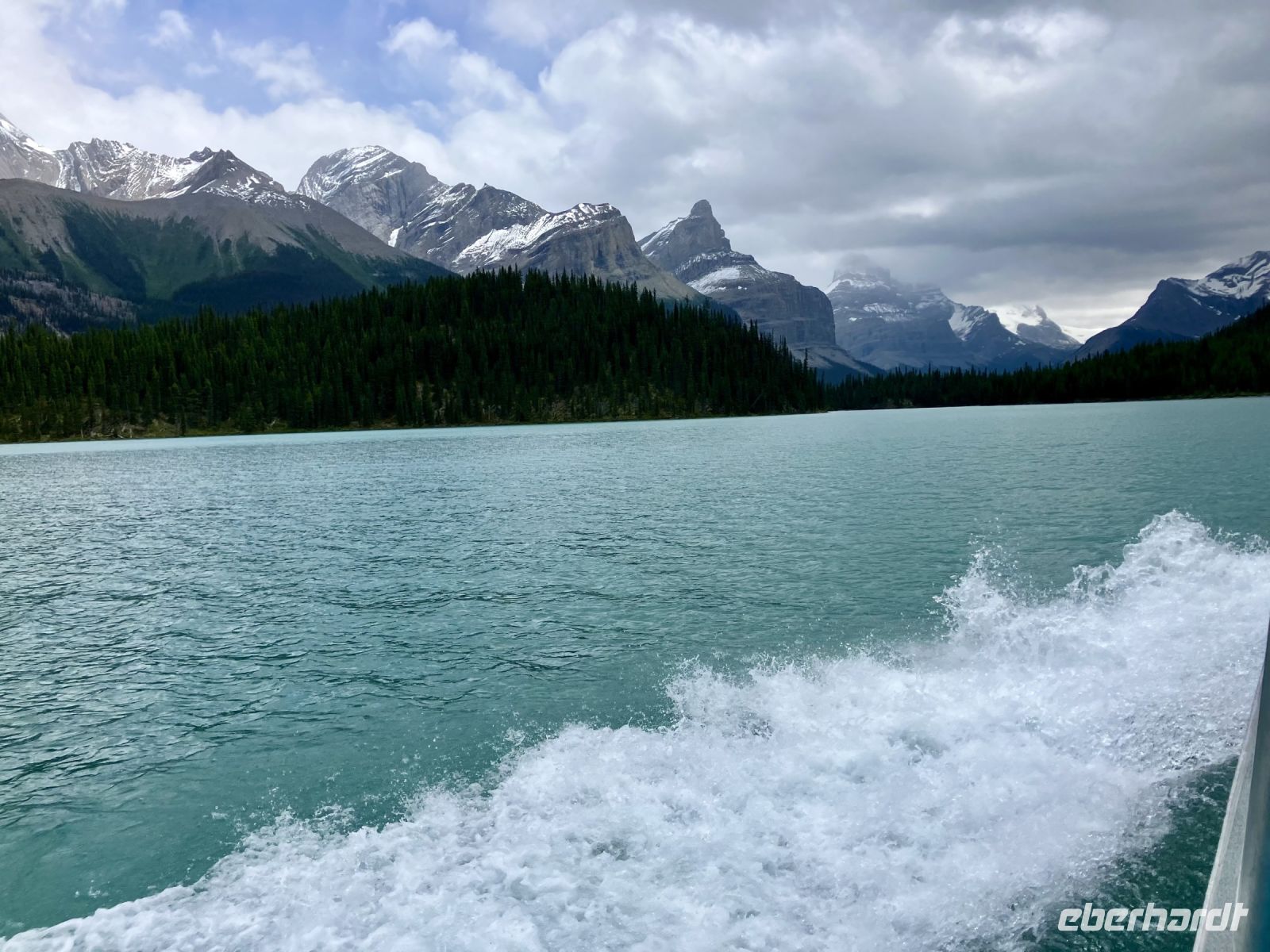 , das Wetter zeigt sich noch ein bisschen freundlicher als gestern. Es gibt Hoffnung auf die vielen kurzen Hosen die im Koffer versteckt sind. Aber noch nicht heute, bei 10 Grad ! Zum Fruehstueck gibt es wieder alles was wir uns wuenchsen koennten und noch mehr. Wir entscheiden, dass wir heute die schoene Wanderung entlang des Maligne Flusses unternehmen. Aber ehe wir bei der 5. Bruecke ankommen sehen wir es…..Wapiti Maedchen ruht sich genuesslich im frischen gruenen Grass gleich neben der Strasse aus. Ach so schoen wir koennten ihr lange zuschauen aber die Wanderschuhe draengen schon. Nur einige unter uns, moechten anstatt 1 Stunde Fluss-aufwaerts bloss 20 Minuten eher ebenerdig gehen. Ist doch gut so, fuer jeden gibt es etwas. Kim wandert die 20 Minuten und ich die Stunde. Schoen ist es fuer beide Gruppen. Den Flusslauf hinauf zu wandern, wirkt erfrischend, belebend und ist wunderschoen. Wir wandern vorbei an vielen unterirdischen Fluss-zulaeufen, tobenden und sachten Wasserfaellen und teilweise sehr tiefen Schluchten. Ueberall gibt es Aussichtpunkte und oftmals fuehrt uns der Pfad ans Ufer des Maligne Flusses. Von den Bruecken aus schauen wir in die, bis zu 70 Meter tiefen Schluchten hinunter. Da es frueh im Jahr ist, fuehrt der Fluss viel Wasser und so verkacheln sich auch viele Baumstaemme die nun wie Drechsel grosse Loecher in die Seitenwaende bohren. Wir schauen auch der Entstehung der tiefen Marmiten zu, da wo Wasser, Sand und Steinchen sich runde Loecher in das Gestein mahlen. Nach einer guten Stunde sind wir da, wo wir die Nicht-Gross-Wanderer wiedersehen. Gluecklich als komplette Reisefamilie fahren wir alsobald weiter zum Medicin Lake der ganz flach und ruhig umrandet von herrlichen Bergen daliegt. Nun kommt der heutige Kurs „Inukshuk bauen 101“. Lustig ist es am Sees Ufer in kuerzester Zeit, in kleinen Gruppen, so ein Inuit Steinmaennchen zusammenzustellen. Die Steineschlepperei ist etws ermuedend der Erfolg jedoch grandios. Schaut in die Bildergalerie, da sind unsere Kunstwerke verewigt. Bald geht es jedoch wieder weiter. Aber bloss 3 Minuten. Denn nun halten wir wieder mit Sicht auf ein grossen Weisskopfadlernest. Es sitzt ein Adler im Nest und den anderen haben wir noch wegfliegen sehen. Bei der Weiterfahrt werden viele Geschichten ueber Pioniere und Wissenswertes ueber die hiesige Tierwelt erzaehlt und bald sind wir schon bei Maligne See. Kim faehrt vor, wir steigen aus, die Tickets werden geholt und schon sind wir bereit fuer einen kurzen Spaziergang dem schoenen Maligne See entlang. Ach, so sorry, wir haben kein Moos gesehen. Ehe wir uns bei der Schiffsanlegestelle wiedersehen kann nun jeder seine Mittagspause nehmen. Um 13:30 koennen wir auch schon gleich aufs Schiff. Die junge Kapitaens-dame und der erste Maat sind sehr freundlich auch wenn der erste Maat nach dem losmachen des Schiffes ein Mikrofon zwischen die Finger kriegt und unaufhoerlich etwas auf englisch plappert. Lauter Geschichten, Fakte, Daten und Legenden die wir bereits im Bus durchgenommen haben. So geniessen wir die tolle Schiffsfahrt zur Insel der Einsicht (Spirit Island). Nach der 15 minuetigen Pause bei der weltberuehmten Halbinsel fahren wir wieder zurueck. Der Himmel ist teilweise bewoelkt und die Berge sind teilweise beleuchtet, was natuerlich fuer wunderschoen Aufnahmen sorgt. Wir habens so gut. In Jasper machen wir Halt um uns das Doerfchen auch richtig anzuschauen ehe wir in unsere Chalets zurueckkehren. Das Abendbrot ist heute auch wieder sehr lecker, gestern Elch-Steak, heute Bison-Rippchen. Das ist was besonderes, auch fuer Kanadier. Nach dem Essen, gibt es noch einen kleinen Absacker am Flussufer und dann ab in die weichen Betten.