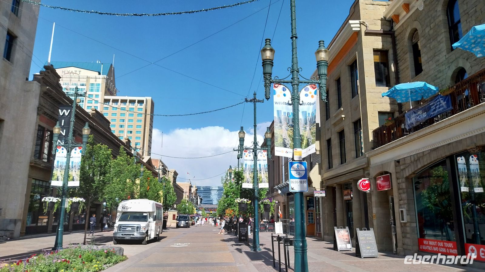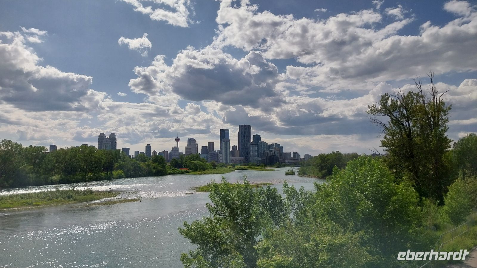 Noch voller Energie trotz der langen Anreise, begaben wir uns direkt auf eine erste Stadtrundfahrt durch Calgary. Die Skyline mit dem markanten Calgary Tower, das moderne Stadtzentrum und die grünen Parks machten sofort einen einladenden Eindruck. Bei einem kleinen Spaziergang durch Downtown schnupperten wir die kanadische Großstadtluft und erhielten einen ersten Eindruck von der Lebensfreude und Offenheit der Kanadier.
