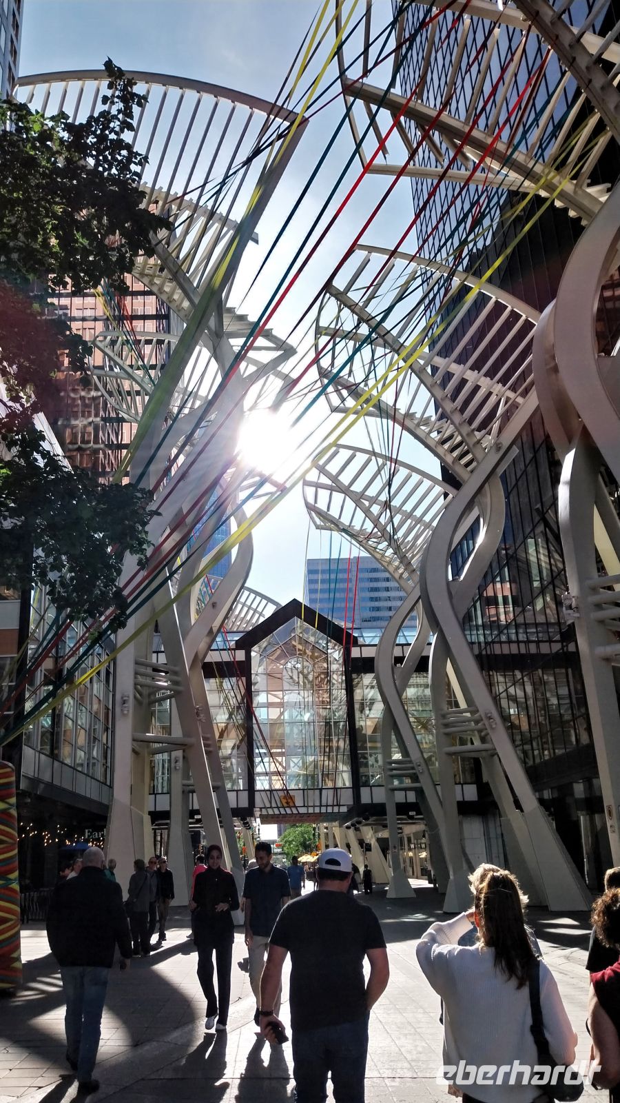 Nach der Pause fuhren wir durch Chinatown – eines der ältesten und größten in Nordamerika – und weiter nach Gastown, das historische Herz der Stadt mit Kopfsteinpflaster, viktorianischer Architektur und kleinen Cafés. Bei einem Spaziergang kamen wir zur berühmten Steam Clock, die zur vollen Stunde dampfend ihr Pfeifkonzert spielt, und anschließend über den Canada Place – das bekannte Kreuzfahrtterminal mit seinen weißen „Segeln“ – bis zum alten Bahnhof und schließlich zum modernen Conference Center mit Blick auf den Hafen und die Berge am Horizont.