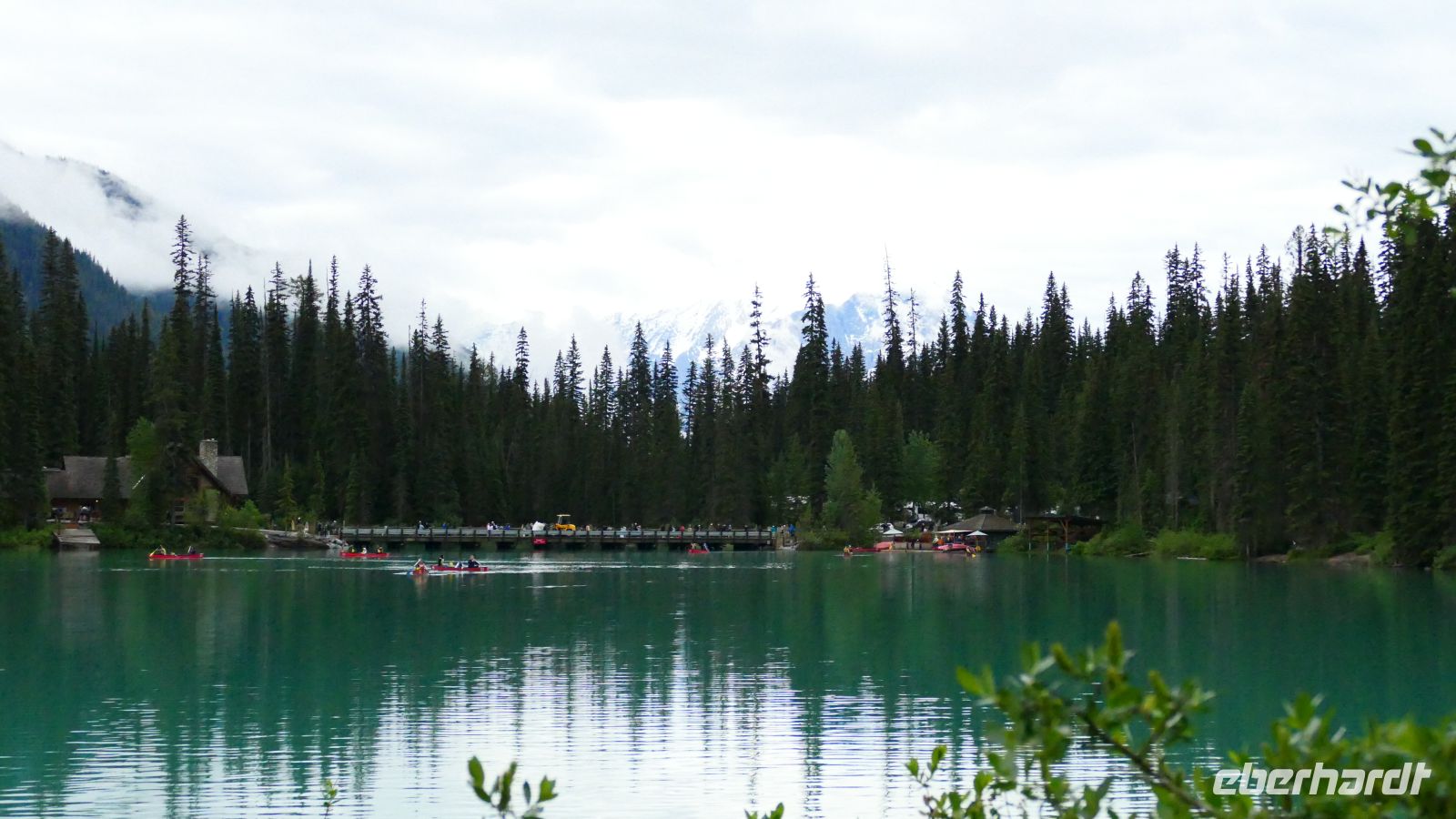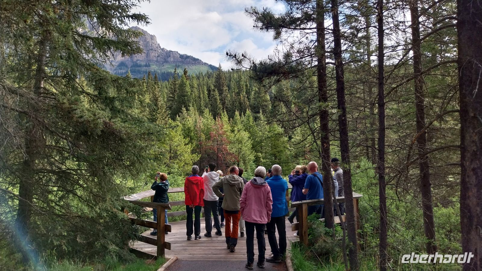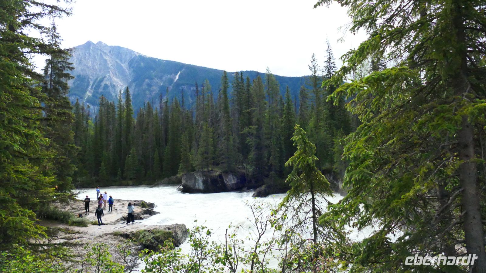 Weiter ging es in den Yoho-Nationalpark, wo wir Zeit hatten, am türkisgrünen Emerald Lake spazieren zu gehen. Wer wollte, konnte ein paar Meter in die Natur hinauswandern oder einfach nur die Aussicht genießen. Nicht weit entfernt hielten wir an der „Natural Bridge“, einer natürlich entstandenen Steinbrücke über dem reißenden Kicking Horse River. Über Jahrtausende hat das Wasser hier den Fels ausgewaschen und eine eindrucksvolle Formation geschaffen – ein anschauliches Beispiel für die Kraft der Natur.