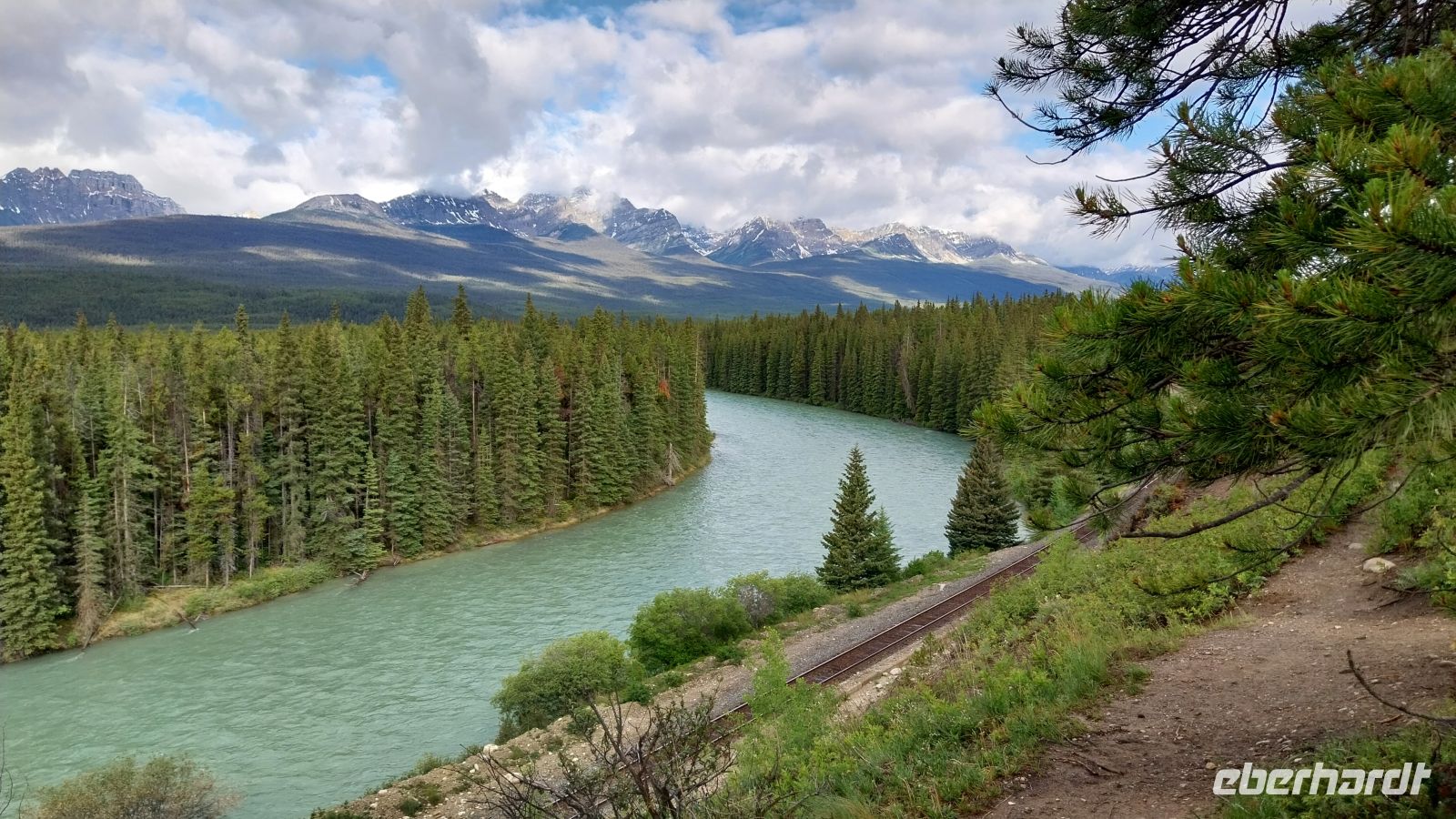 Unser nächster Halt war der Mount Robson, mit 3.954 Metern der höchste Berg in den kanadischen Rockies. Und wir hatten Glück: keine einzige Wolke versperrte den Blick auf den mächtigen Gipfel. Ein echtes Postkartenmotiv! Wer wollte, konnte mit Marion ein Stück auf dem Wanderweg am Fuß des Berges spazieren gehen. Andere nutzten die Zeit, um das Besucherzentrum zu erkunden oder sich mit Snacks für die spätere Mittagspause einzudecken.