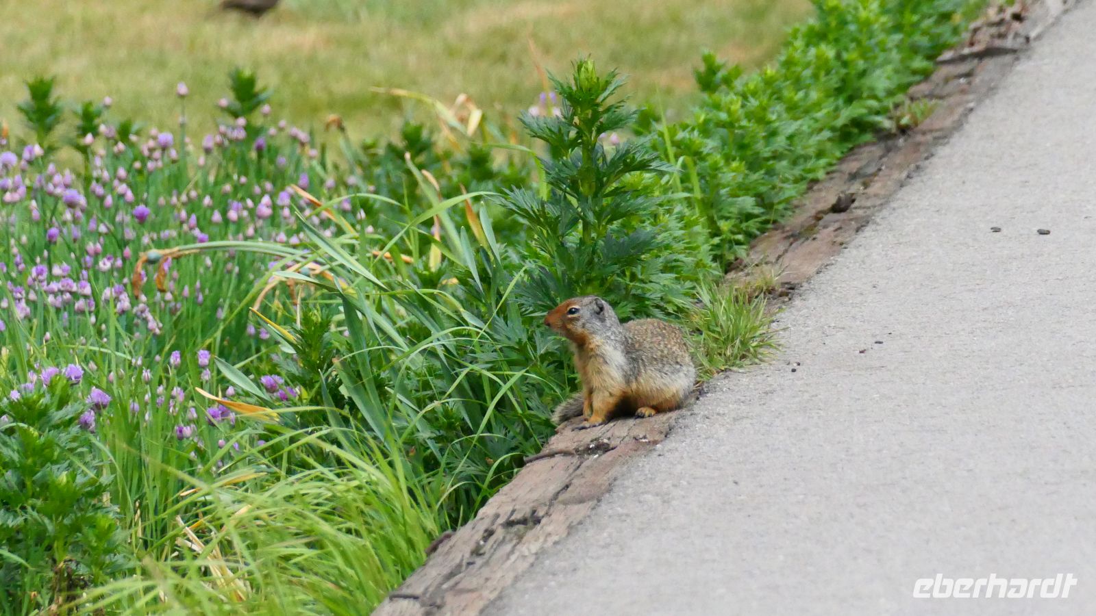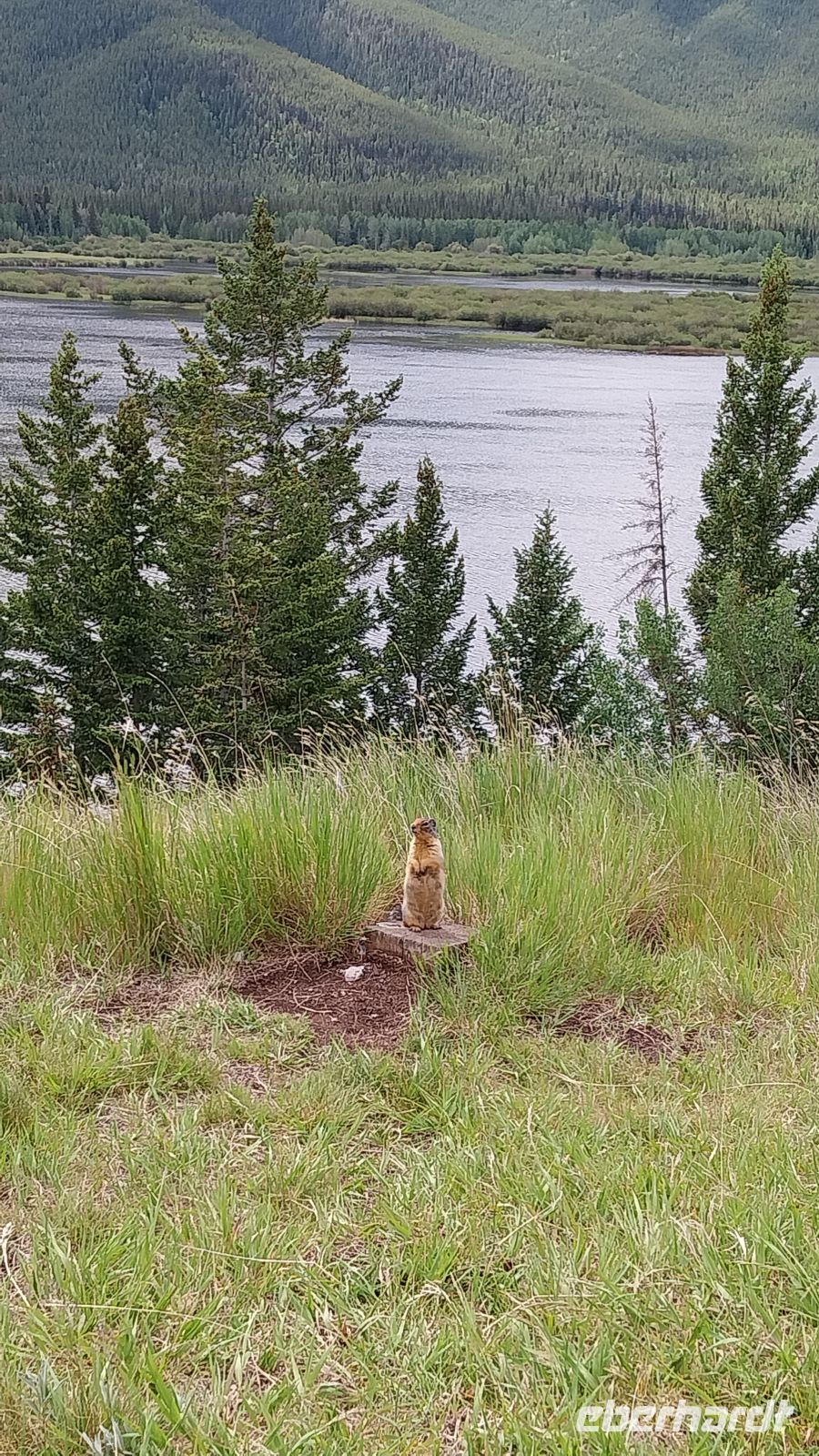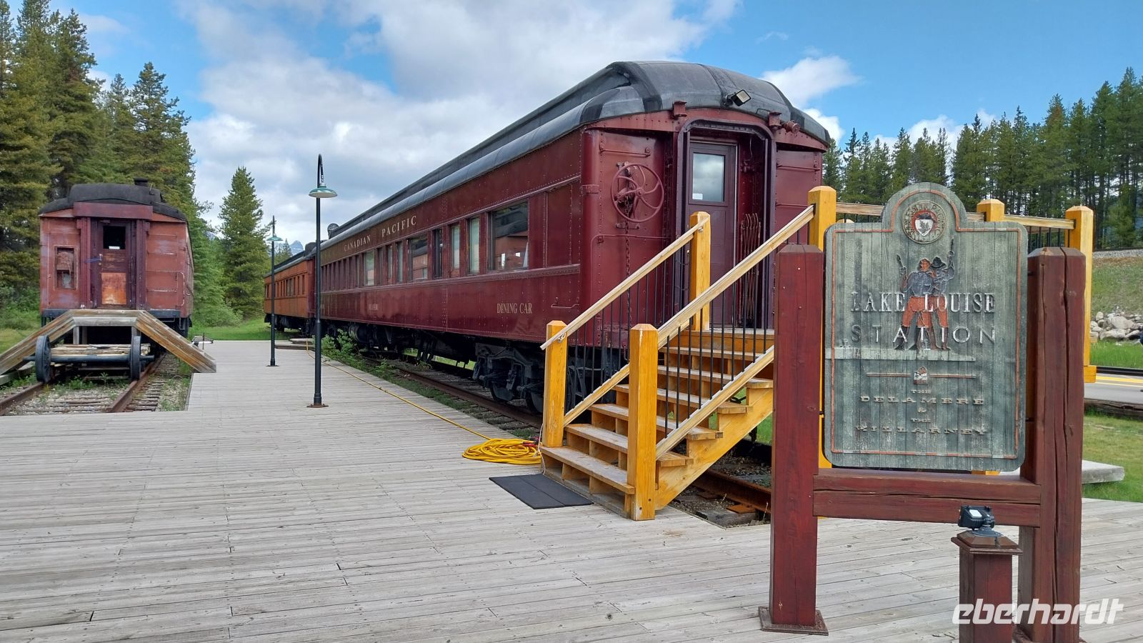Auf dem Rückweg besuchten wir noch den kleinen Bahnhof von Lake Louise – ein charmantes Gebäude mit viel historischem Flair. Früher war dies ein wichtiger Halt für die Canadian Pacific Railway, die einst den Westen Kanadas erschloss. Heute geht es dort ruhiger zu, dafür wimmelte es auf dem Gelände von Streifenhörnchen, die sich zwischen den Gleisen und Büschen tummelten.