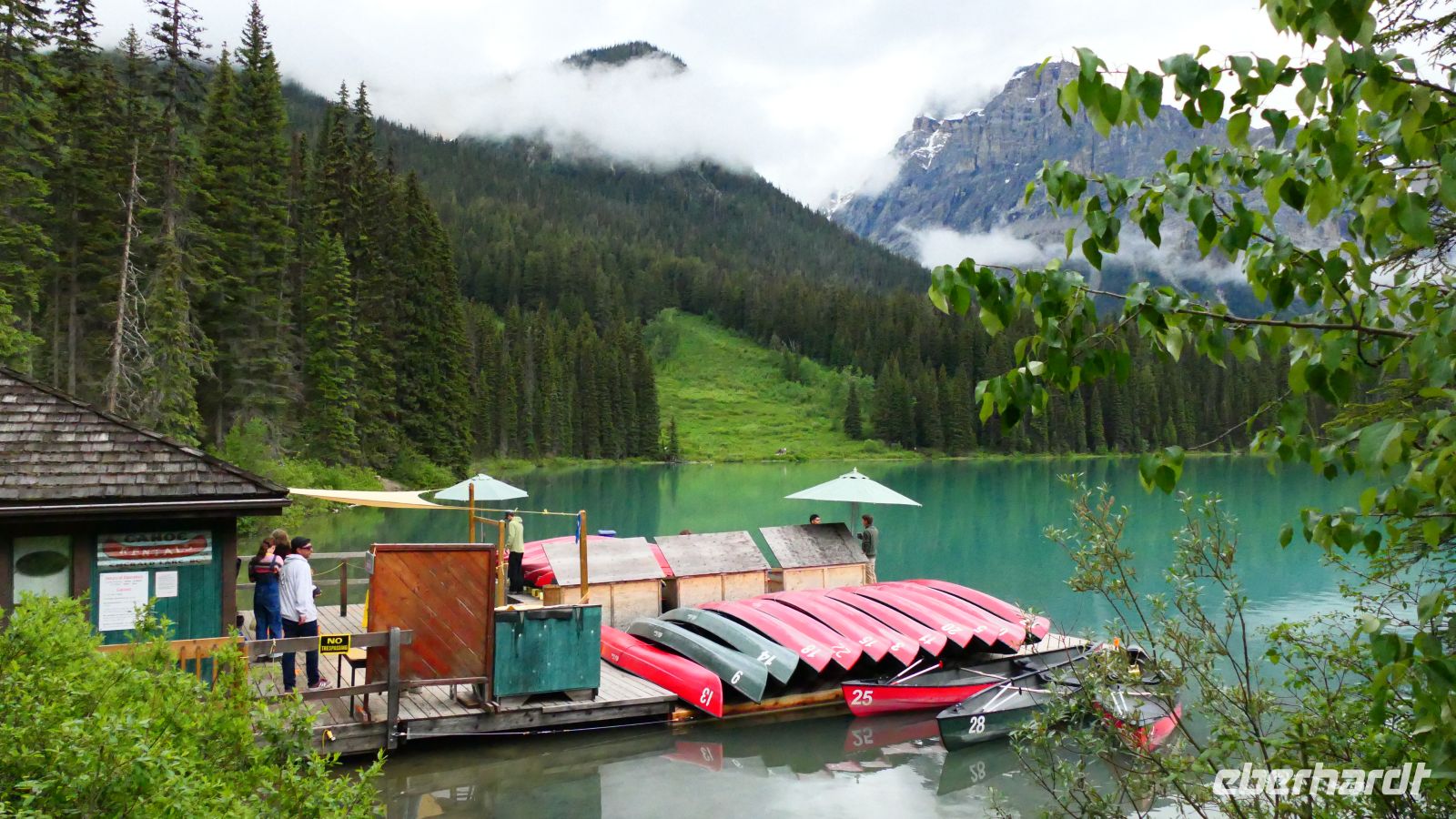 Dann ging es weiter zum wohl bekanntesten See der kanadischen Rockies: dem Lake Louise. Der See wurde nach Prinzessin Louise Caroline Alberta benannt, einer Tochter von Königin Victoria. Seine auffällig türkisgrüne Farbe stammt von feinen Gesteinspartikeln, die das Schmelzwasser vom Victoria-Gletscher mit sich bringt. Direkt am Ufer steht das historische Fairmont Château Lake Louise, das 1890 von der Canadian Pacific Railway erbaut wurde, um wohlhabende Reisende aus aller Welt anzulocken. Wir waren früh am Morgen vor Ort, sodass wir die besondere Ausstrahlung des Sees noch in Ruhe genießen konnten – und zahlreiche Erinnerungsfotos dazu.