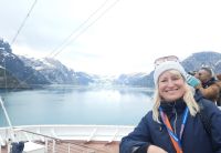 Früh am Morgen steuerte die MS Koningsdam langsam in den beeindruckenden Tracy Arm Fjord ein – eine enge, von steilen Felswänden gesäumte Passage südlich von Juneau, bekannt für ihre dramatische Landschaft. Um uns das volle Naturerlebnis zu ermöglichen, wurde der Schiffsbug geöffnet, sodass wir ganz vorne stehen, den Ausblick genießen und ungestört fotografieren konnten. Ringsum zogen Wasserfälle die steilen Wände hinab und alle staunten, mit Kameras oder Ferngläsern in der Hand. Unterwegs wurden wir mit einem besonderen Naturerlebnis beschenkt: Mehrere Buckelwale begleiteten unser Schiff in einiger Entfernung. Immer wieder sah man ihre Blasfontänen in die Luft steigen, dann tauchten die markanten Rücken auf. Einige Gäste hatten das Glück, sogar Flossen und den typischen „Walenschwanz“ beim Abtauchen zu sehen.